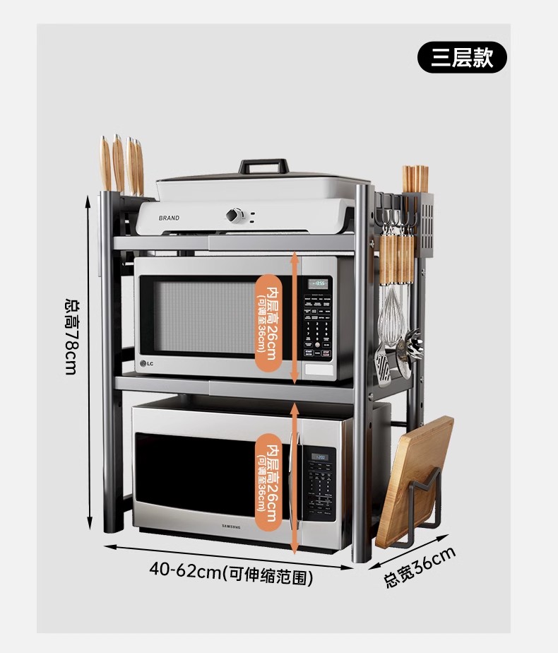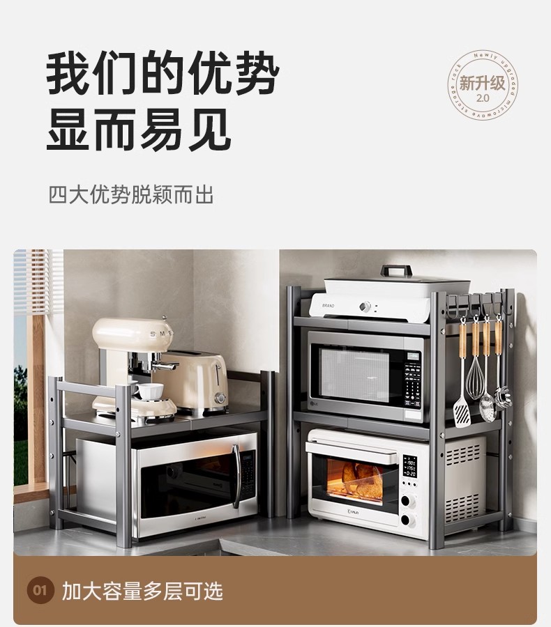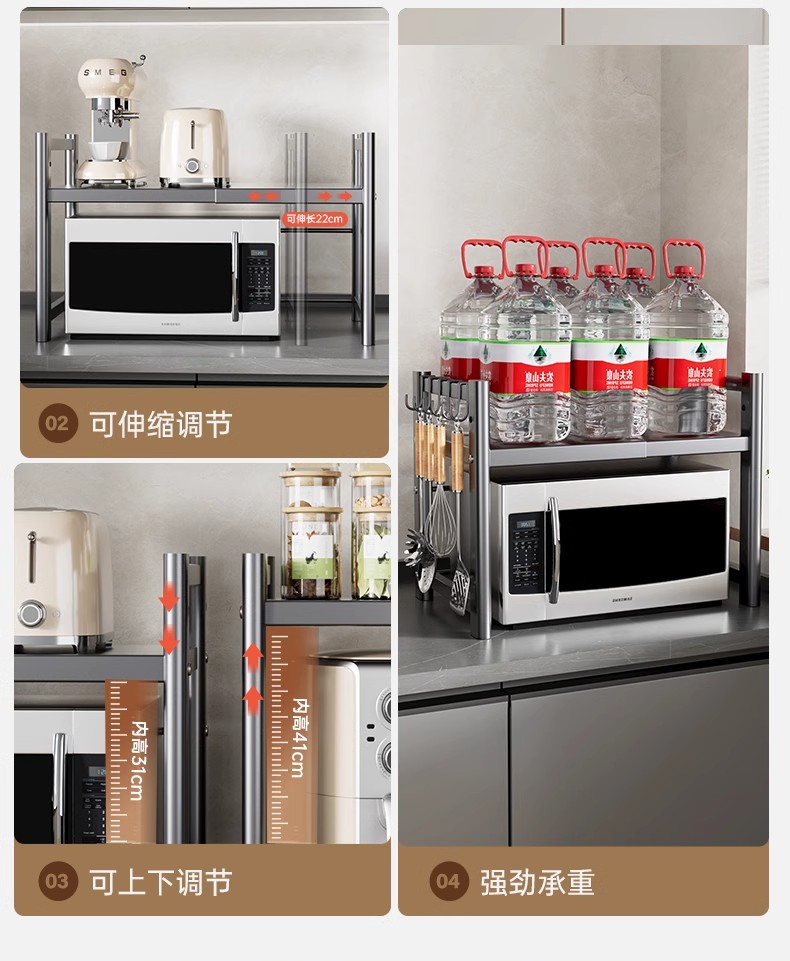厨房微波炉电饭煲一体置物架烤箱多功能支架家用台面加高加长架子