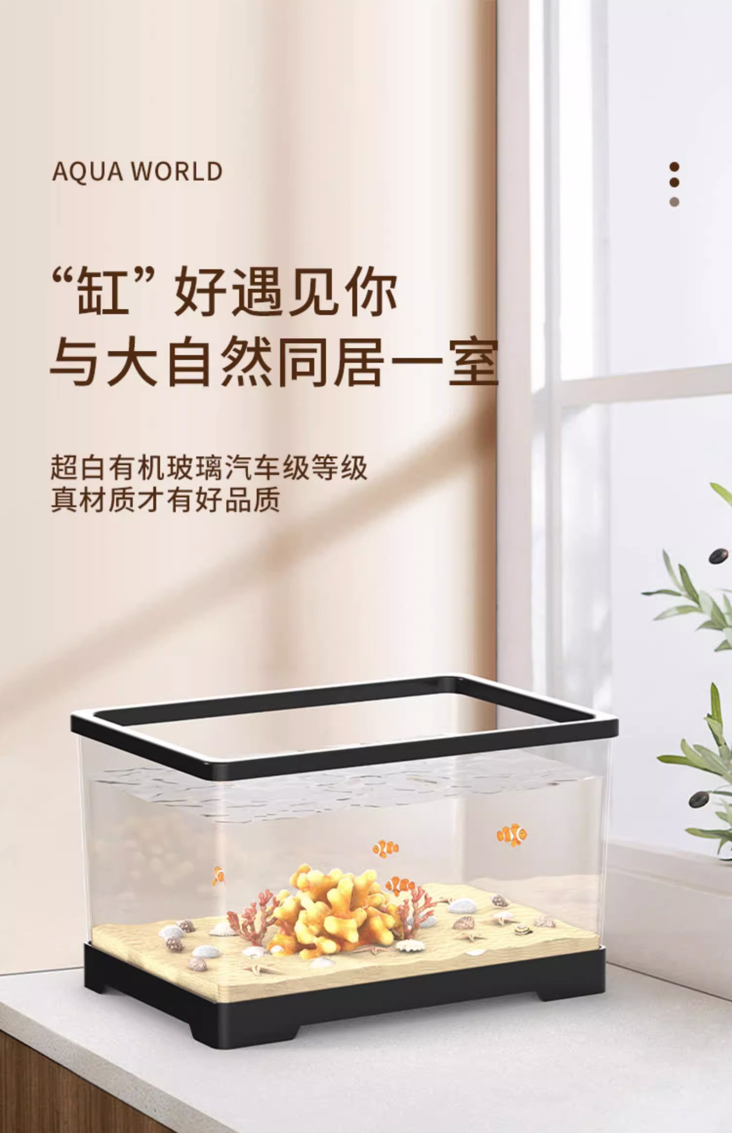 小型鱼缸家用桌面客厅小型电视柜旁超白生态过滤深水乌龟缸养龟箱