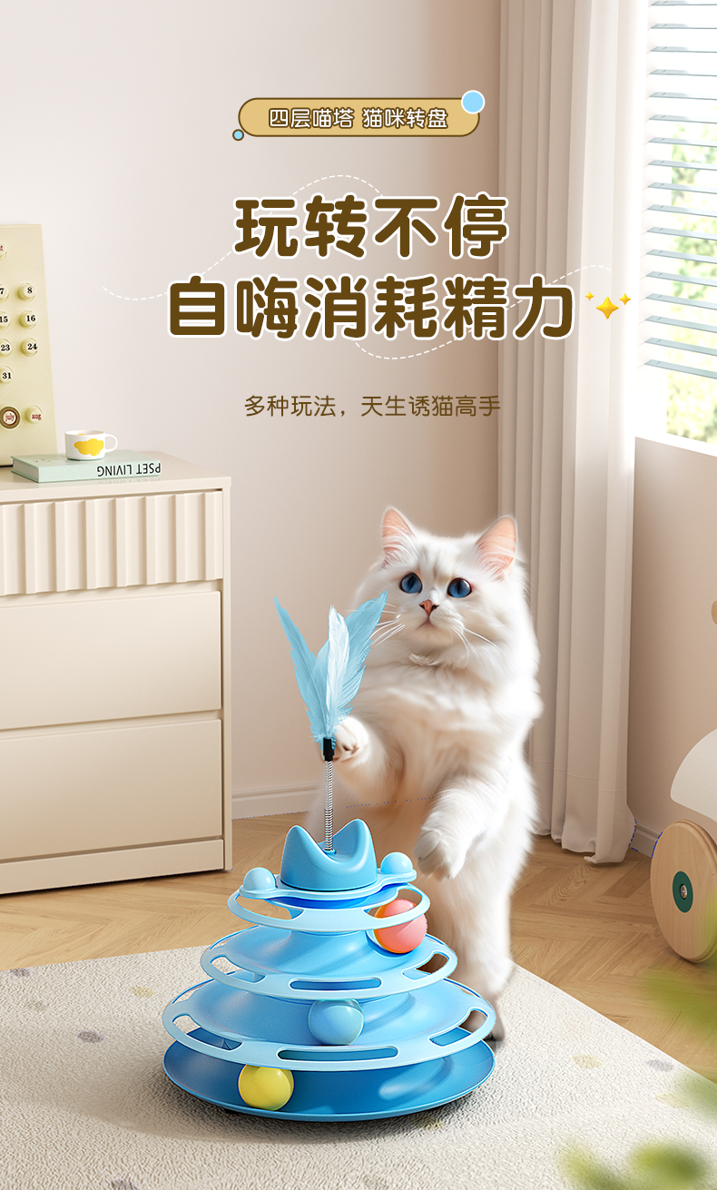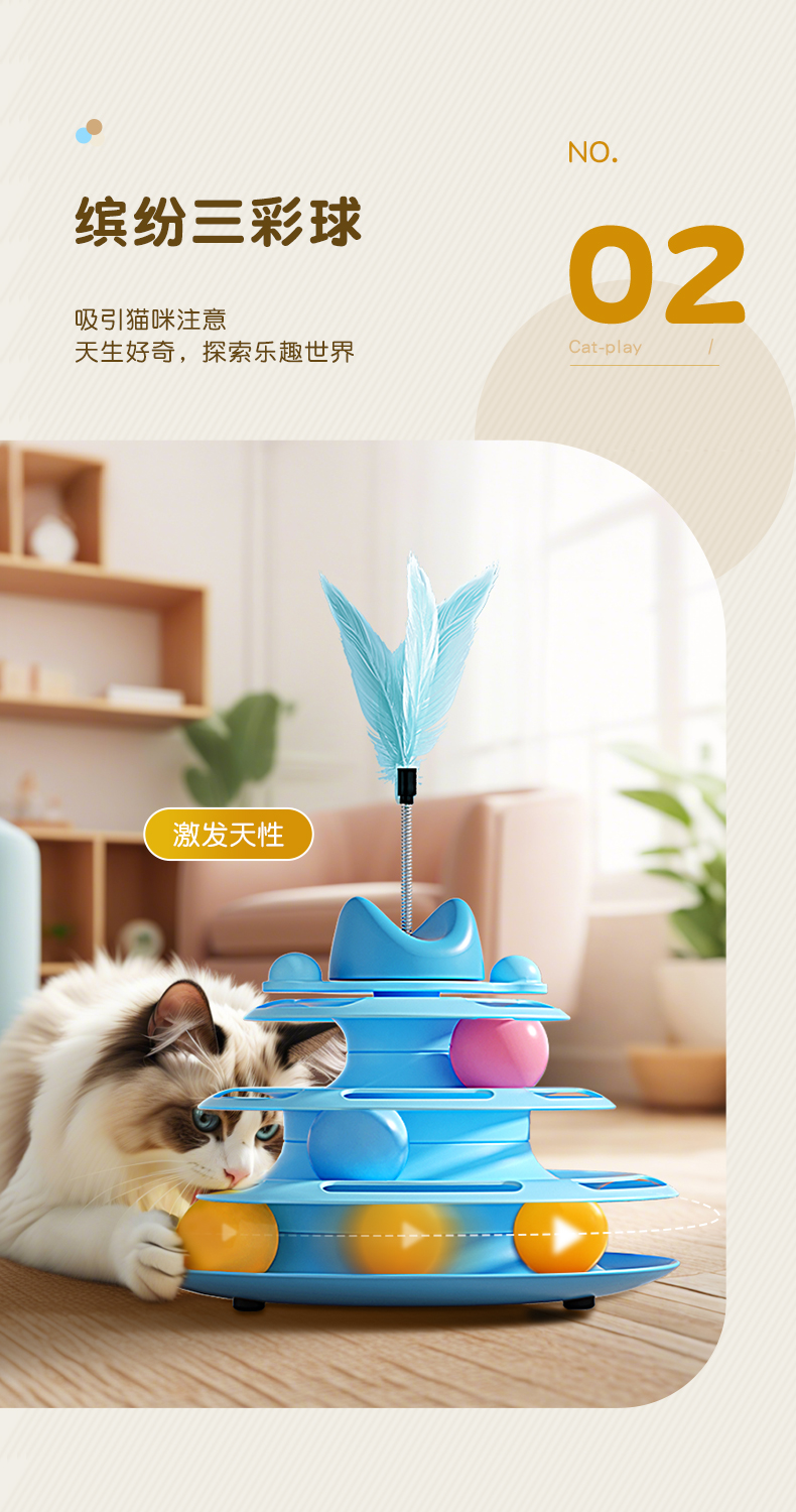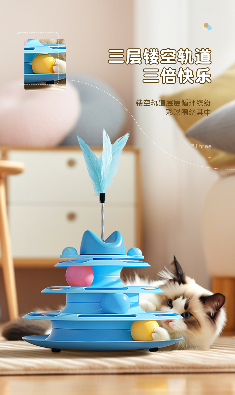 猫玩具逗猫棒猫咪转盘自嗨解闷球小猫三层轨道盘幼猫宠物益智神器