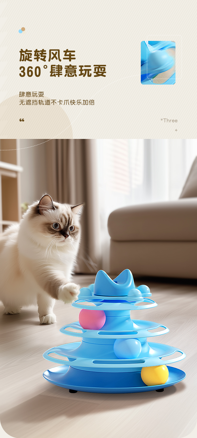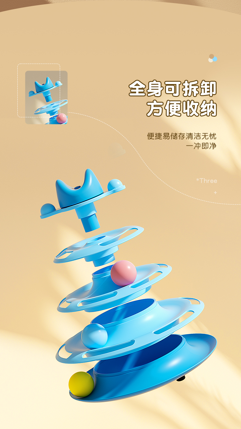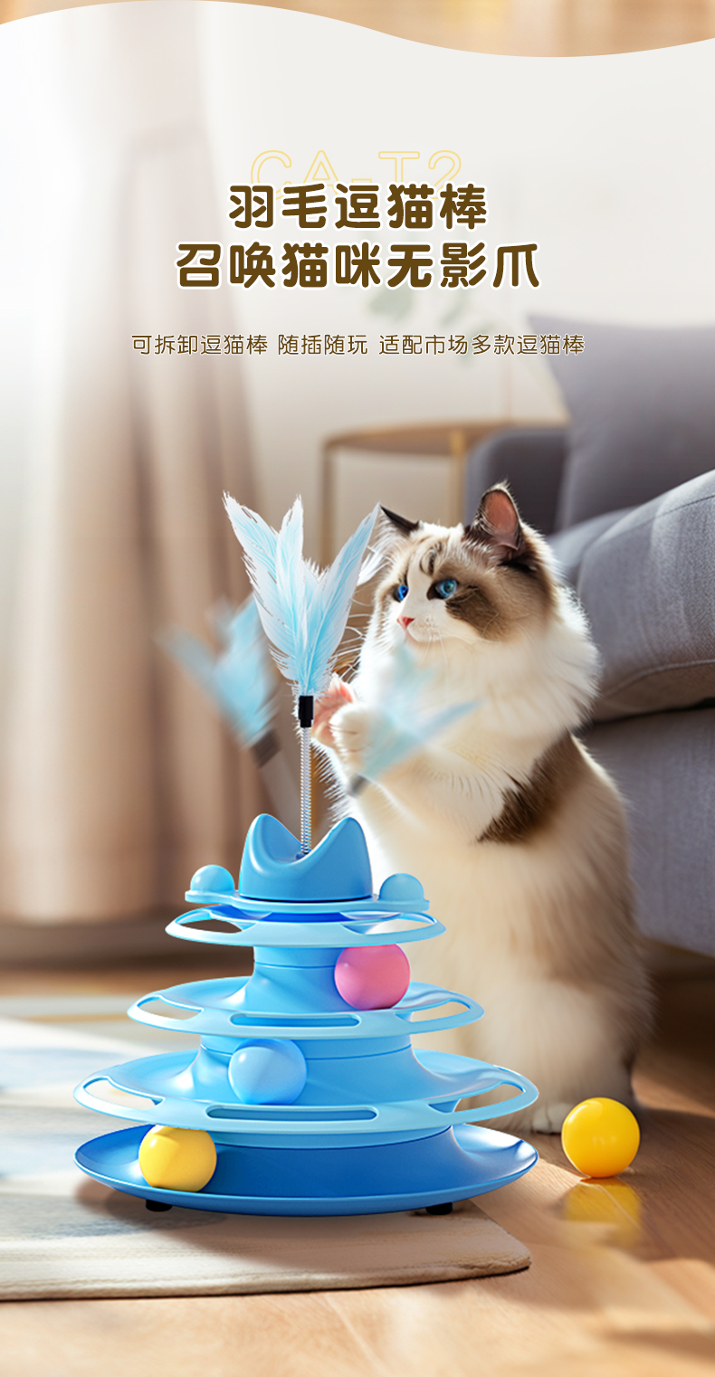 猫玩具逗猫棒猫咪转盘自嗨解闷球小猫三层轨道盘幼猫宠物益智神器