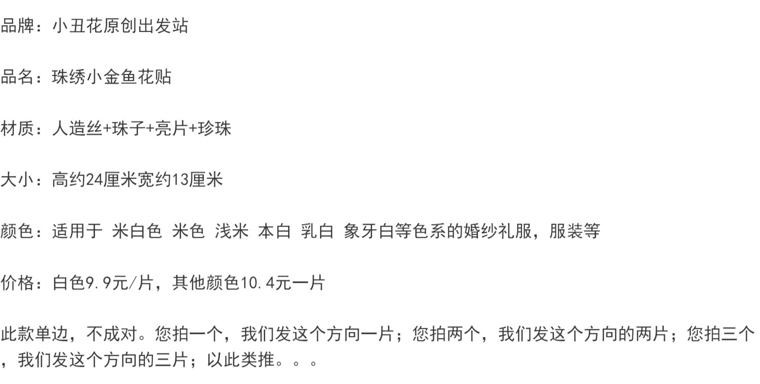 珠绣小金鱼多色 重工珠子亮片吊片花贴 婚纱礼服童装辅料 新品