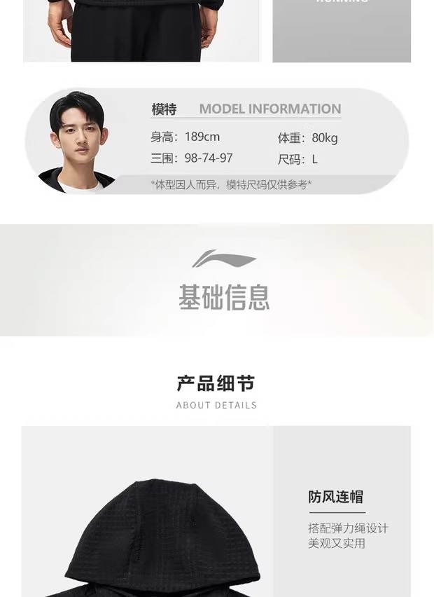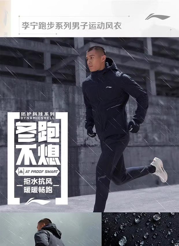 李宁外套冬季新款男子反光加绒保暖防泼水运动风衣AFDT623LL