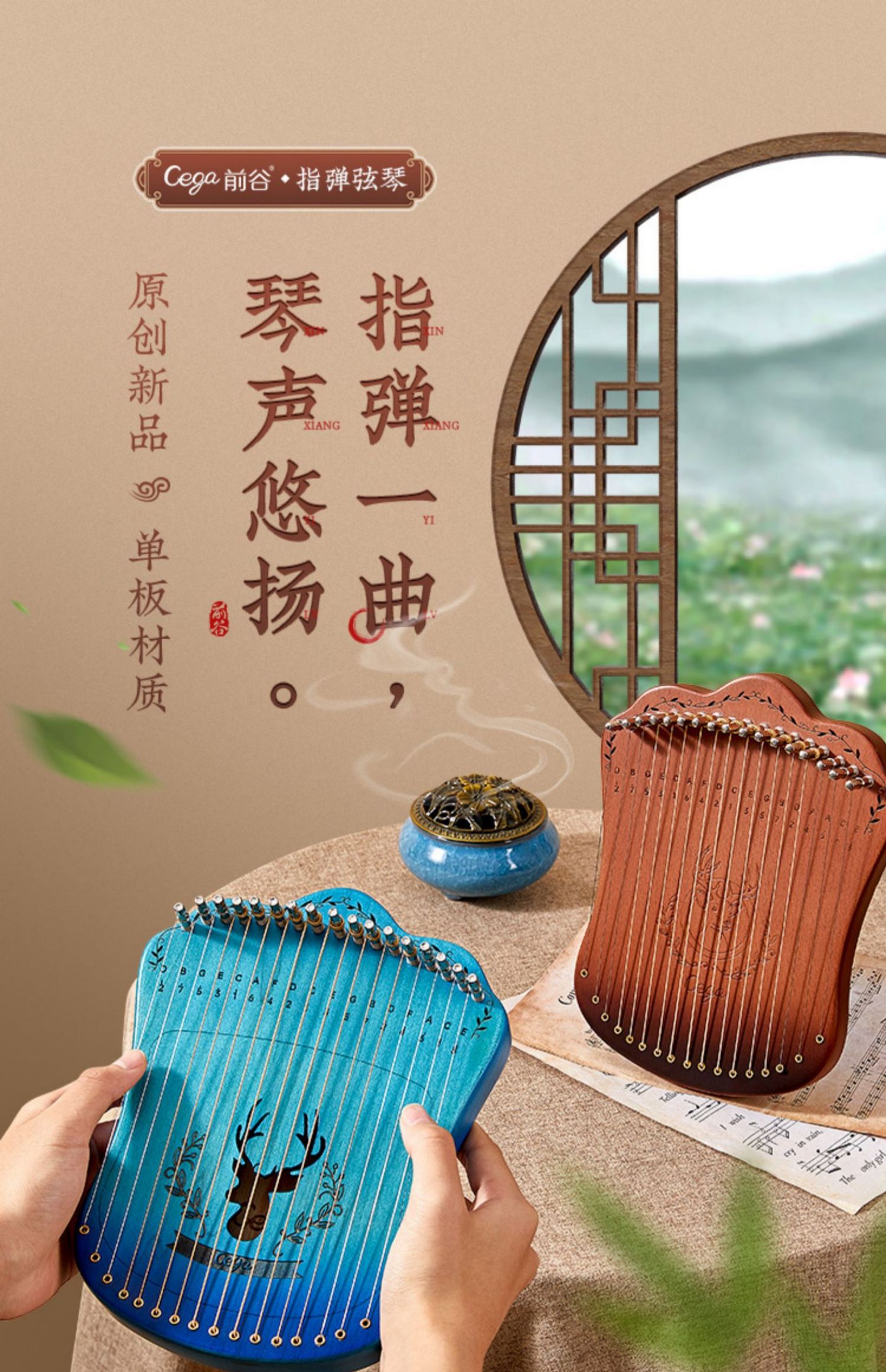 cega指弹弦琴17音弦男女生自学乐器小吉他拇指手指琴卡林巴琴正品