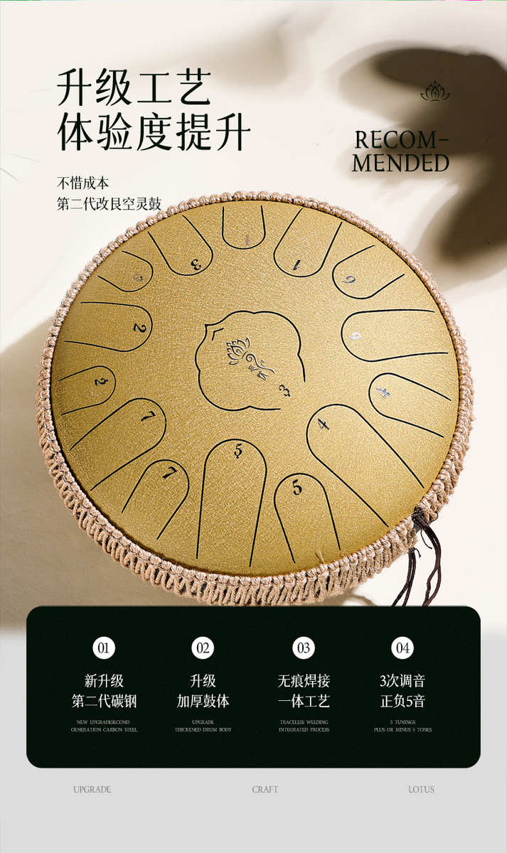 空灵鼓儿童15音14寸钢舌鼓梵音鼓初学者乐器色空鼓专业手碟鼓华蜀