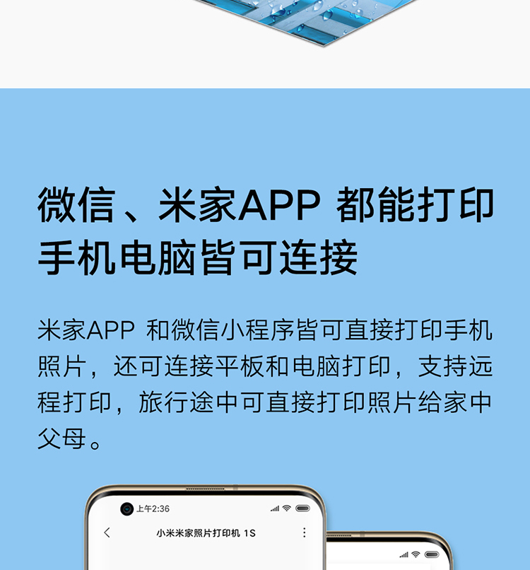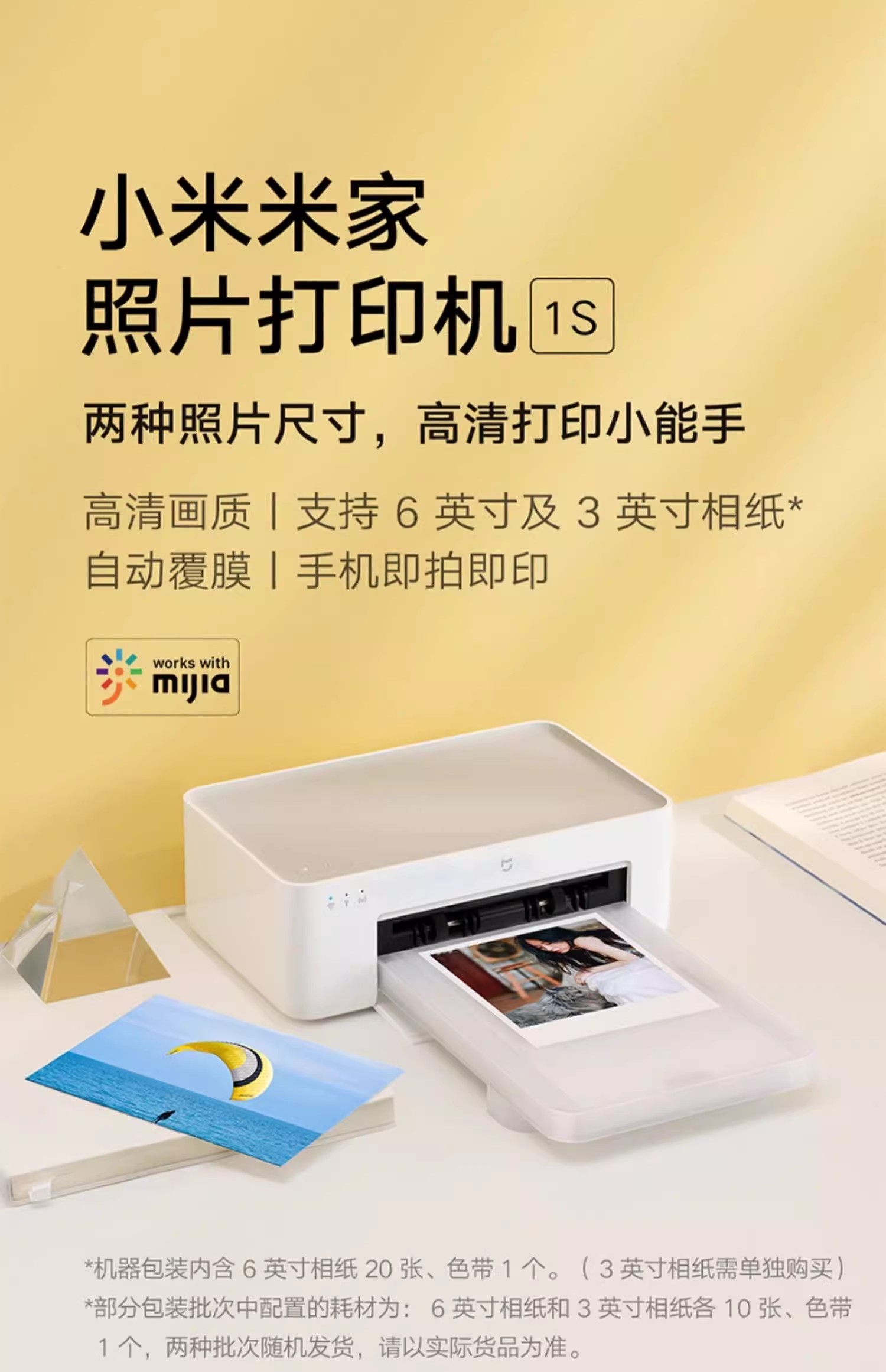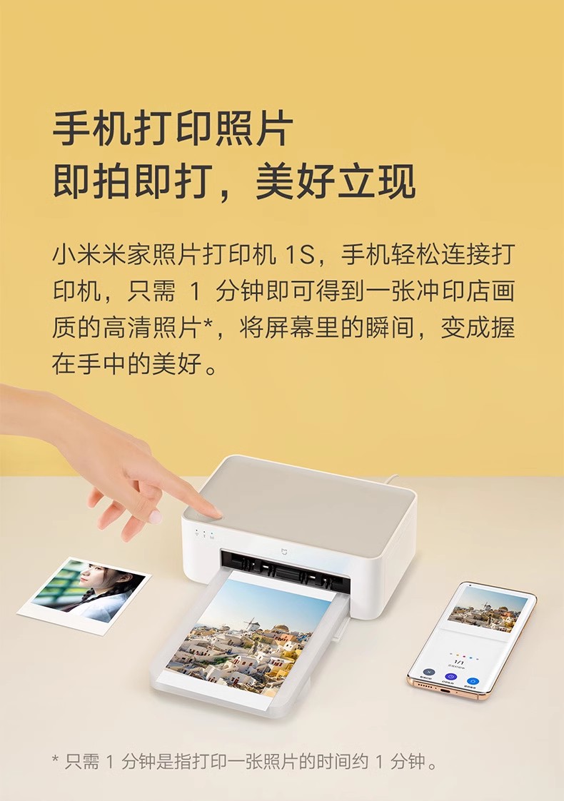 小米米家照片打印机1S小型手机照片彩色打印智能无线连接相片相纸