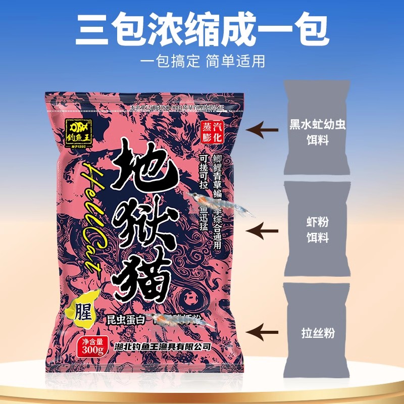 湖北钓鱼王地狱猫饵料产地直发野钓垂钓用钓鱼饵含拉丝粉可搓可拉