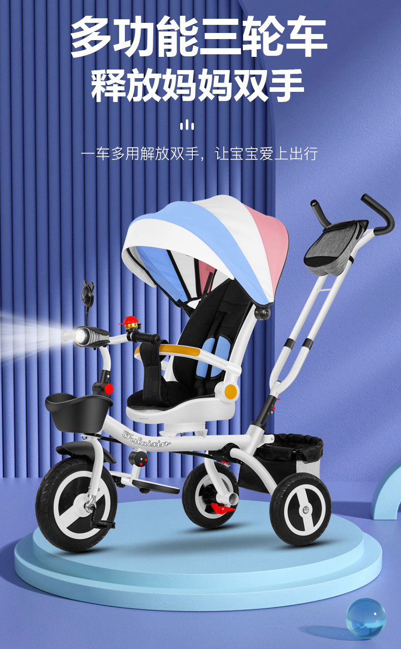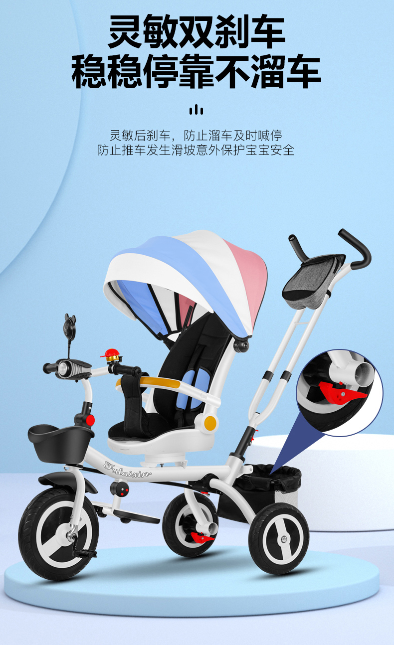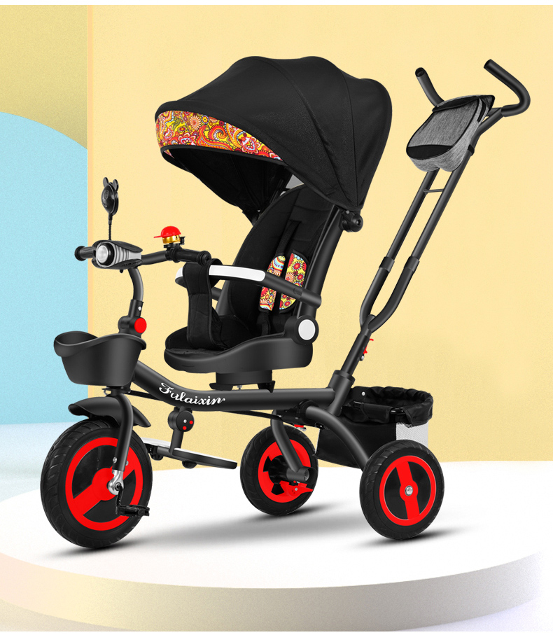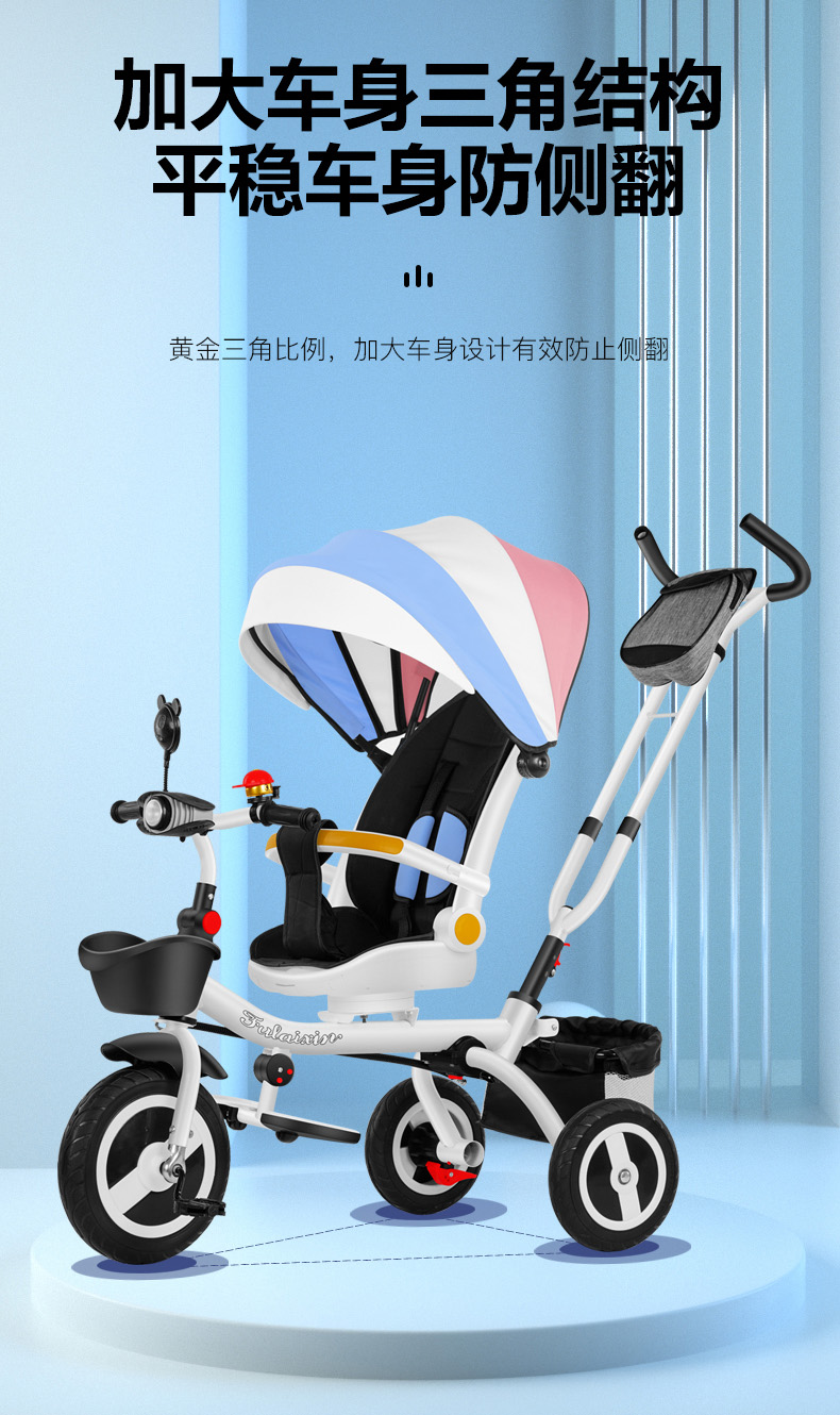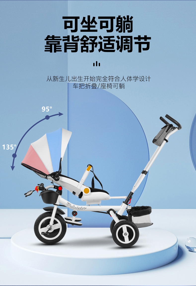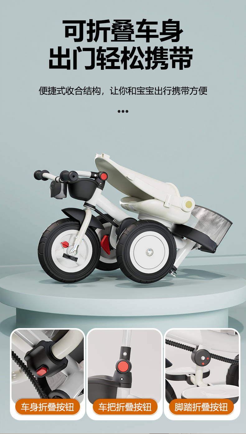 多功能儿童三轮车脚踏车1-3-6岁宝宝折叠可躺婴幼儿童手推车大码