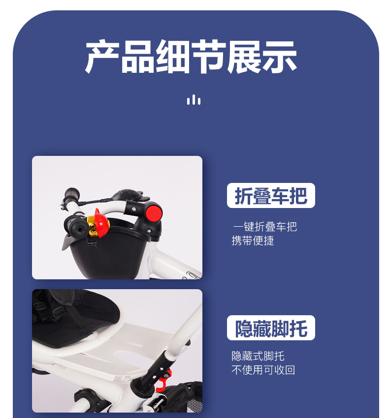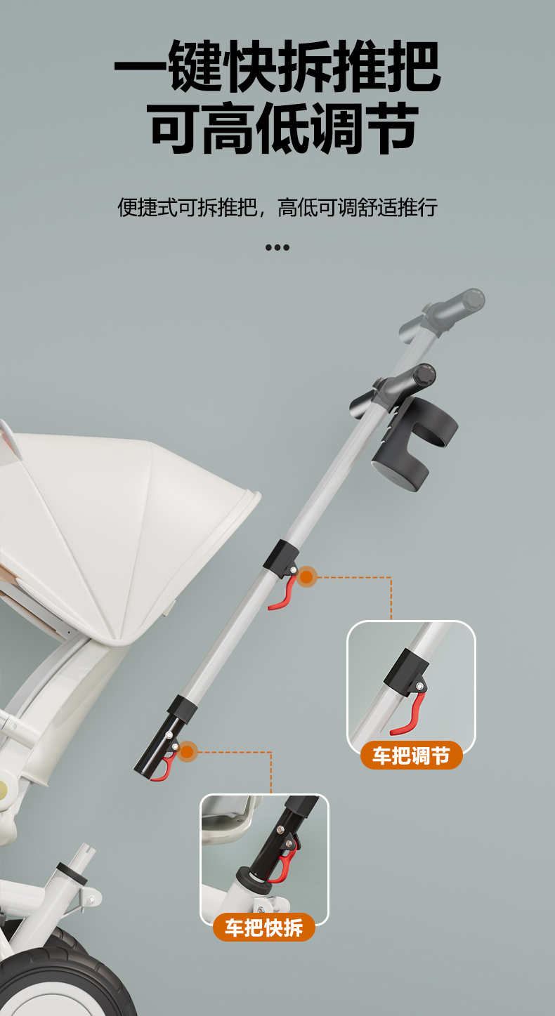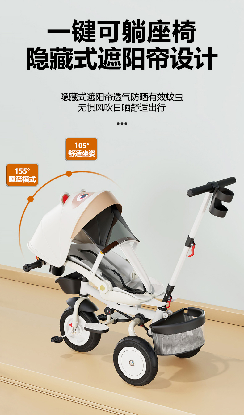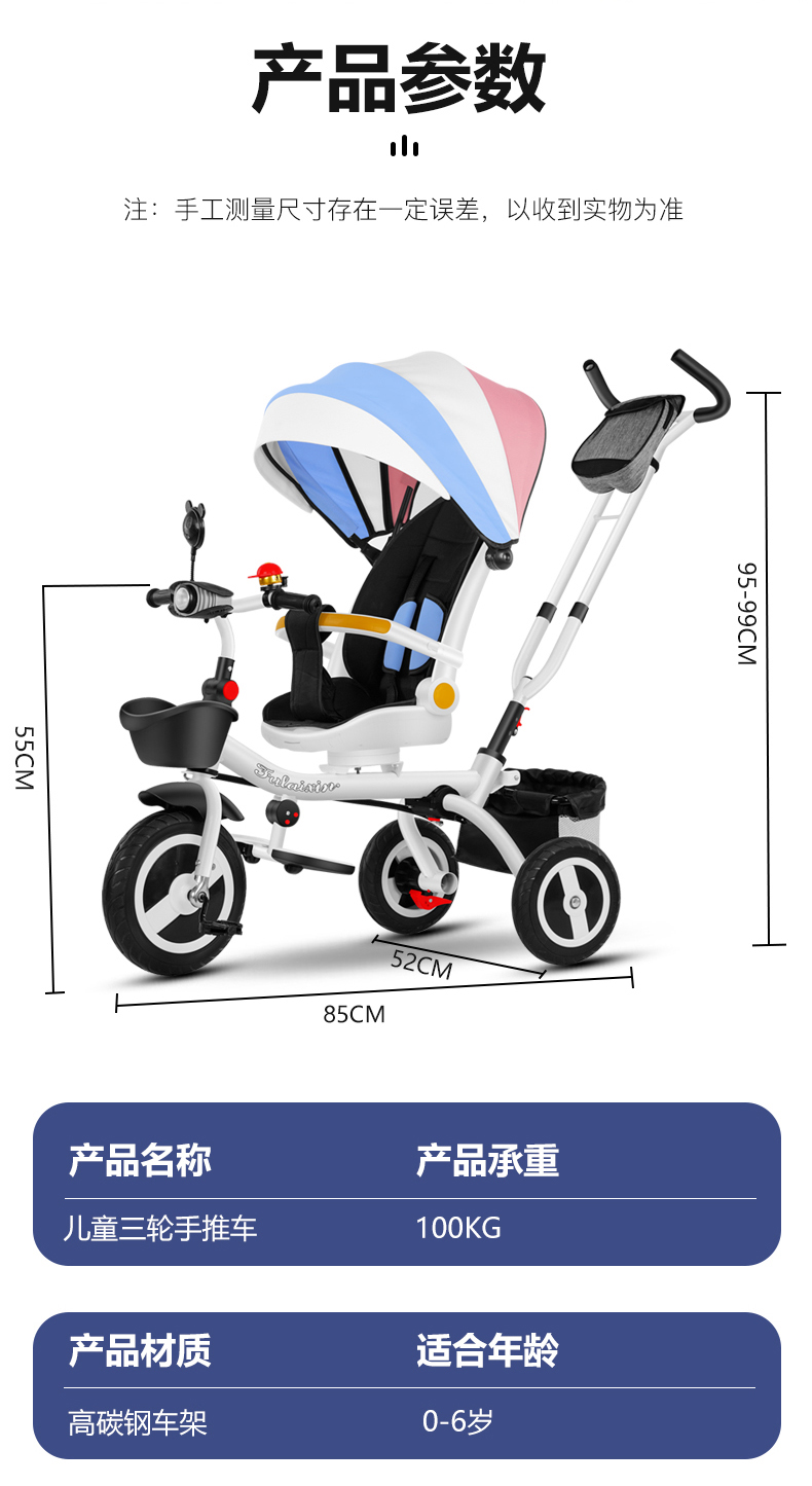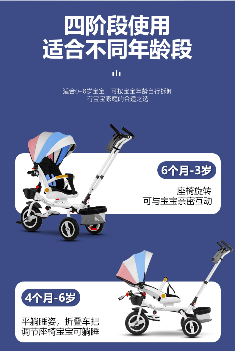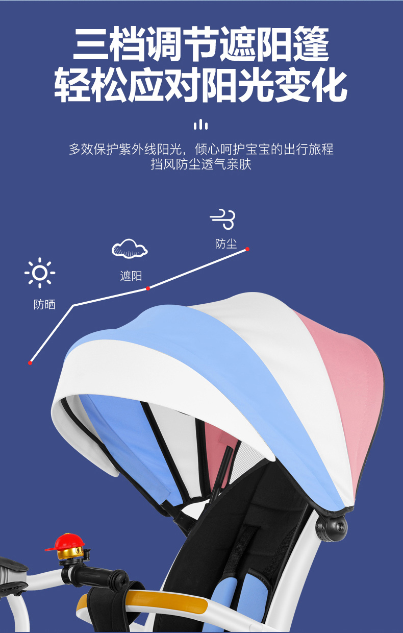 多功能儿童三轮车脚踏车1-3-6岁宝宝折叠可躺婴幼儿童手推车大码