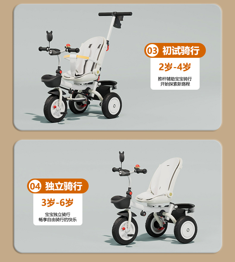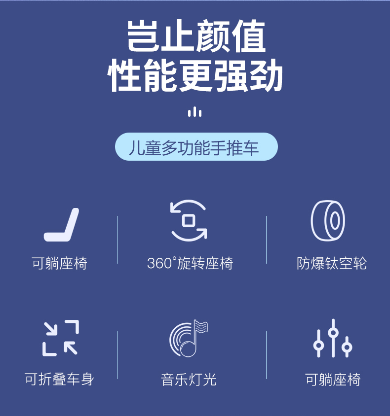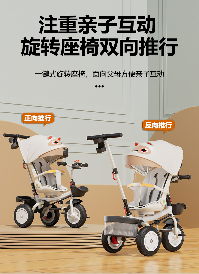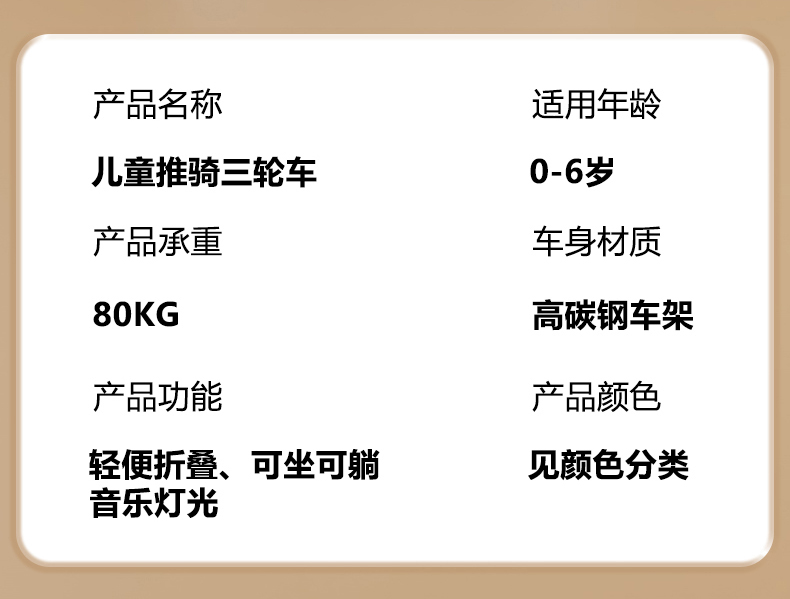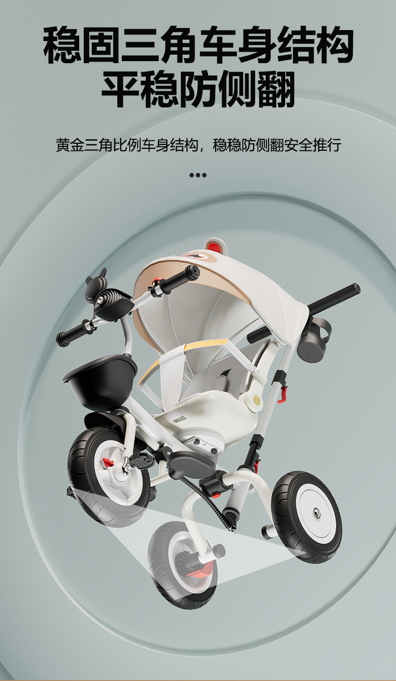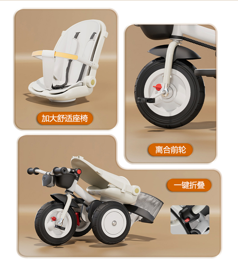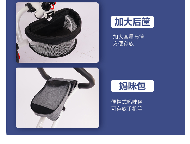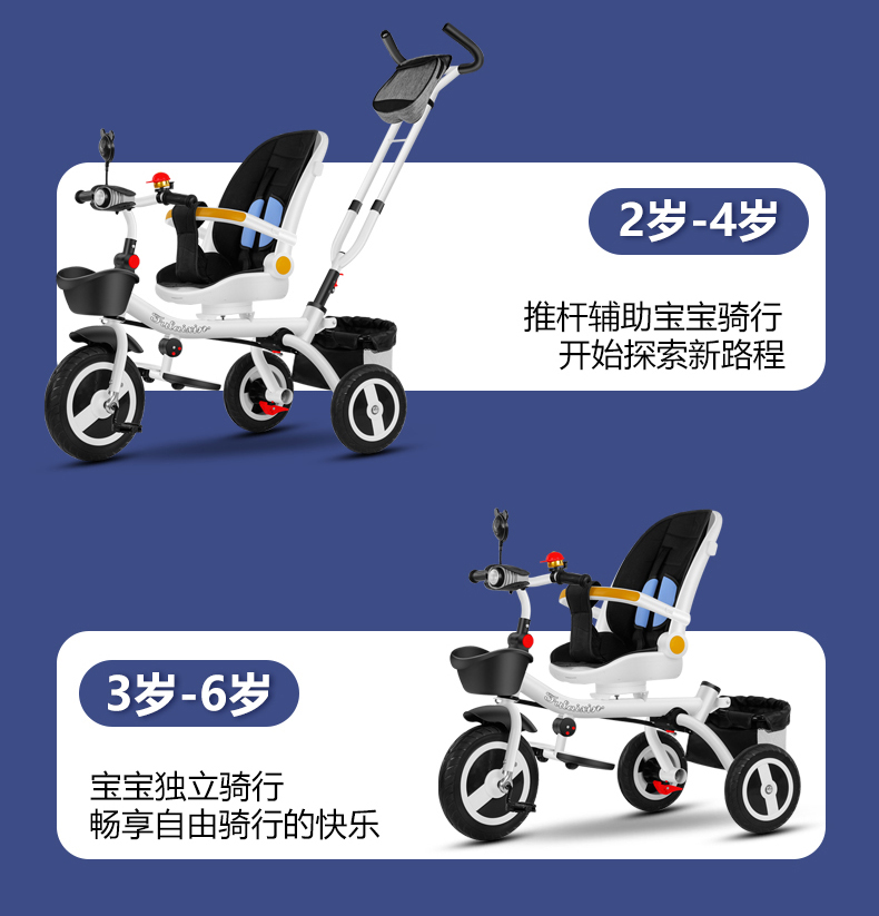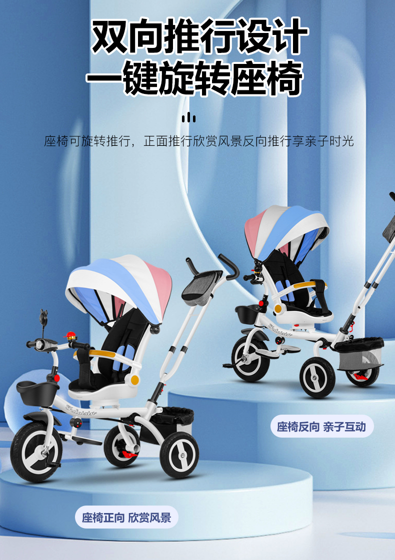 多功能儿童三轮车脚踏车1-3-6岁宝宝折叠可躺婴幼儿童手推车大码