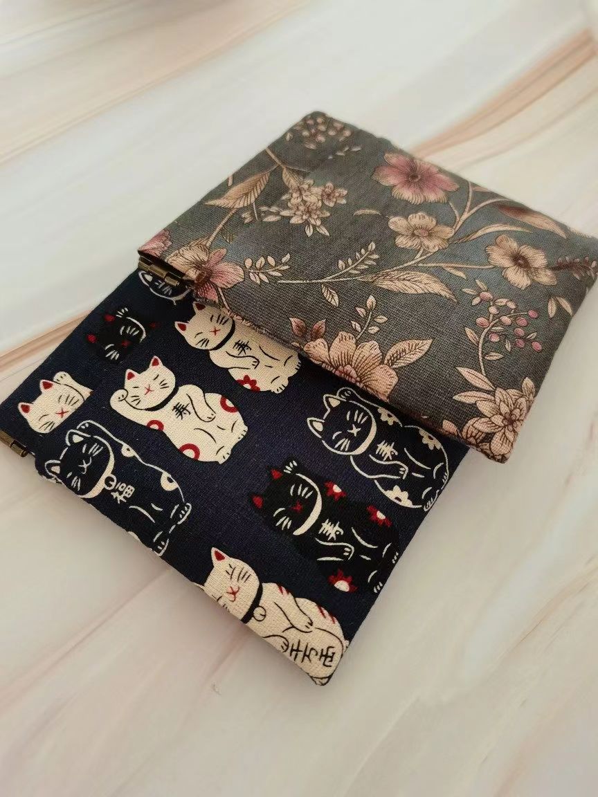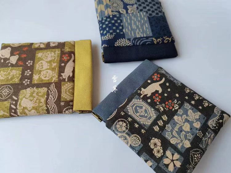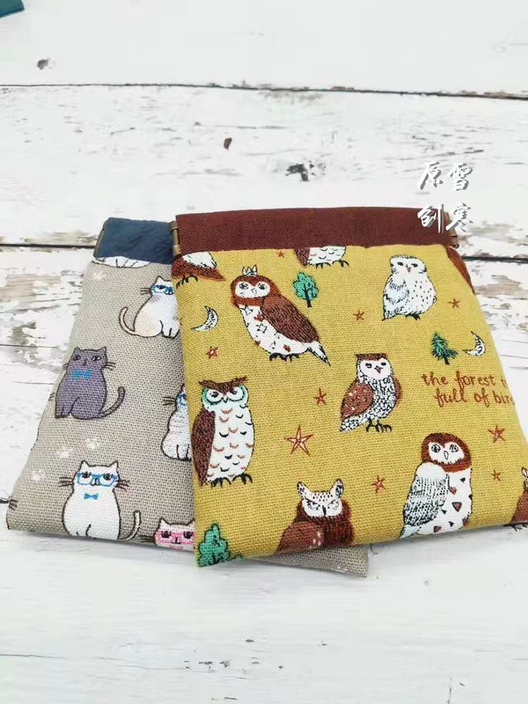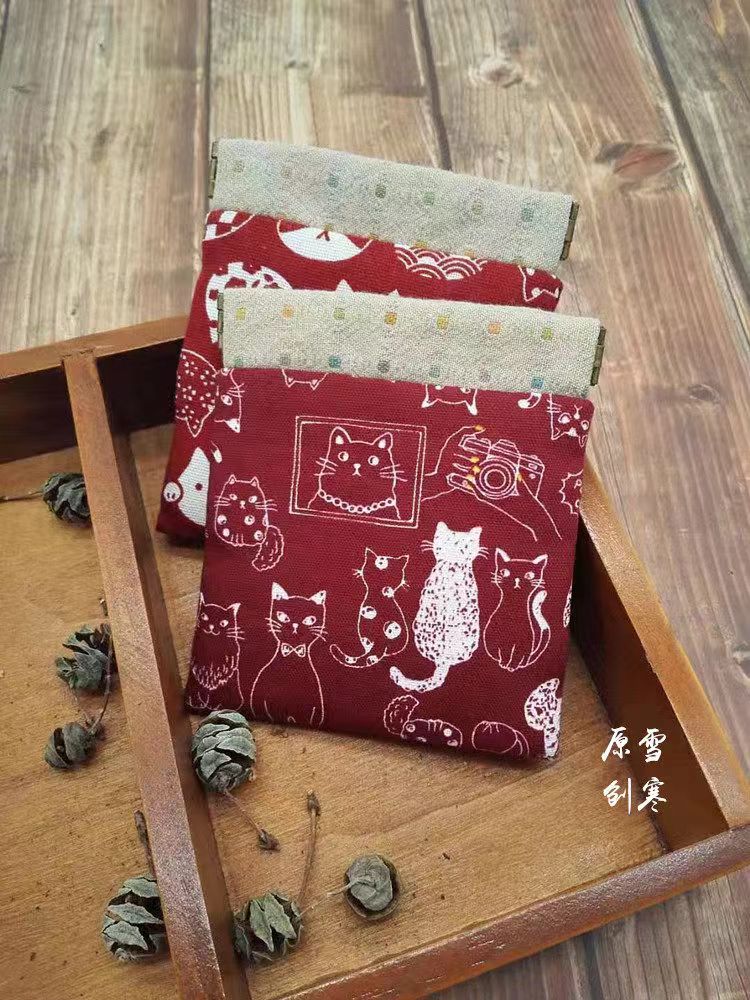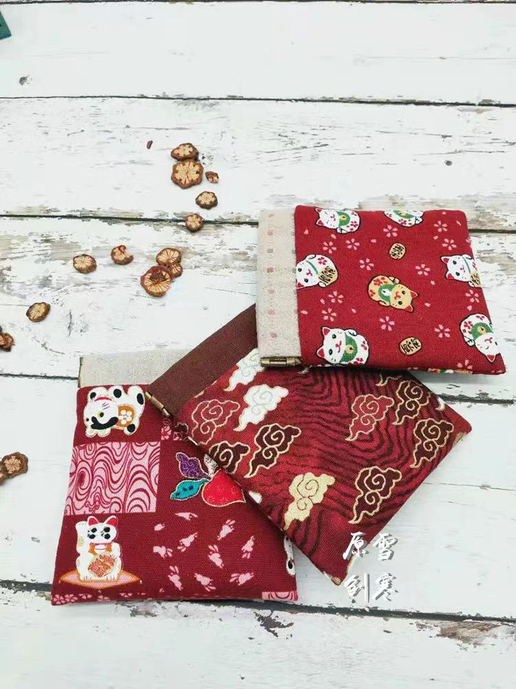 一件包邮 雪寒原创 复古日式手工棉麻布艺弹片口红包创意零钱包