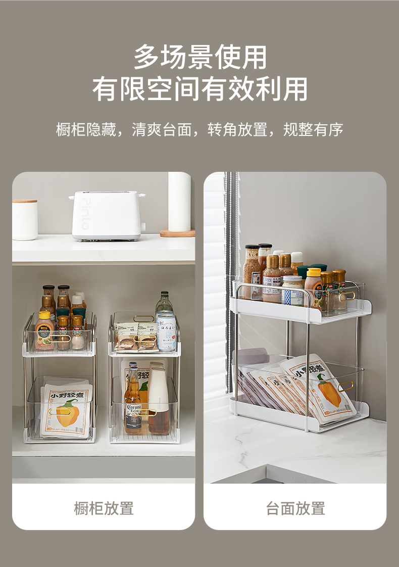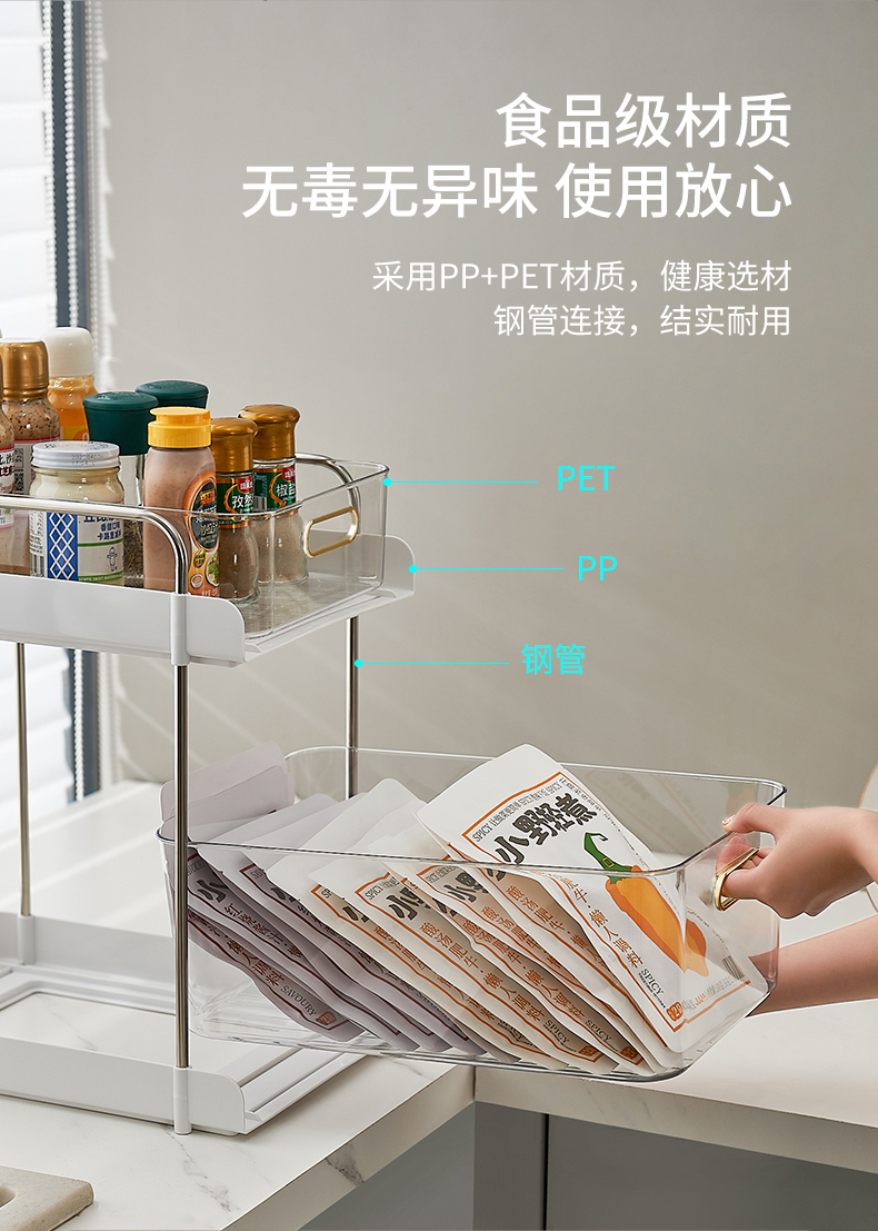 水槽下抽拉式置物架橱柜架子厨房调料置物架浴室柜收纳内置分层架