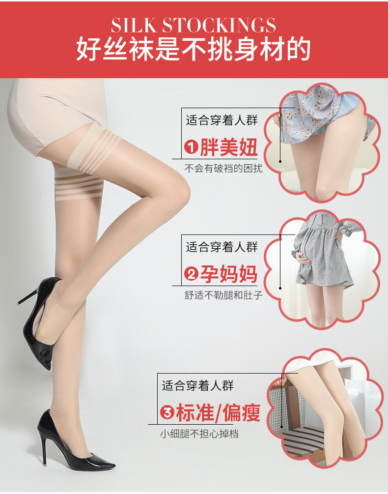 大码长筒丝袜夏季超薄款袜子女胖mm粗腿大腿根加肥加大肉色过膝袜
