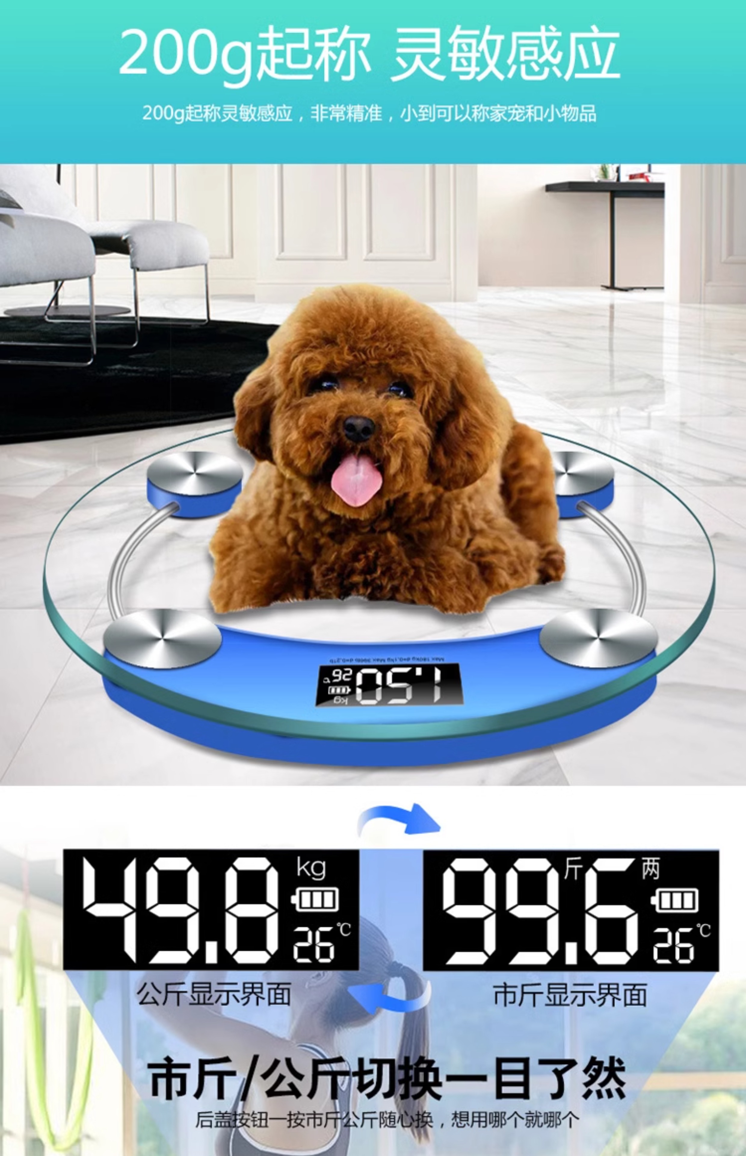 充电款男女人体健康秤精准电子秤加厚玻璃称家用浴室成人体重秤