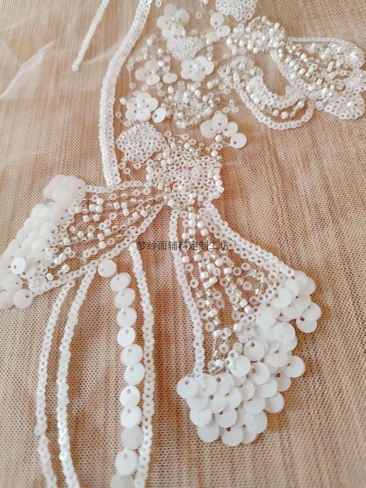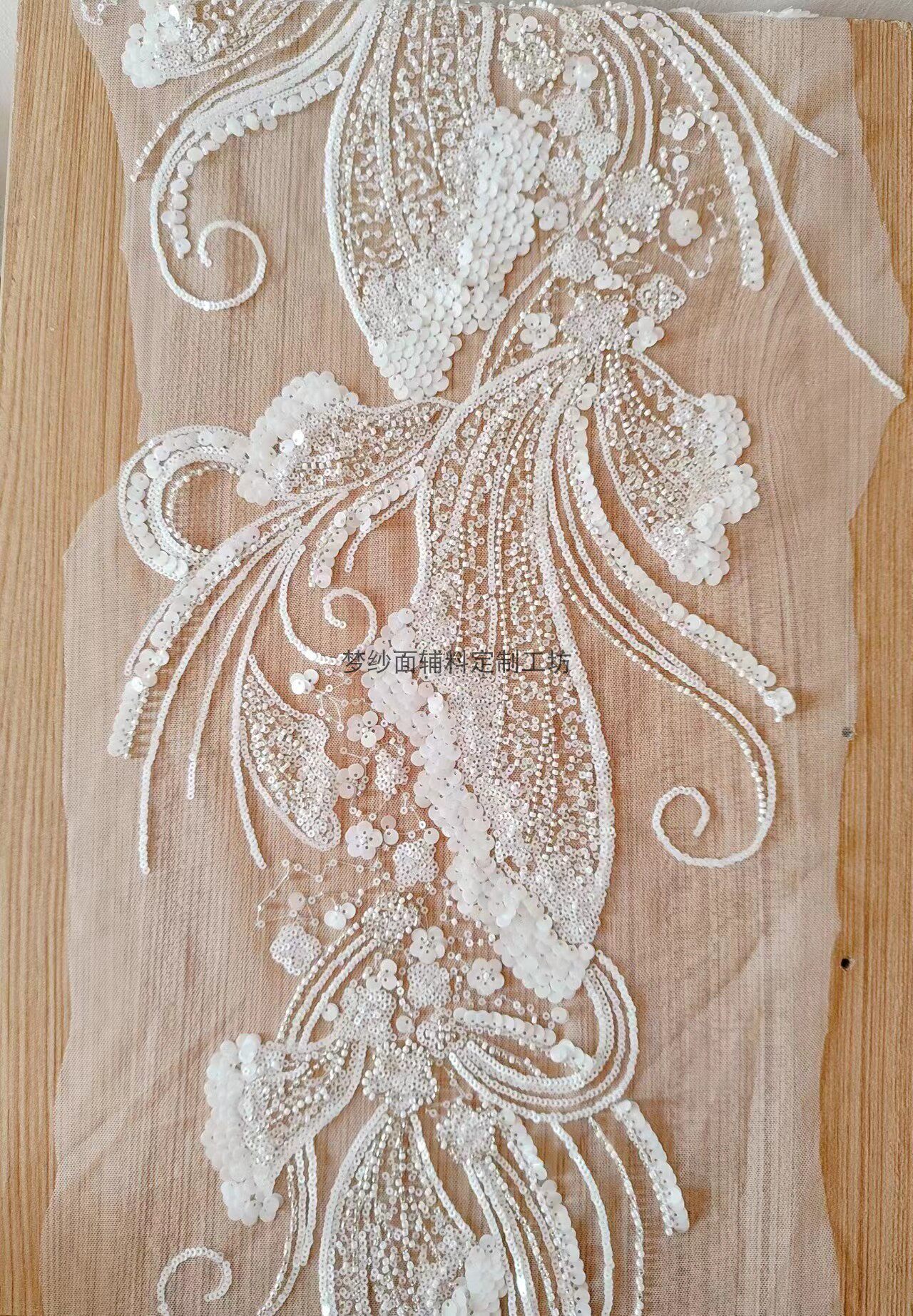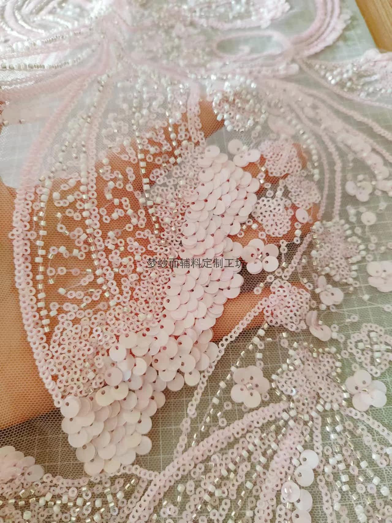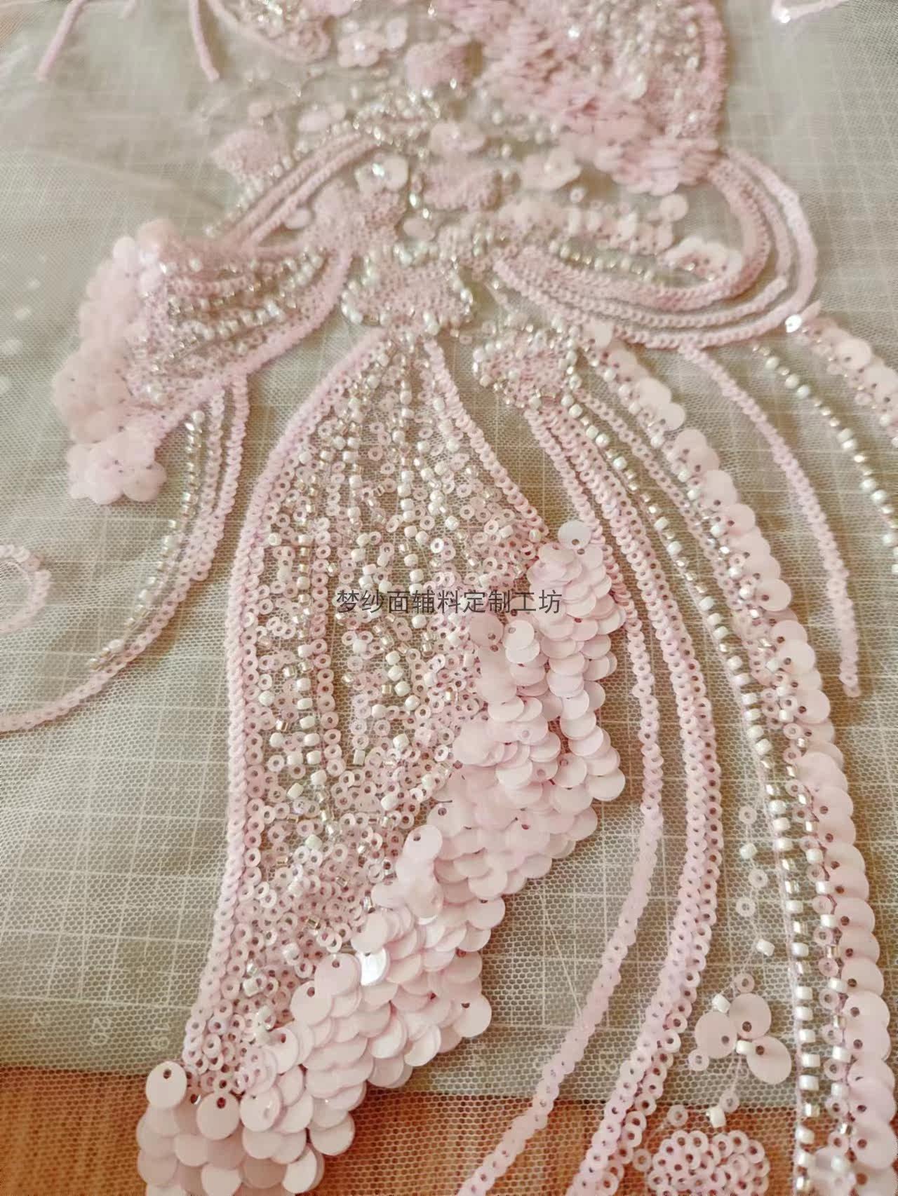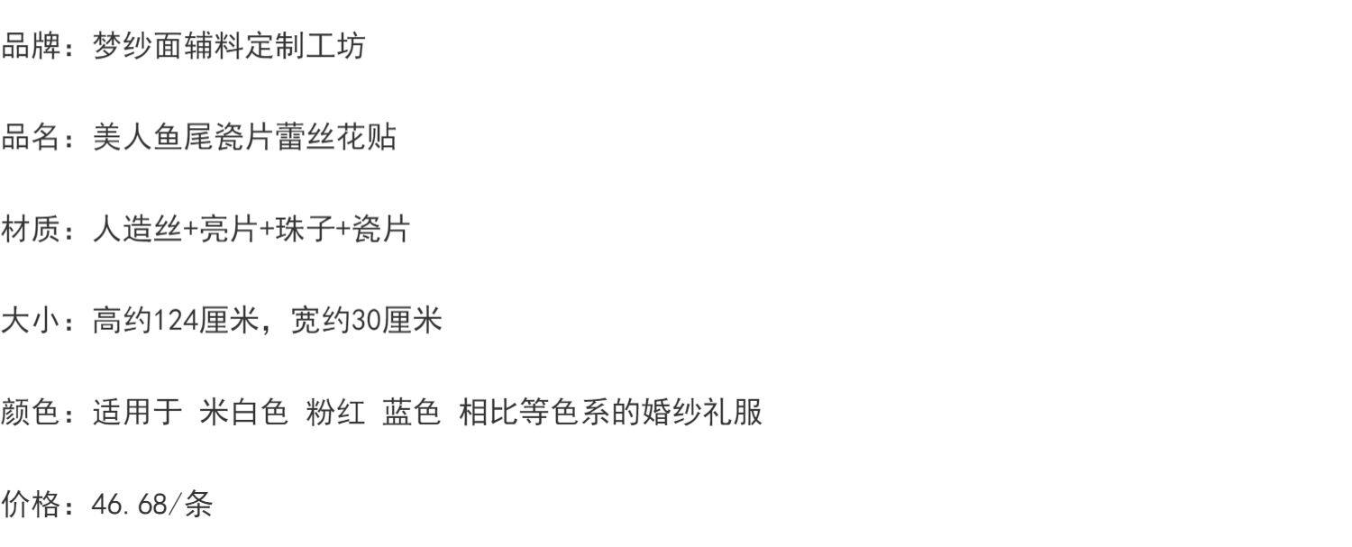 美人鱼尾花贴 瓷白片粉红蓝色香槟大贝壳 珠子亮片鱼尾裙婚纱蕾丝