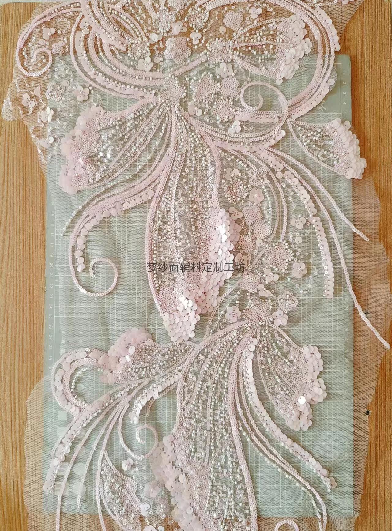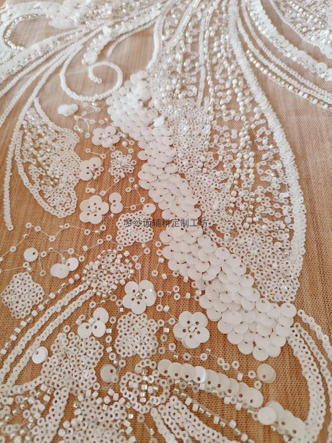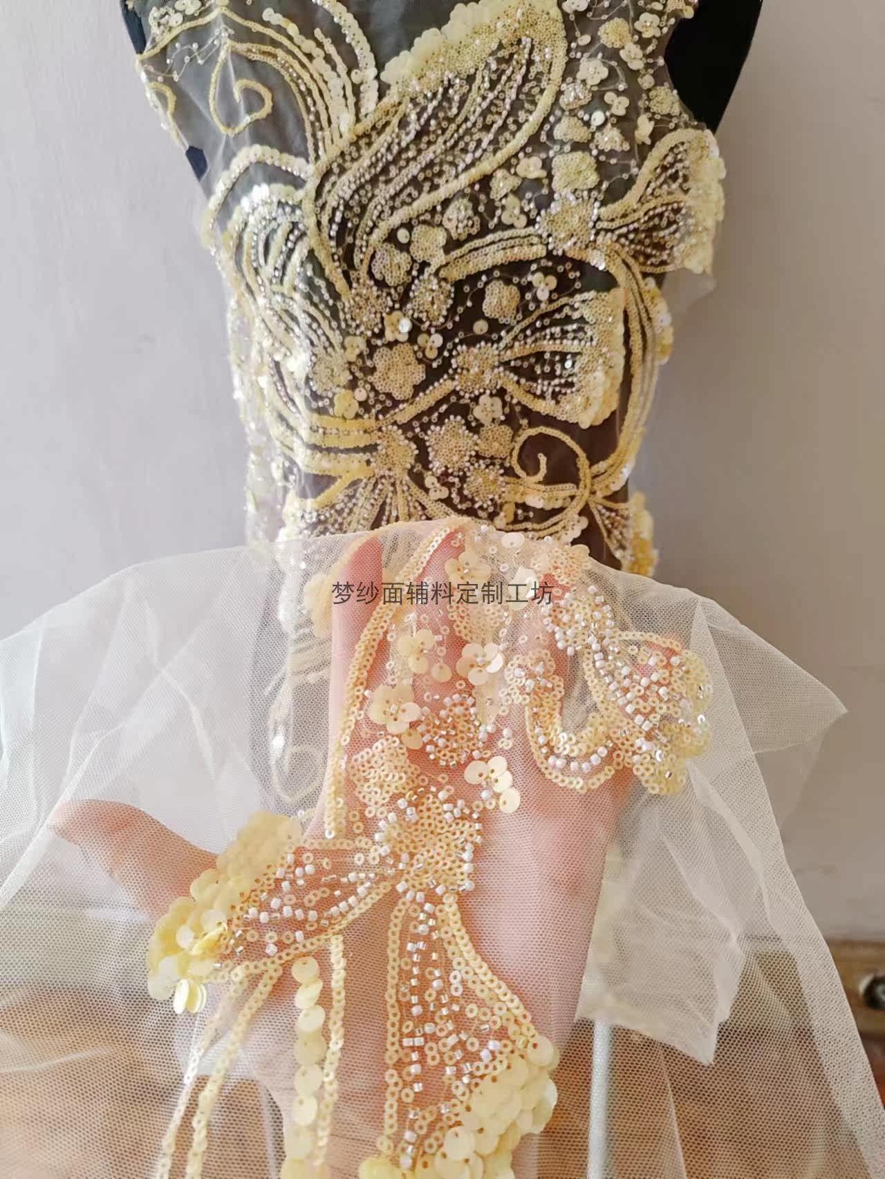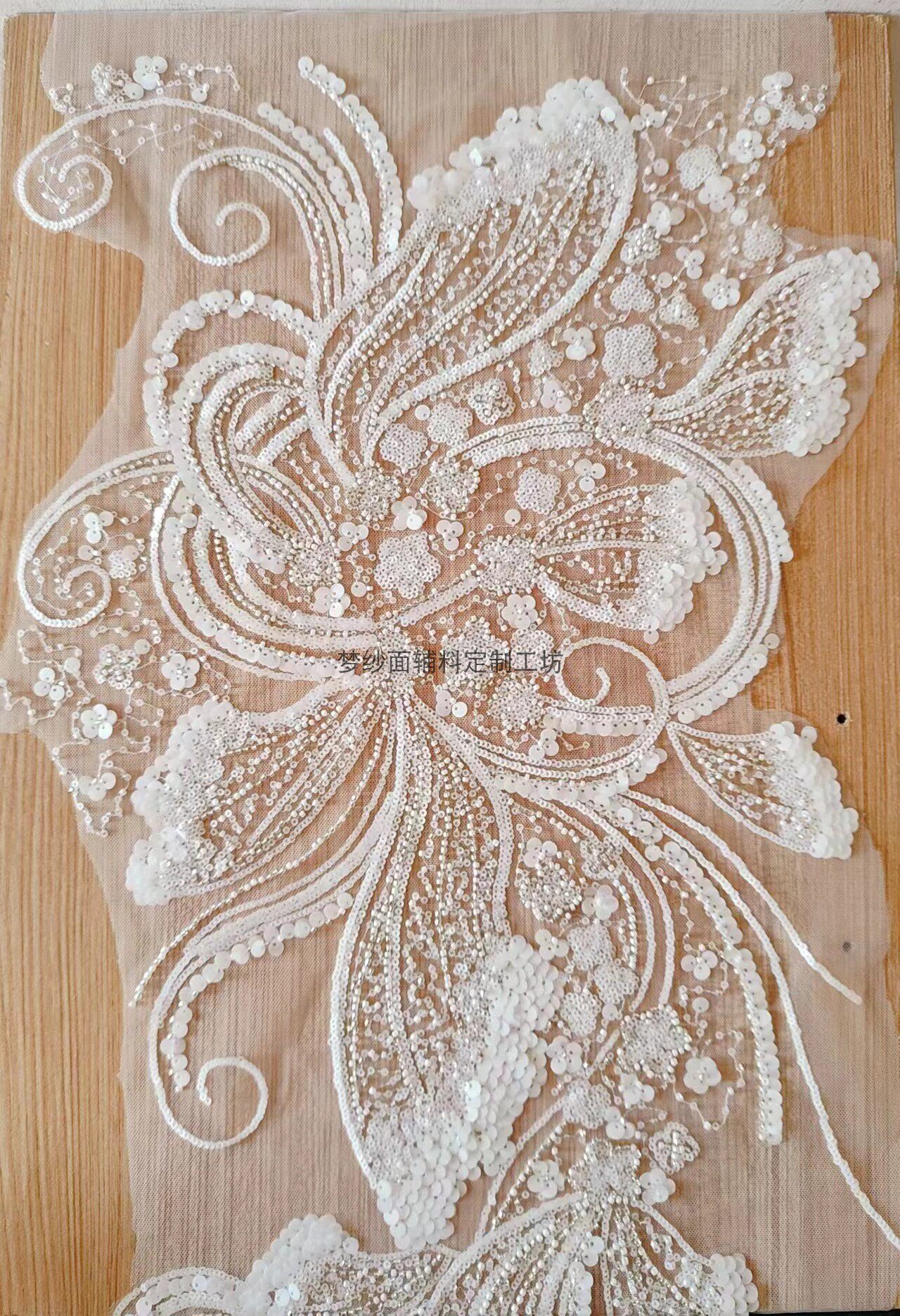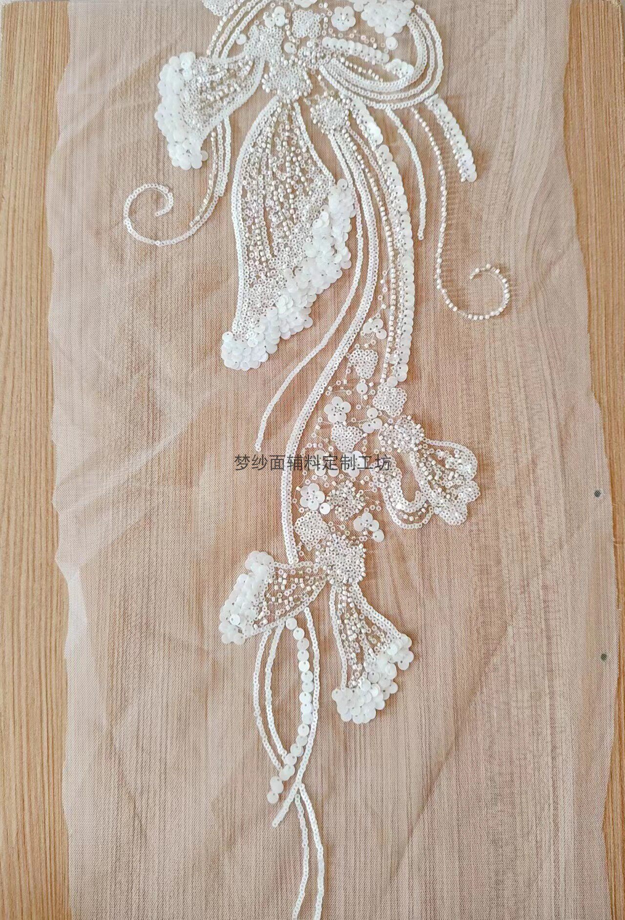 美人鱼尾花贴 瓷白片粉红蓝色香槟大贝壳 珠子亮片鱼尾裙婚纱蕾丝