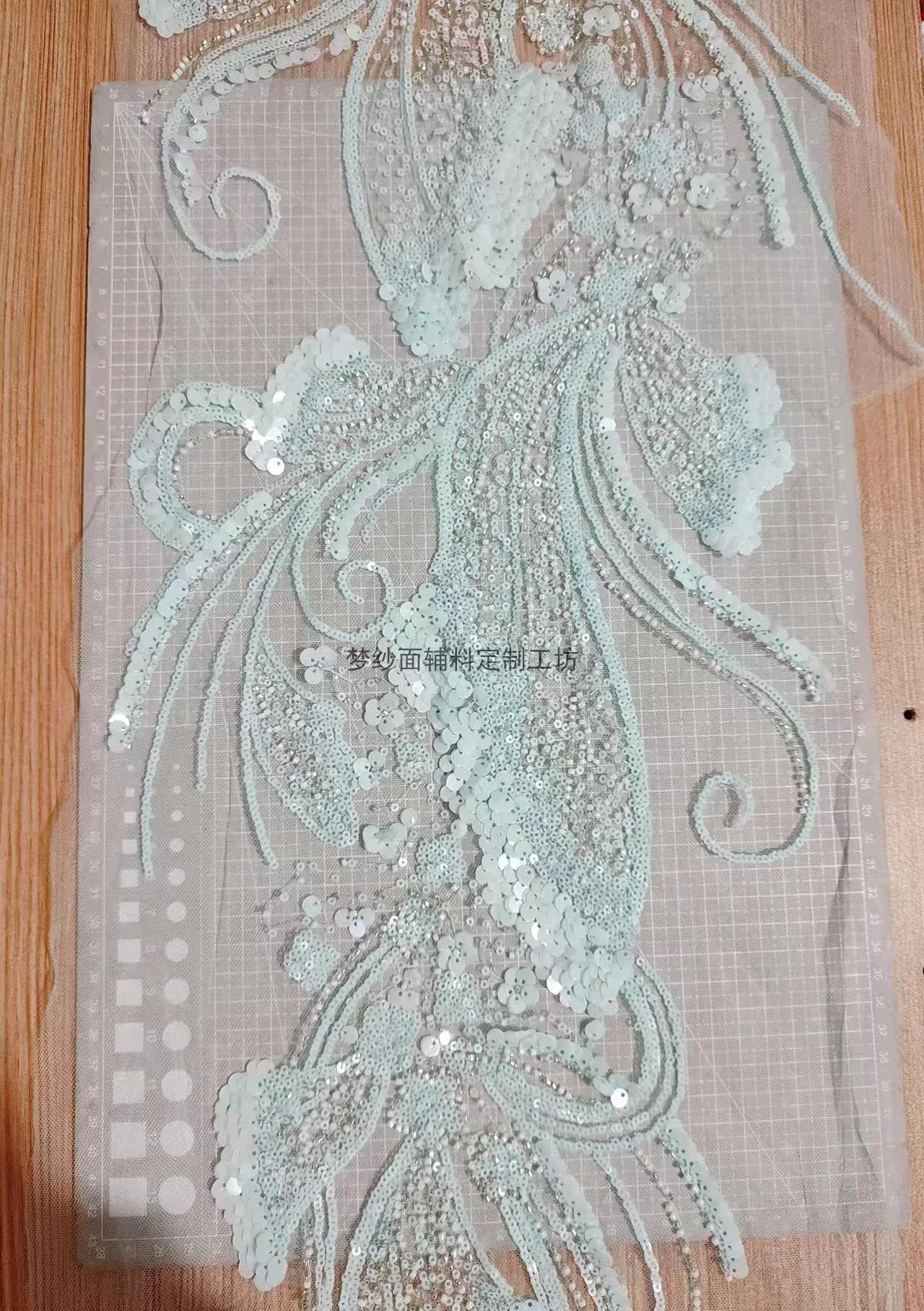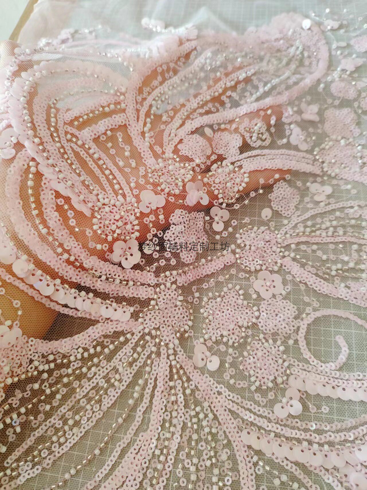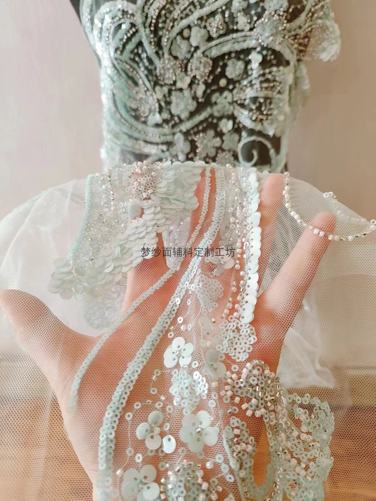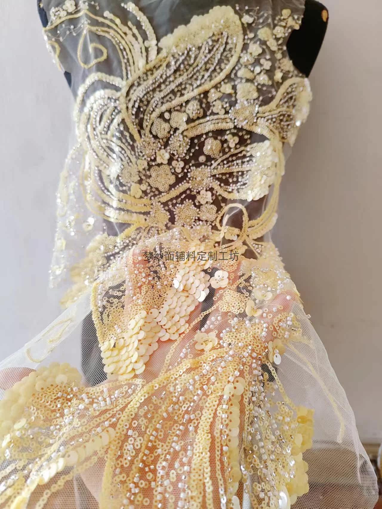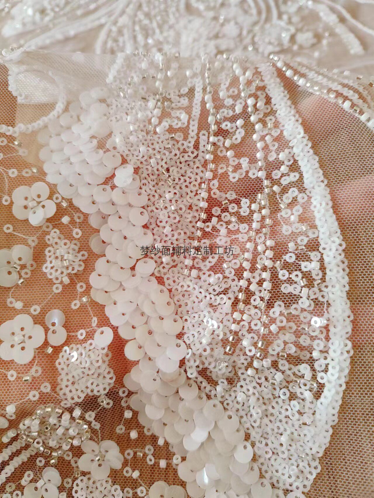 美人鱼尾花贴 瓷白片粉红蓝色香槟大贝壳 珠子亮片鱼尾裙婚纱蕾丝