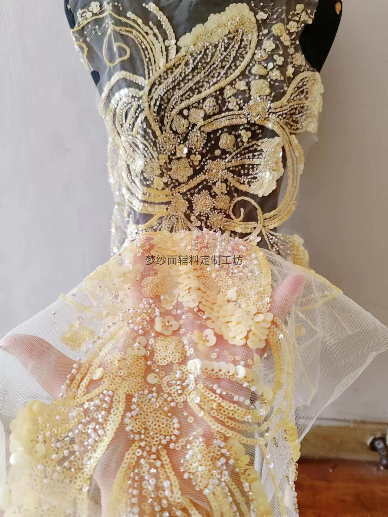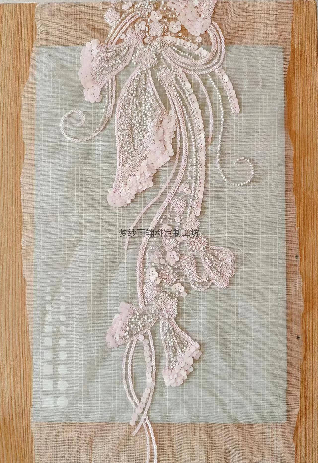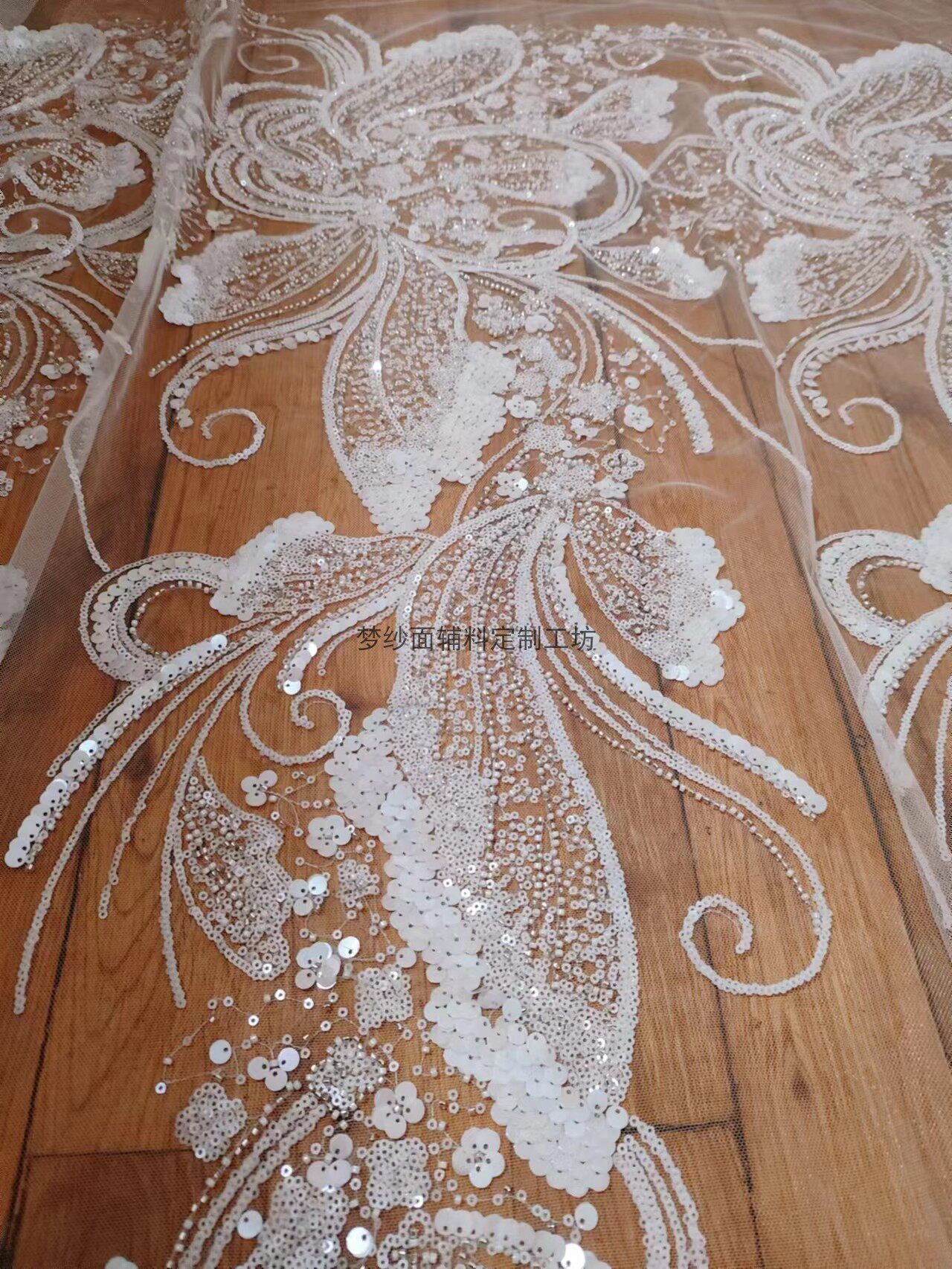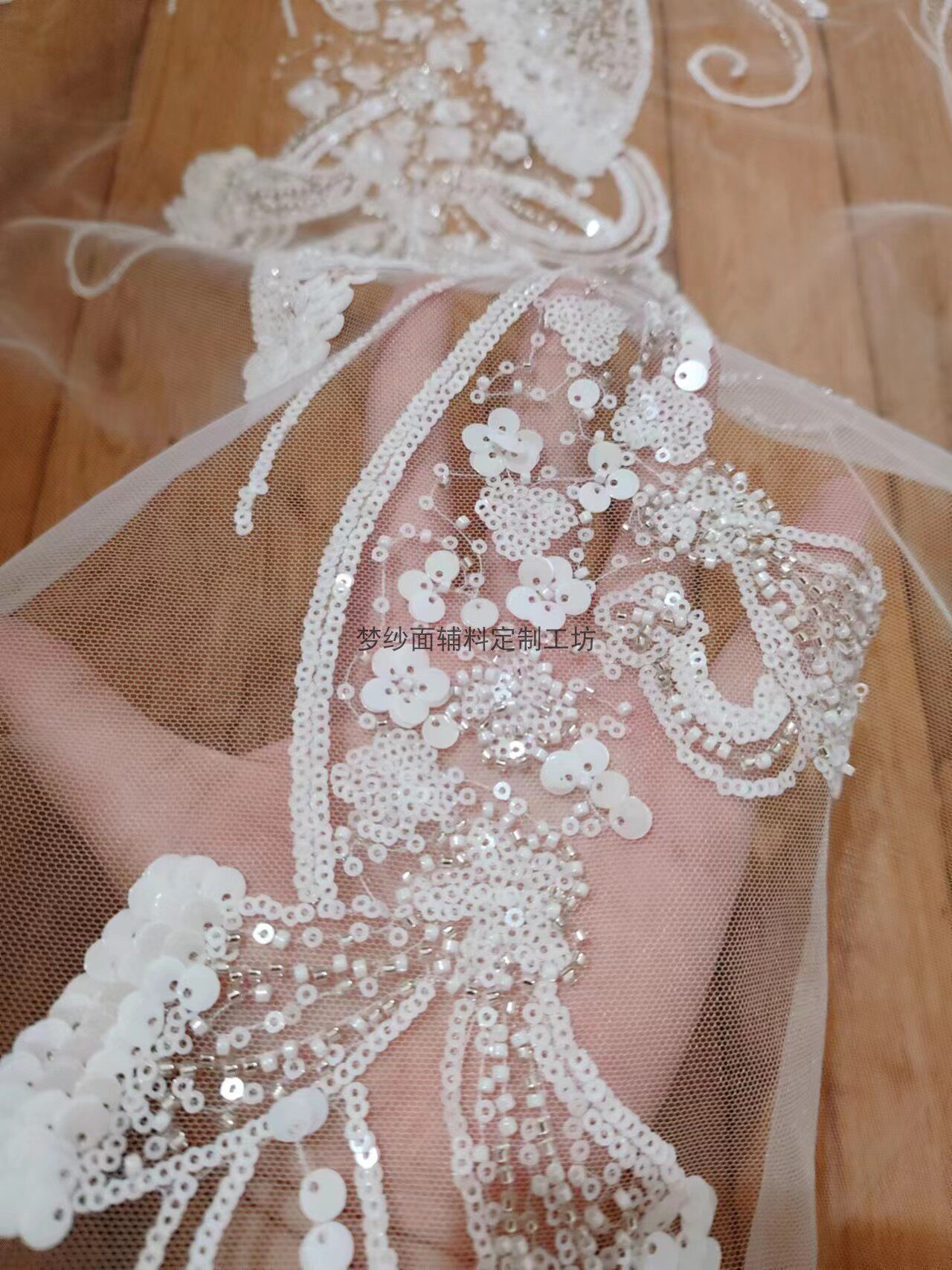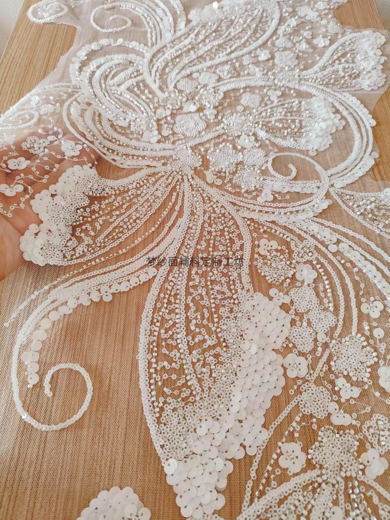 美人鱼尾花贴 瓷白片粉红蓝色香槟大贝壳 珠子亮片鱼尾裙婚纱蕾丝