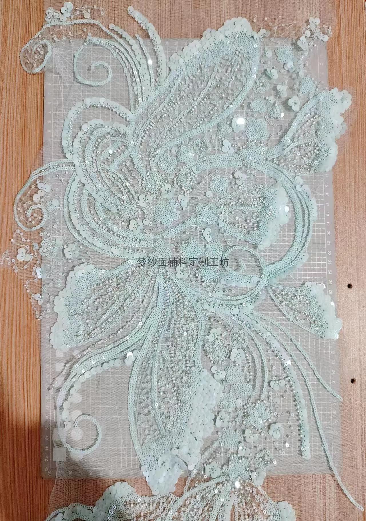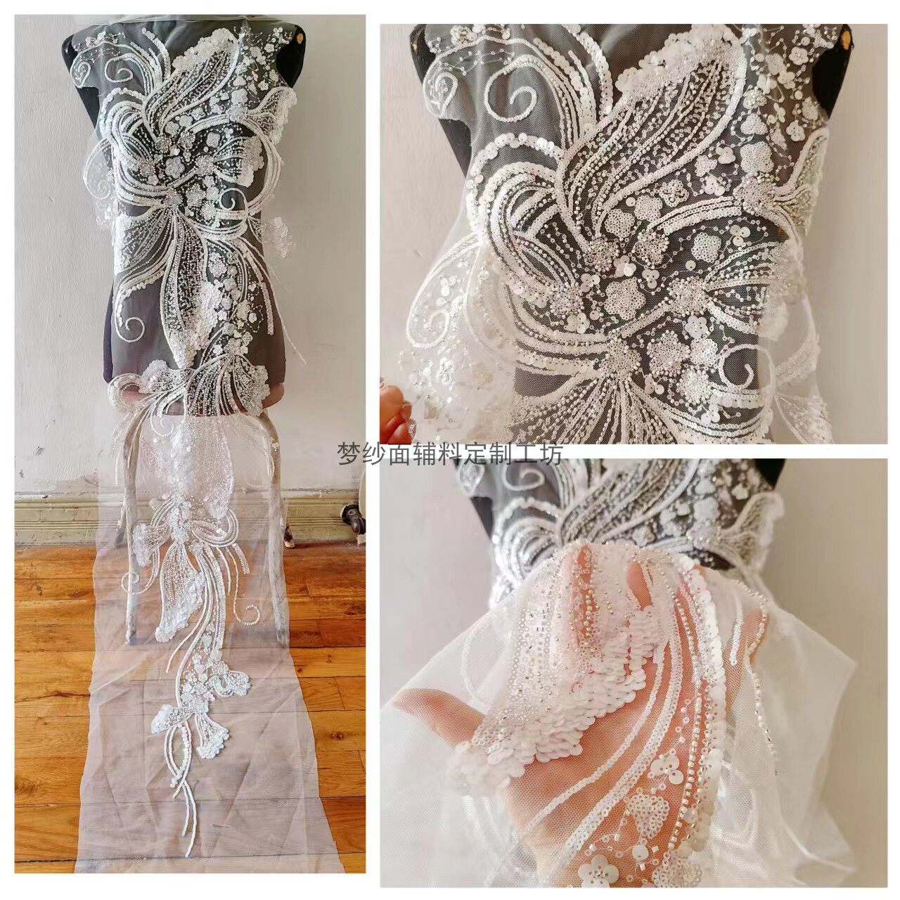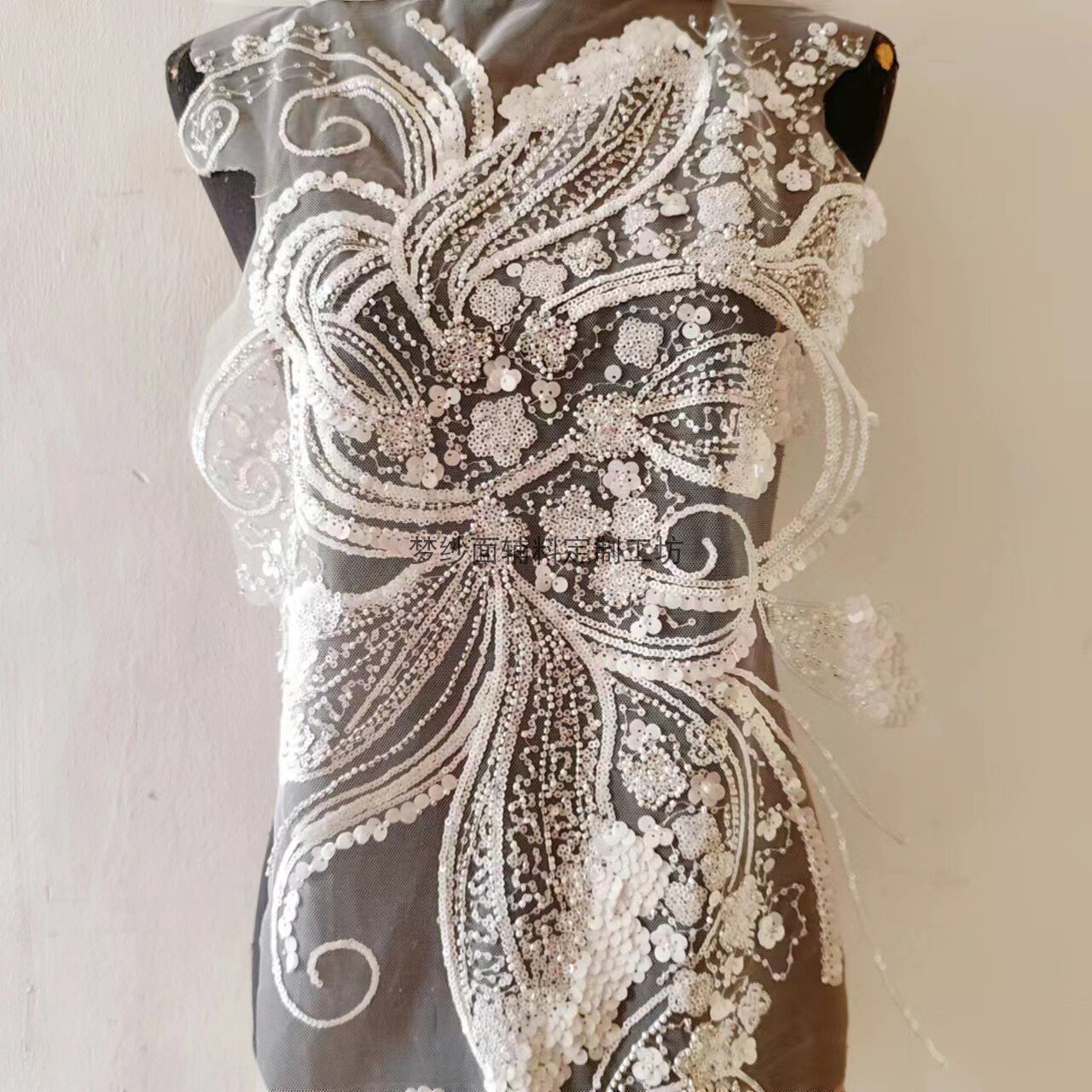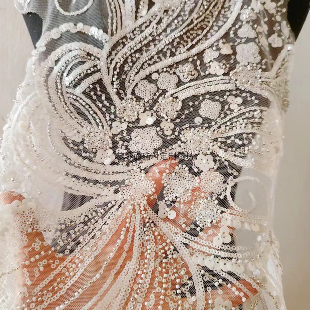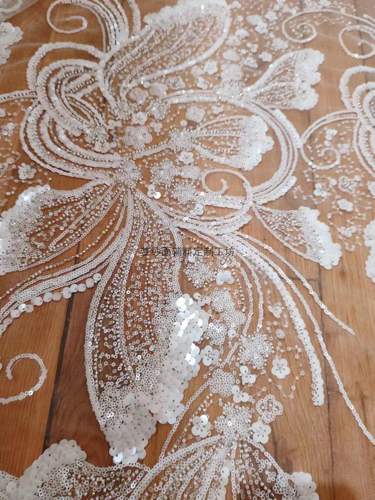 美人鱼尾花贴 瓷白片粉红蓝色香槟大贝壳 珠子亮片鱼尾裙婚纱蕾丝