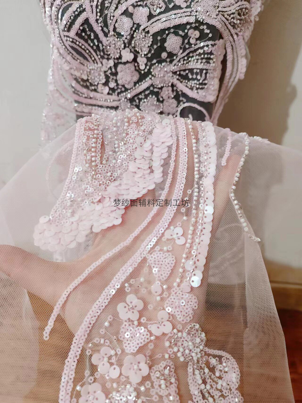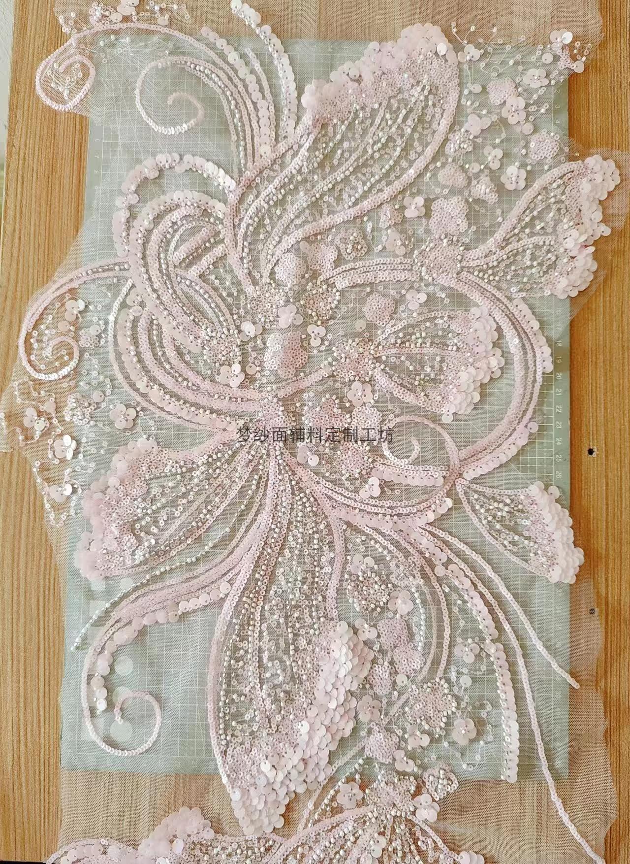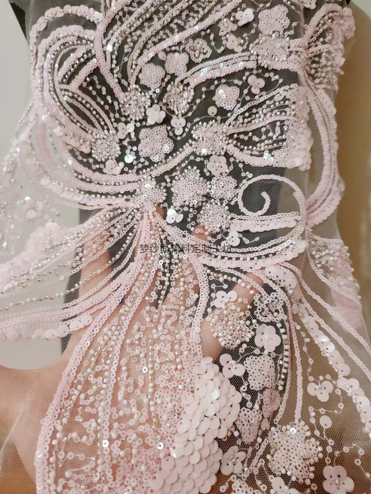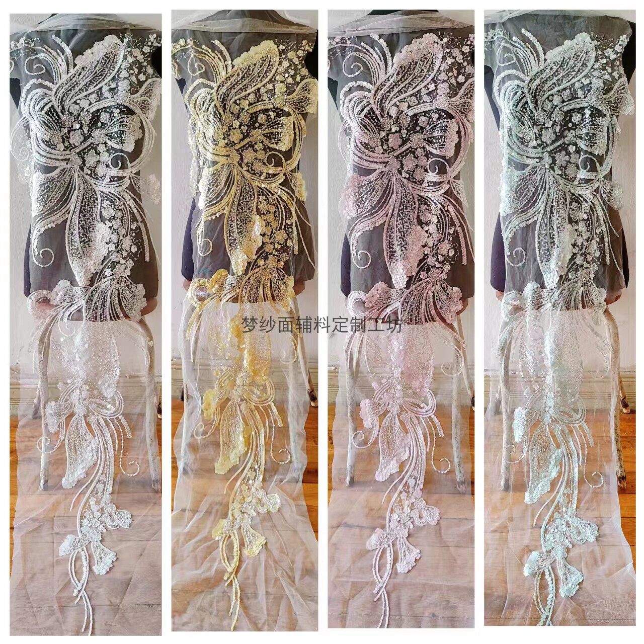 美人鱼尾花贴 瓷白片粉红蓝色香槟大贝壳 珠子亮片鱼尾裙婚纱蕾丝