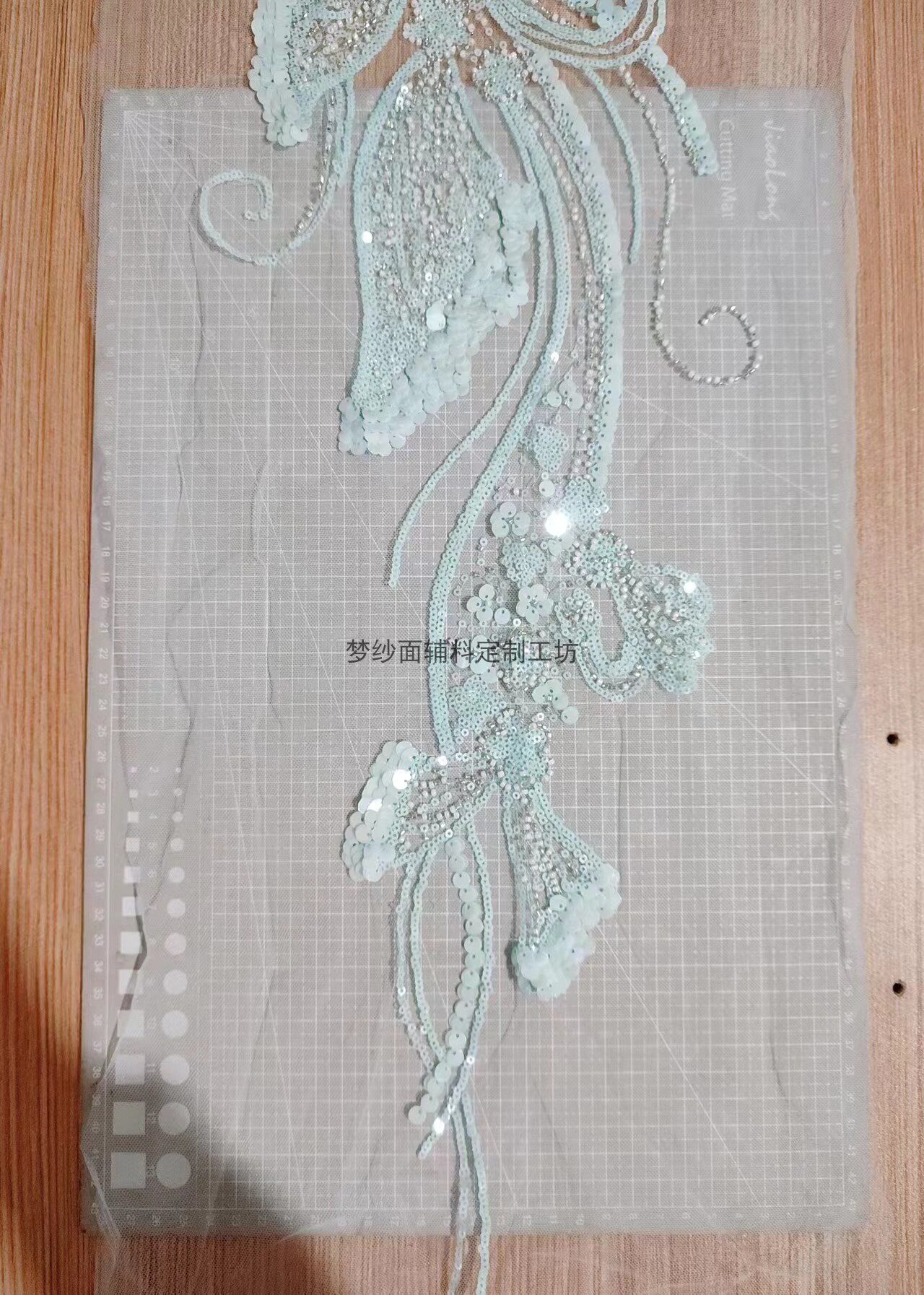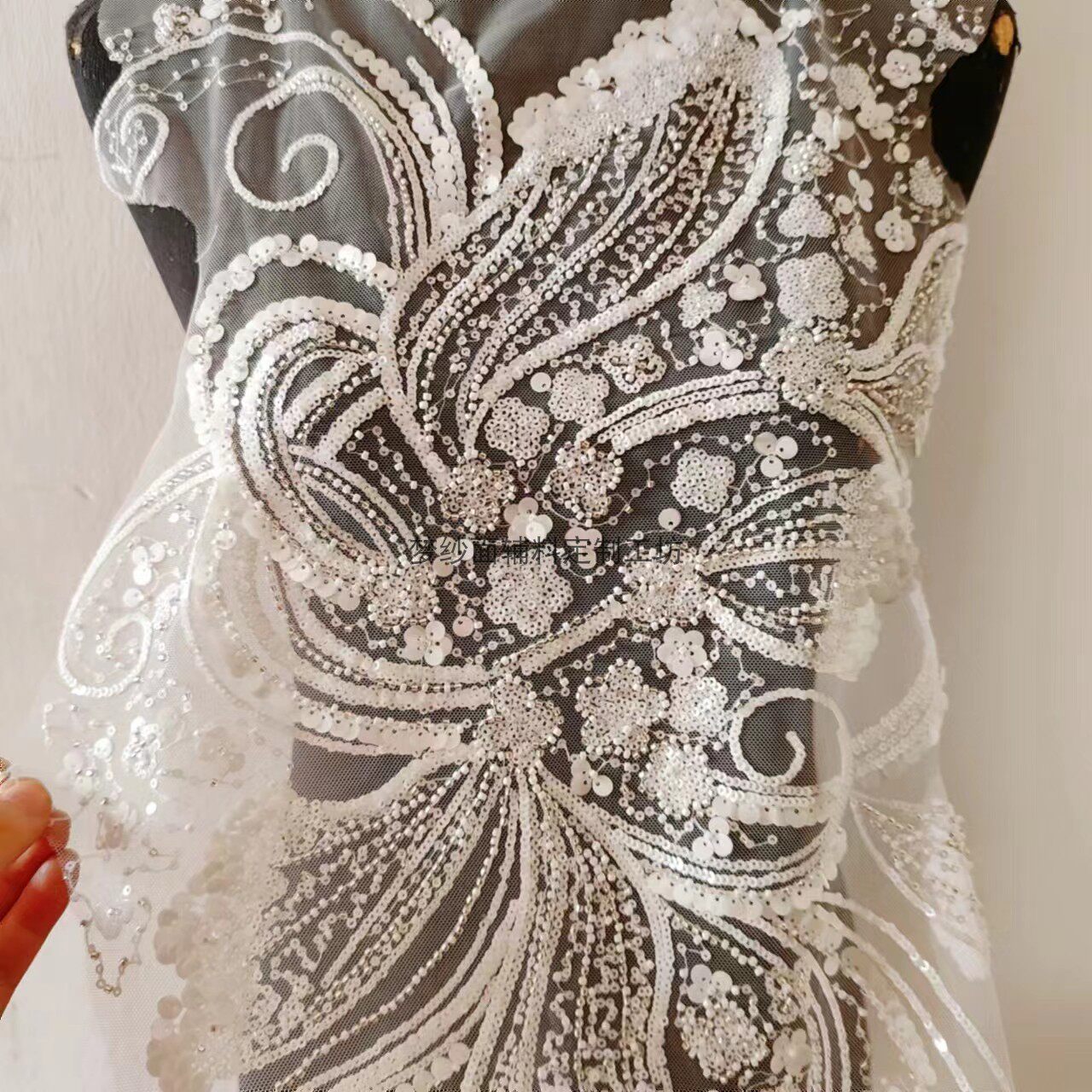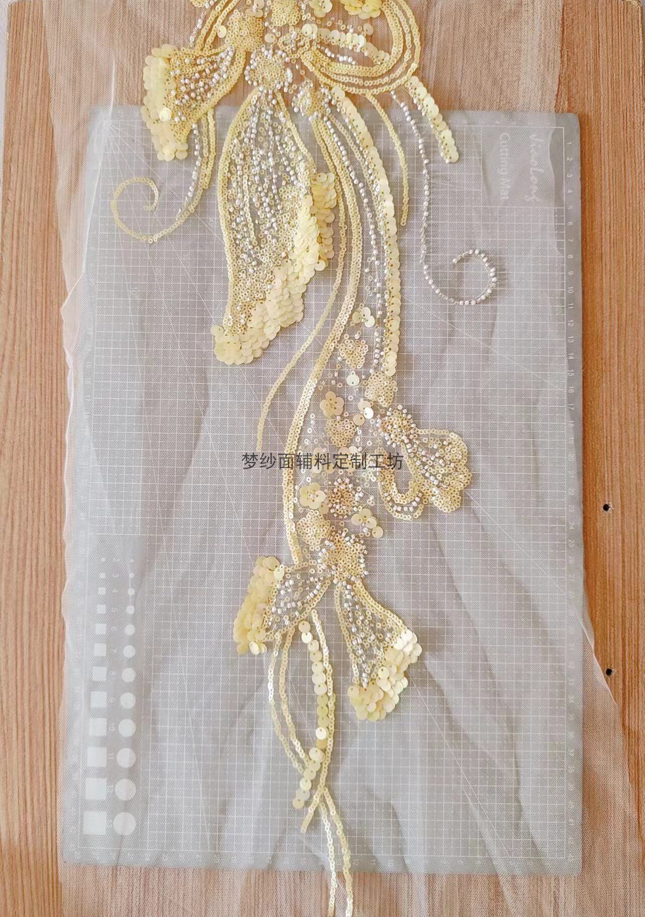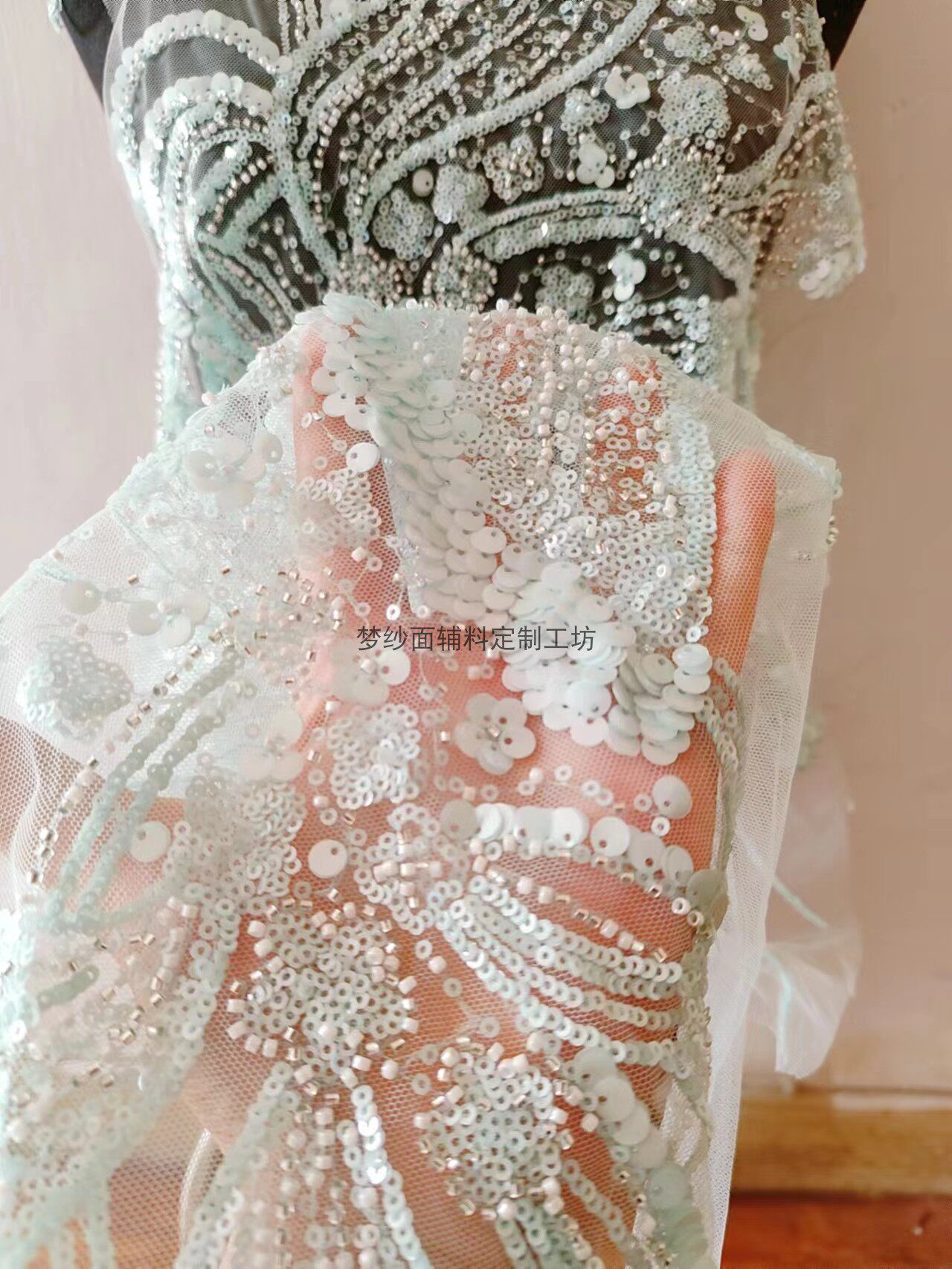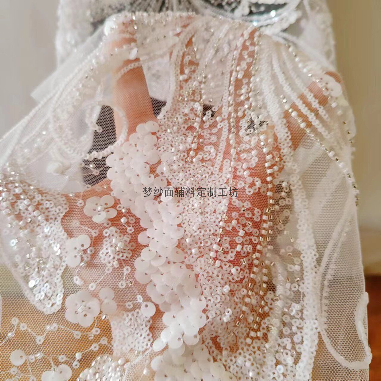 美人鱼尾花贴 瓷白片粉红蓝色香槟大贝壳 珠子亮片鱼尾裙婚纱蕾丝