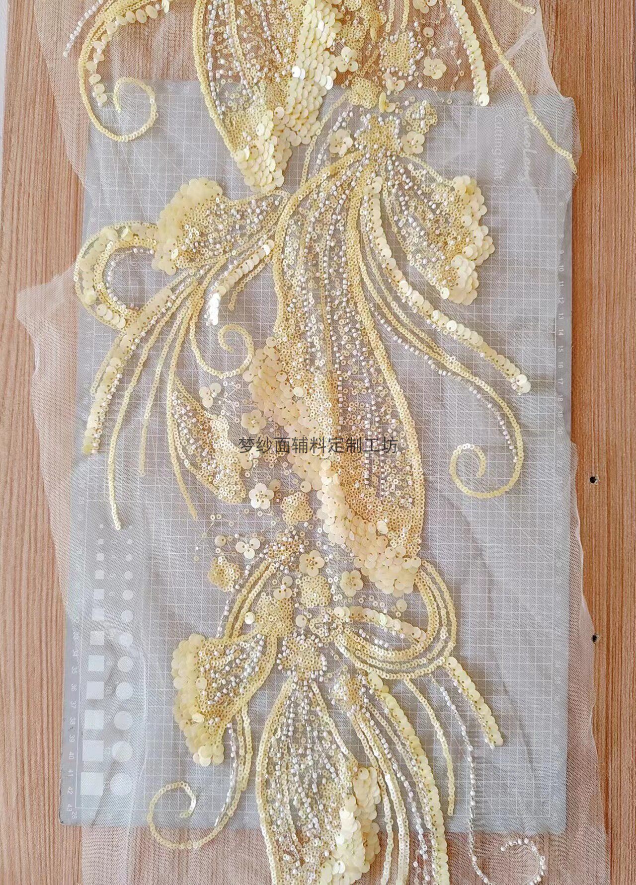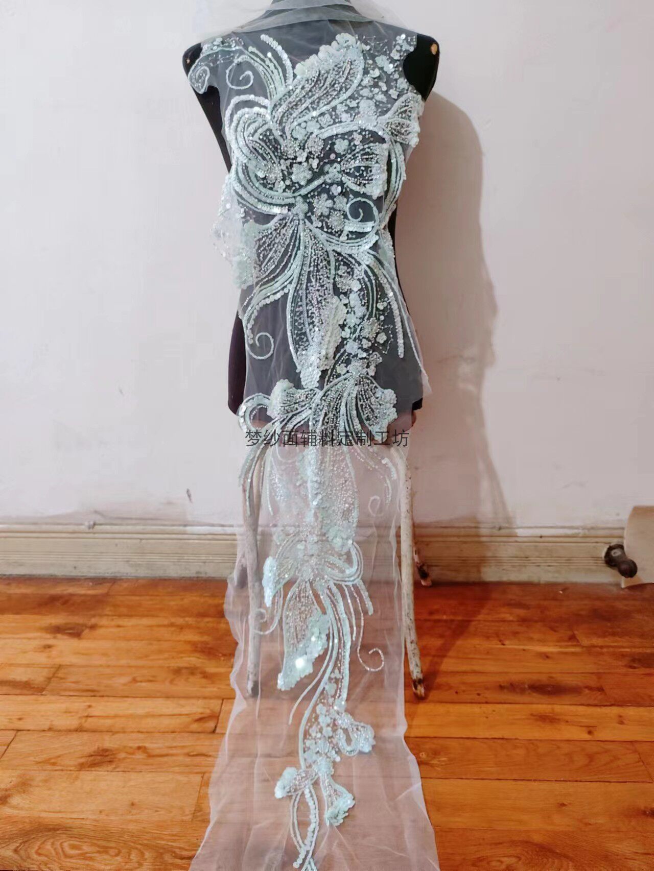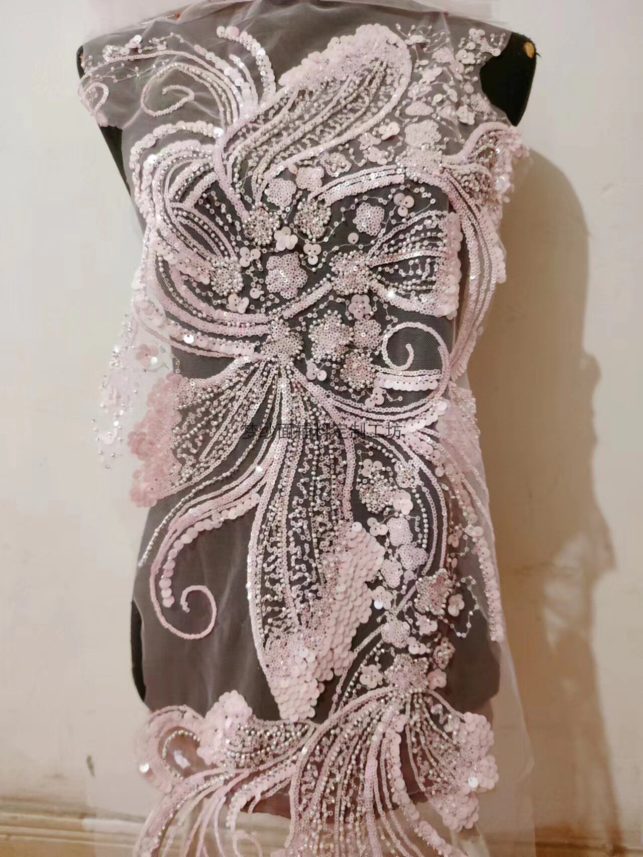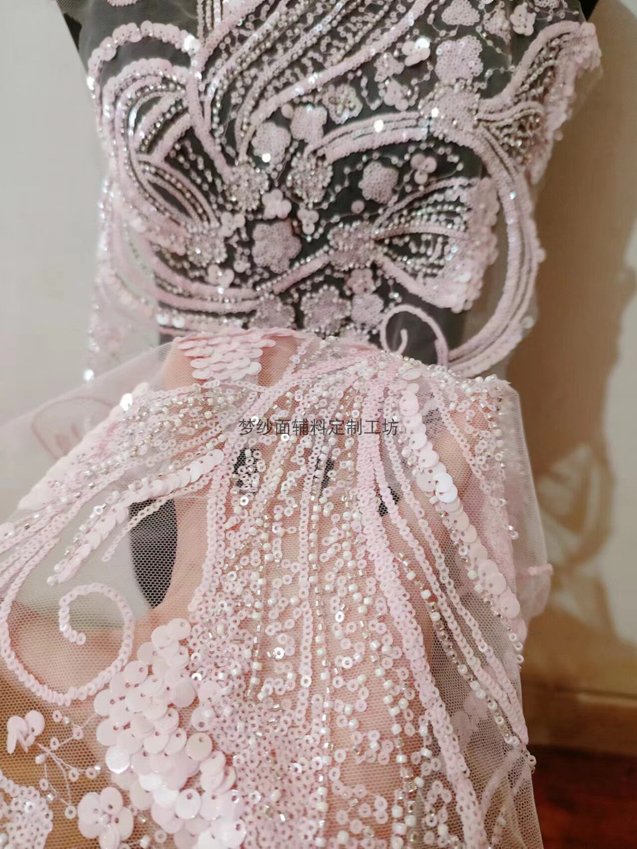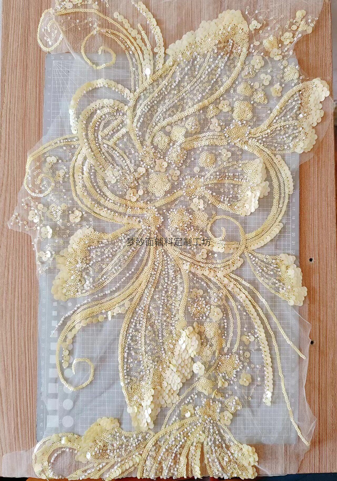 美人鱼尾花贴 瓷白片粉红蓝色香槟大贝壳 珠子亮片鱼尾裙婚纱蕾丝