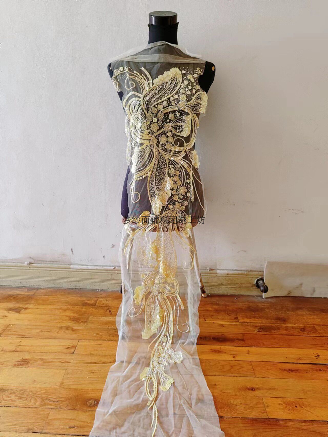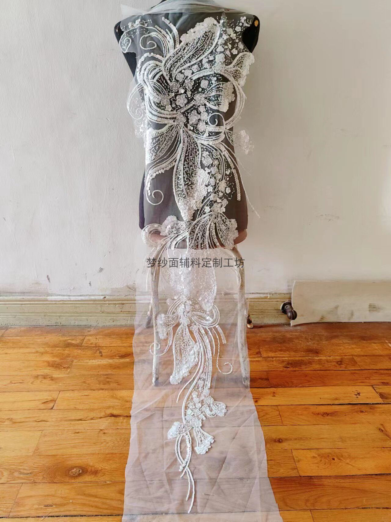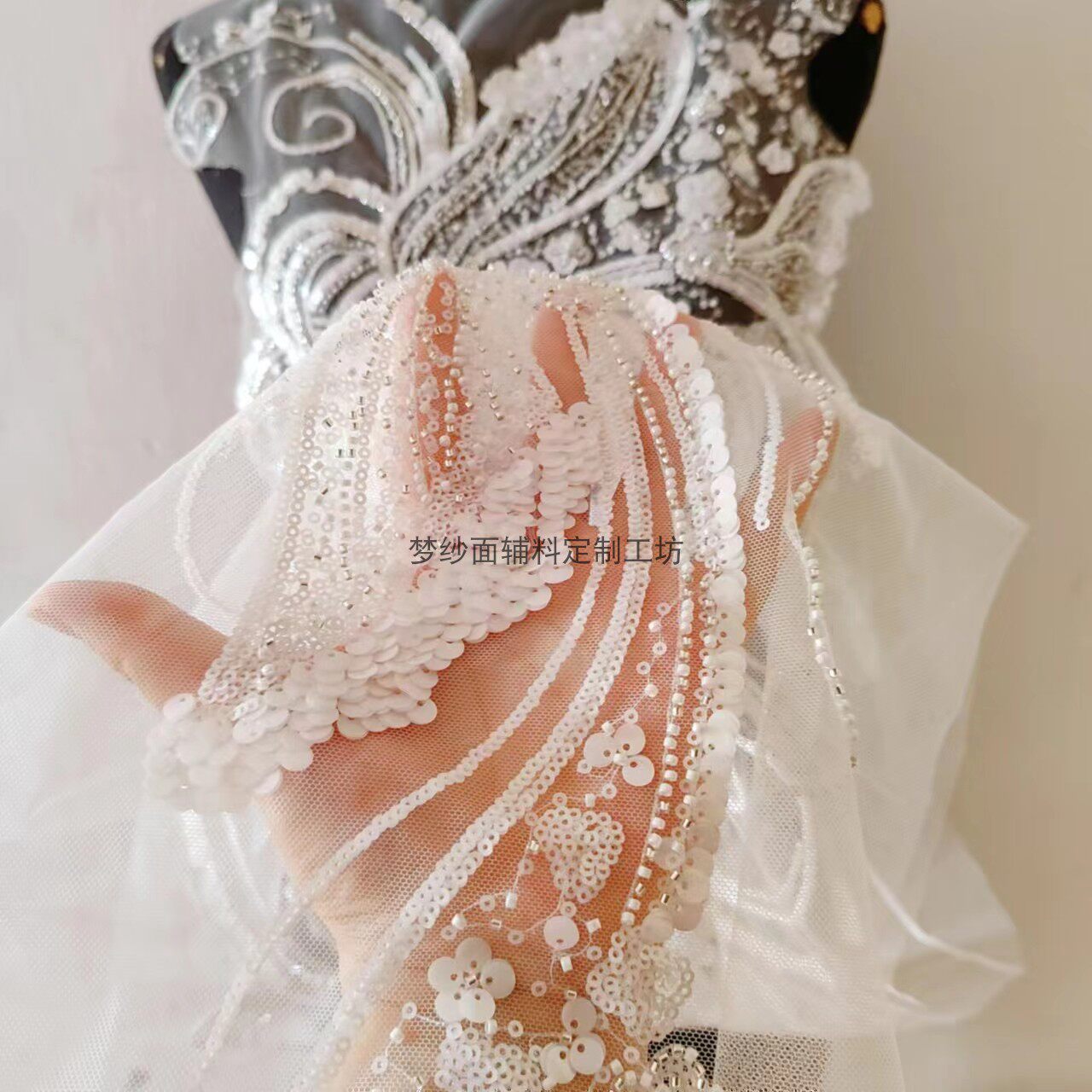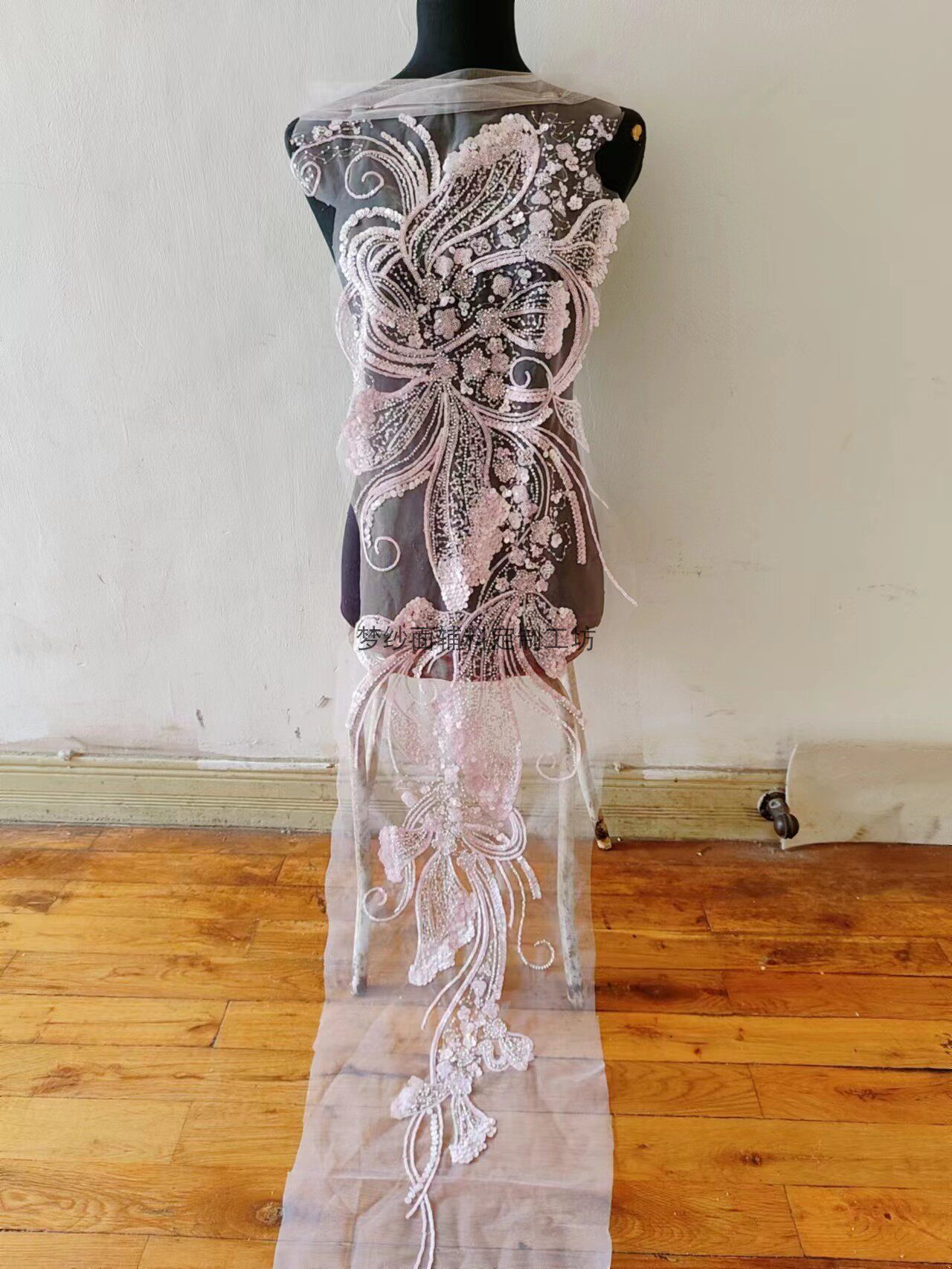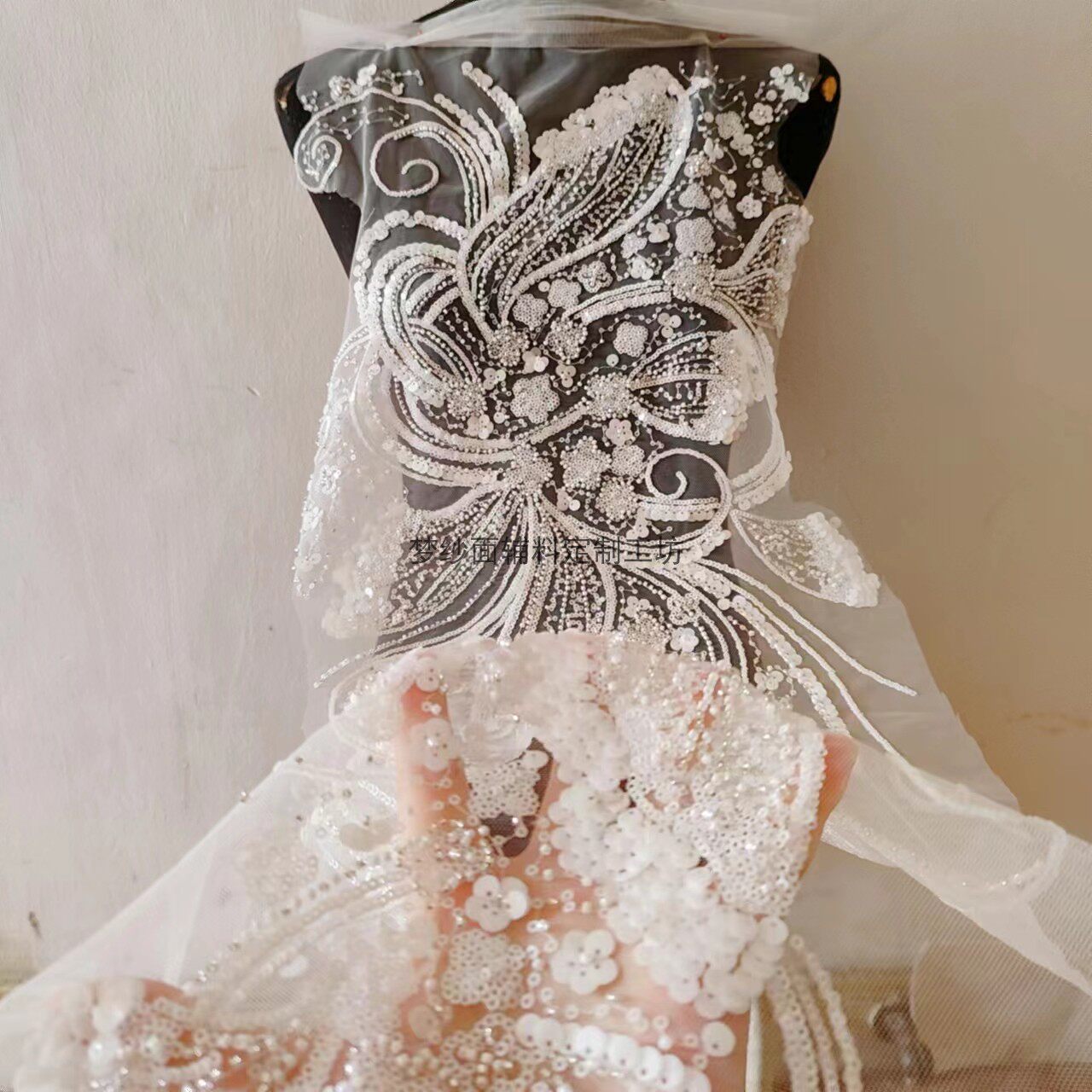 美人鱼尾花贴 瓷白片粉红蓝色香槟大贝壳 珠子亮片鱼尾裙婚纱蕾丝
