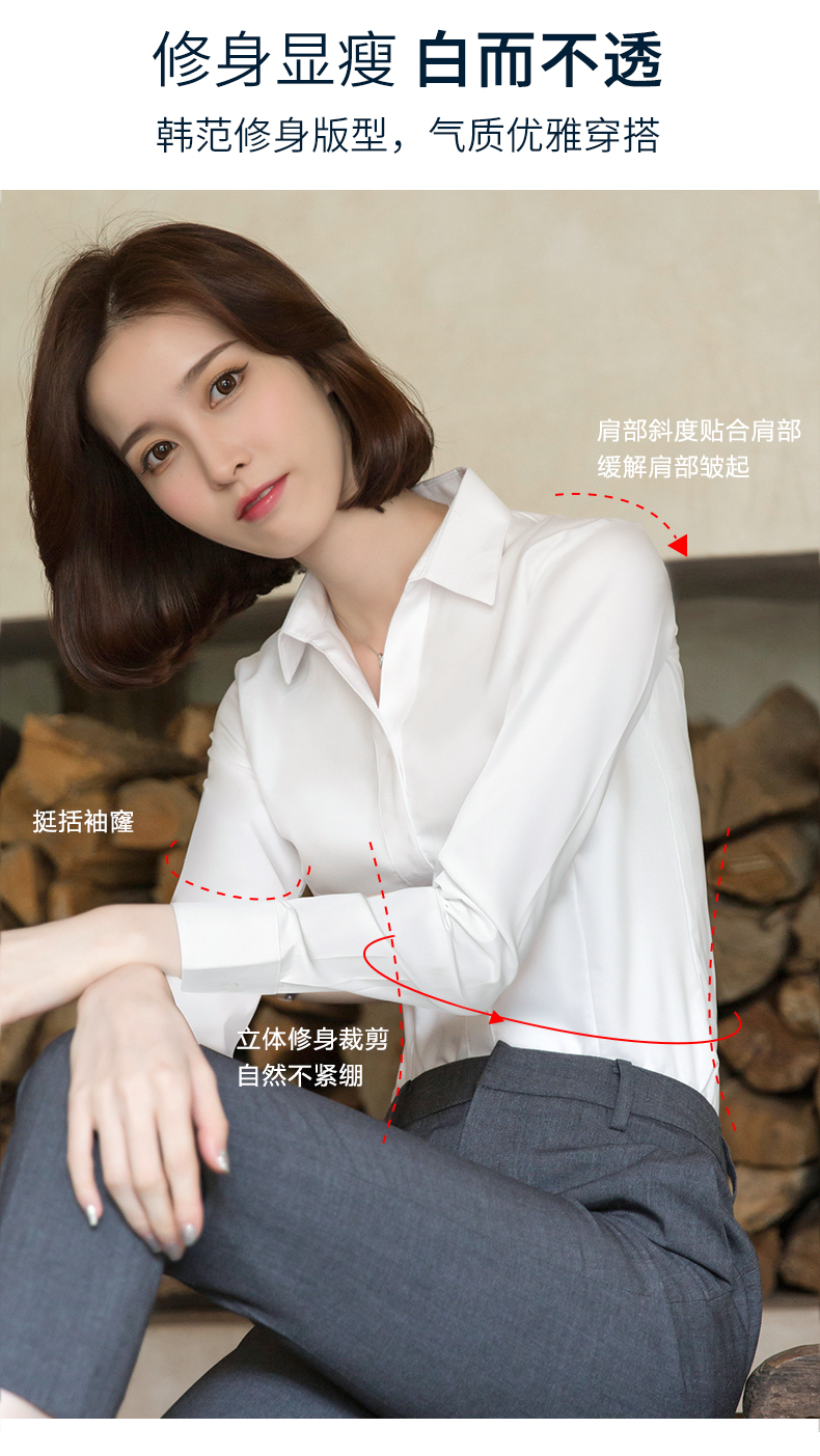 白衬衫女长袖职业工作服上衣公务员面试新款高级工装女士白色衬衣