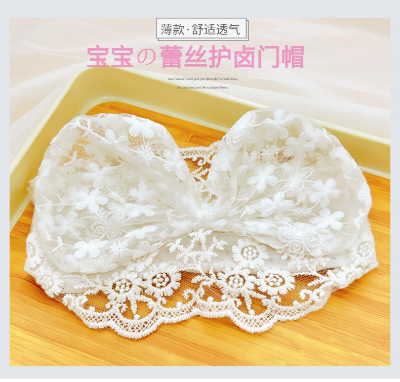 婴儿囟门帽子夏季薄款女宝宝护卤门发带新生儿夏天女婴蕾丝护头帽