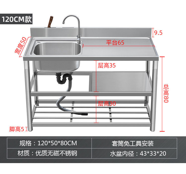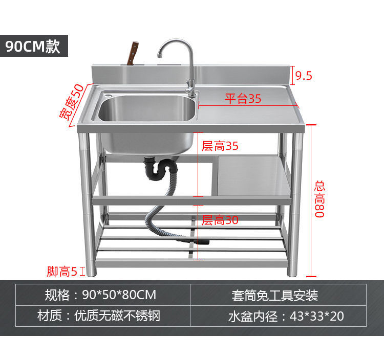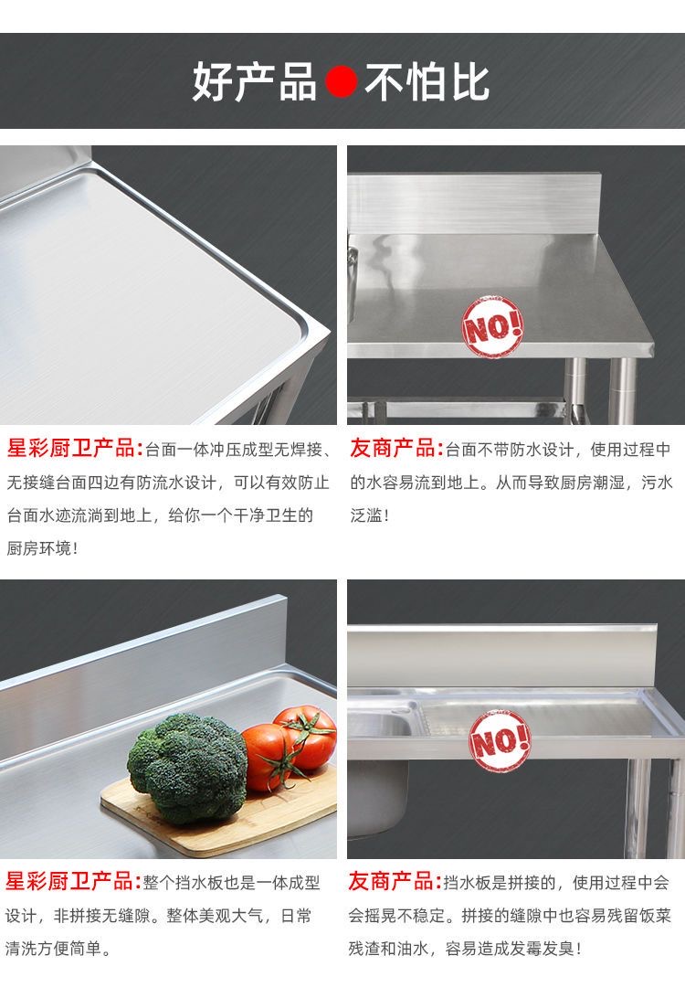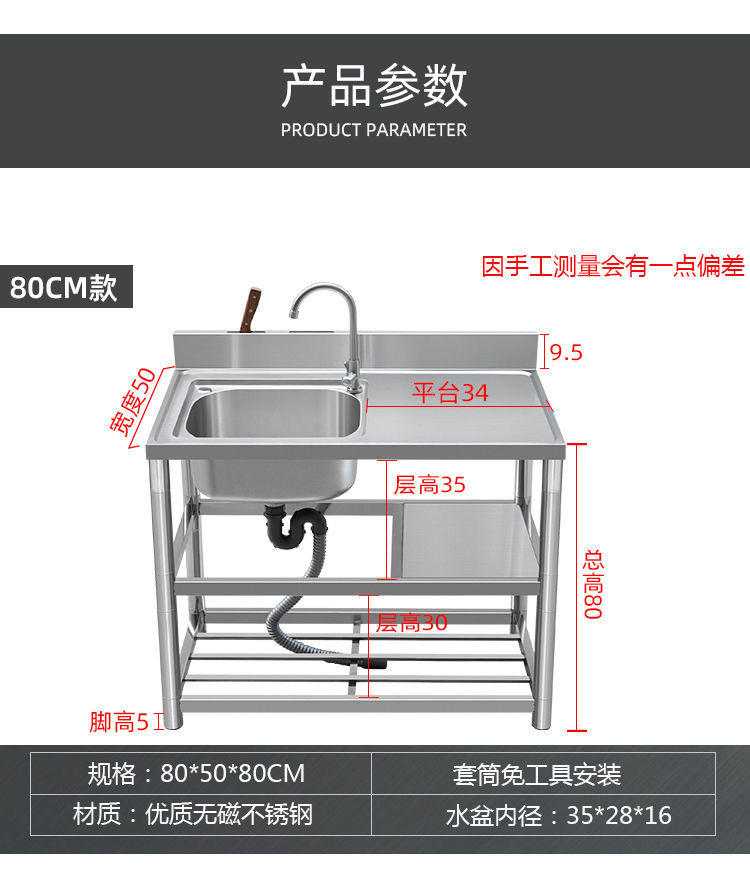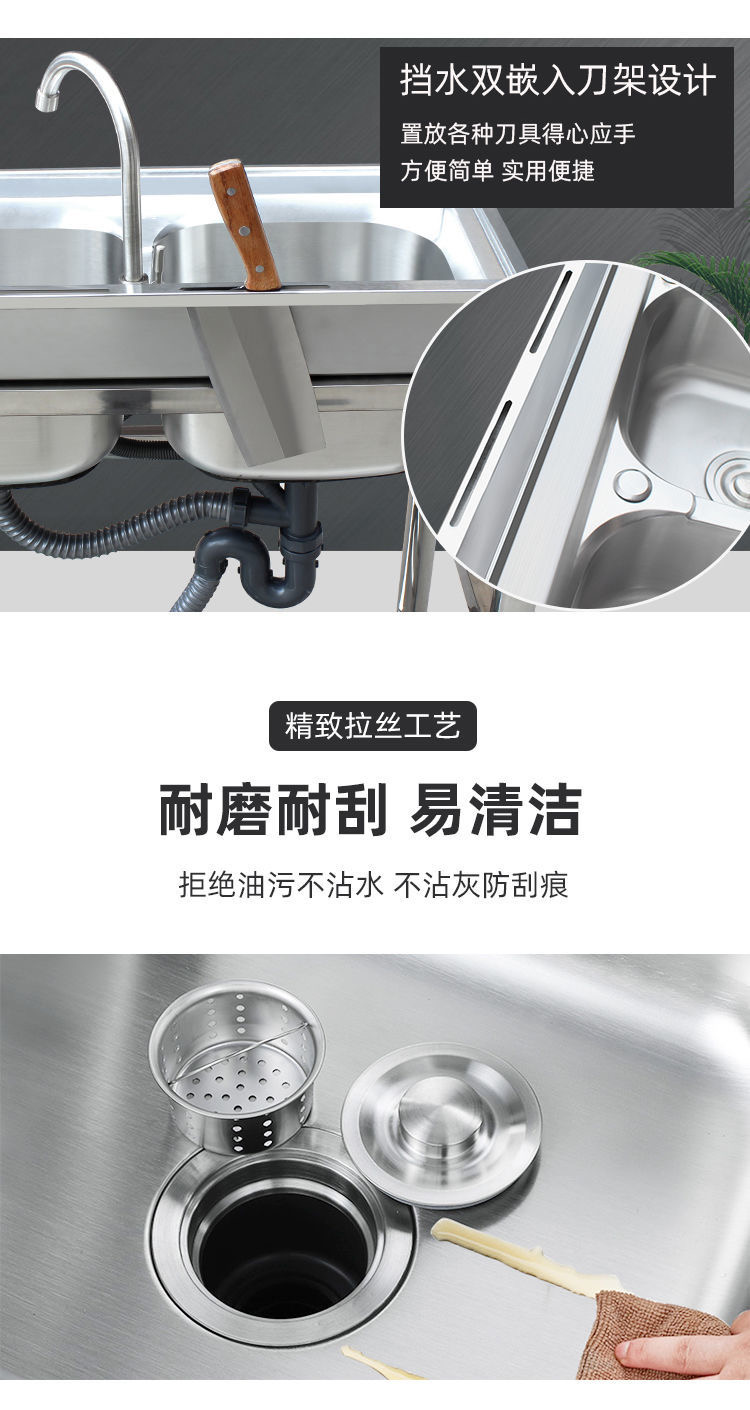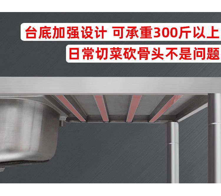 304加厚不锈钢水槽厨房台面一体柜带支架家用洗手盆洗菜洗碗水池