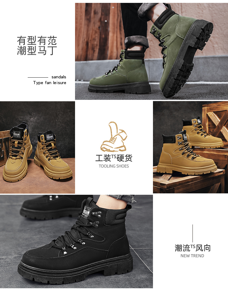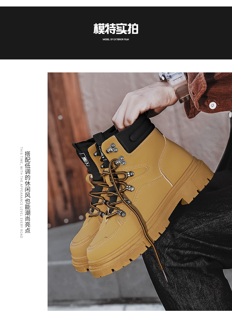 劳保男鞋夏季户外登山防滑耐磨上班工作运动厚底增高黑色马丁靴子