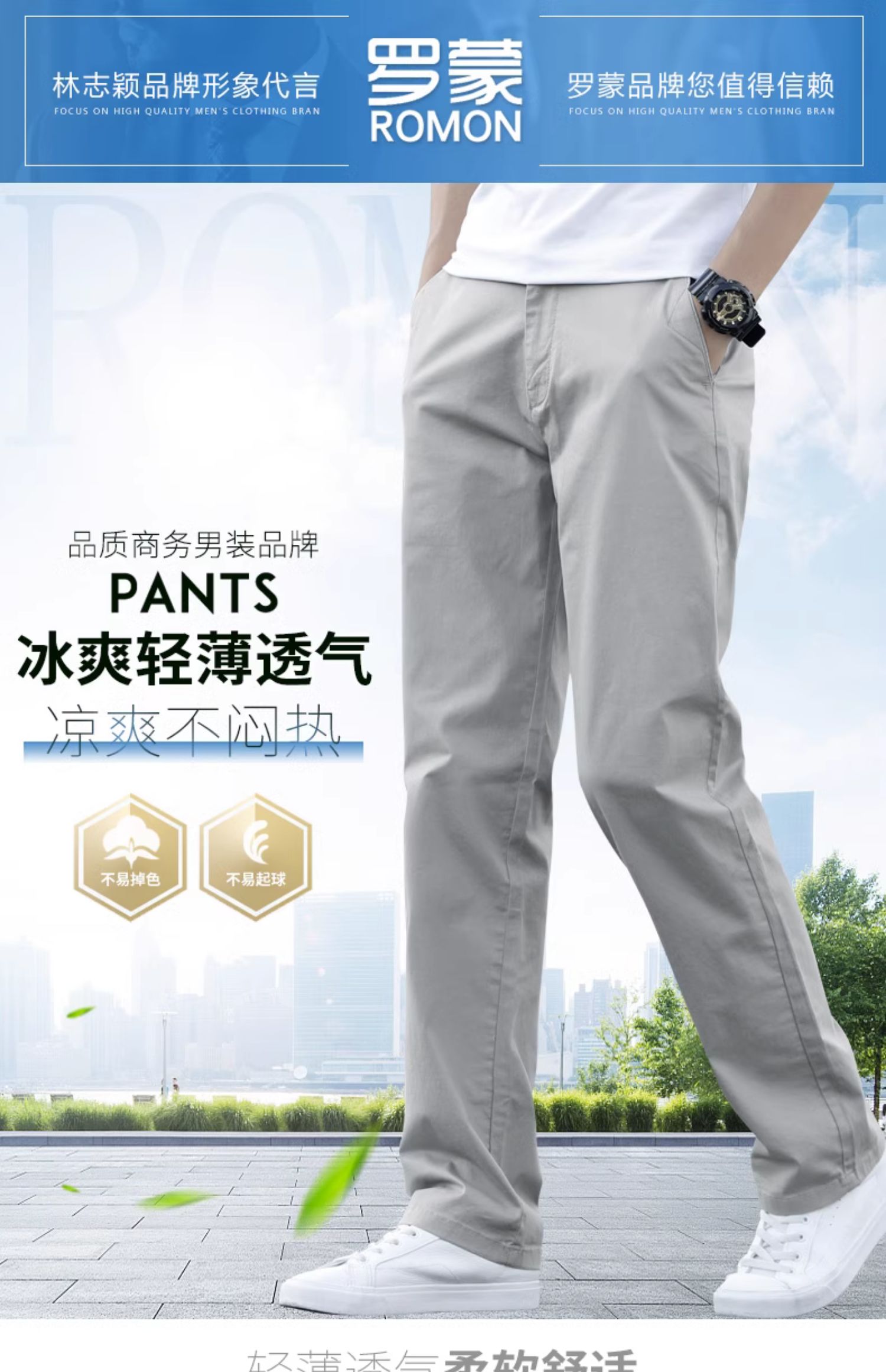 罗蒙休闲裤男士夏季薄款2025新款直筒宽松长裤商务西裤纯棉男裤子