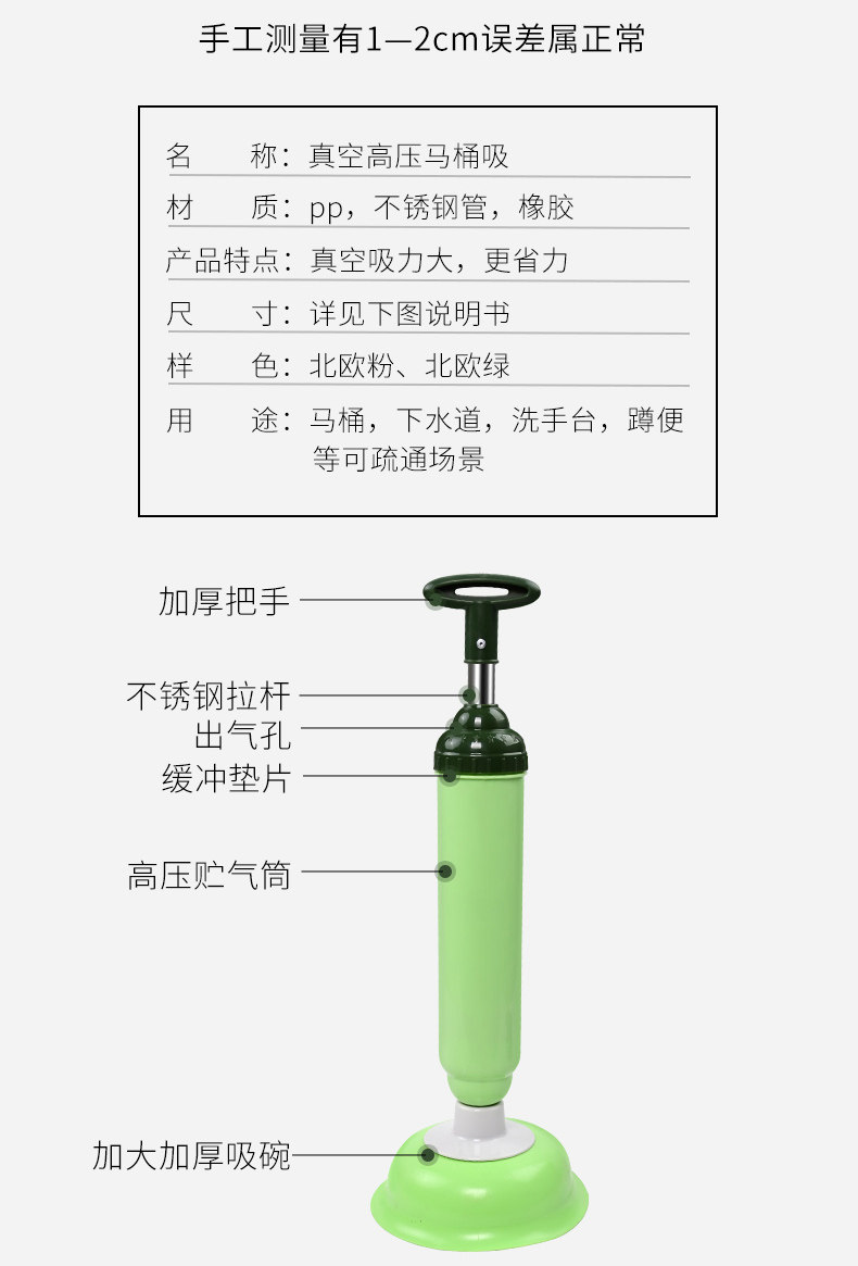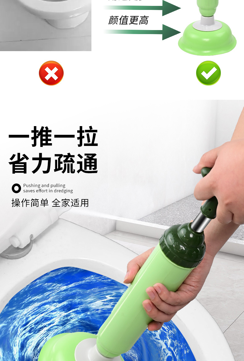 马桶疏通器厕所卫生间堵塞神器通用型皮搋子真空高压强力吸工具