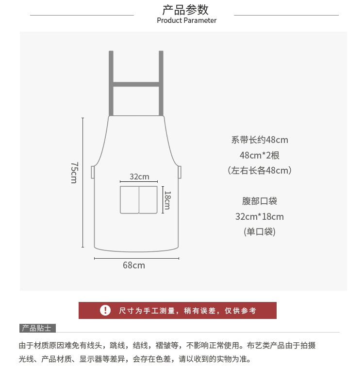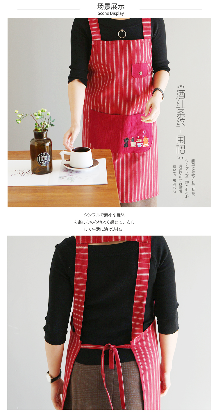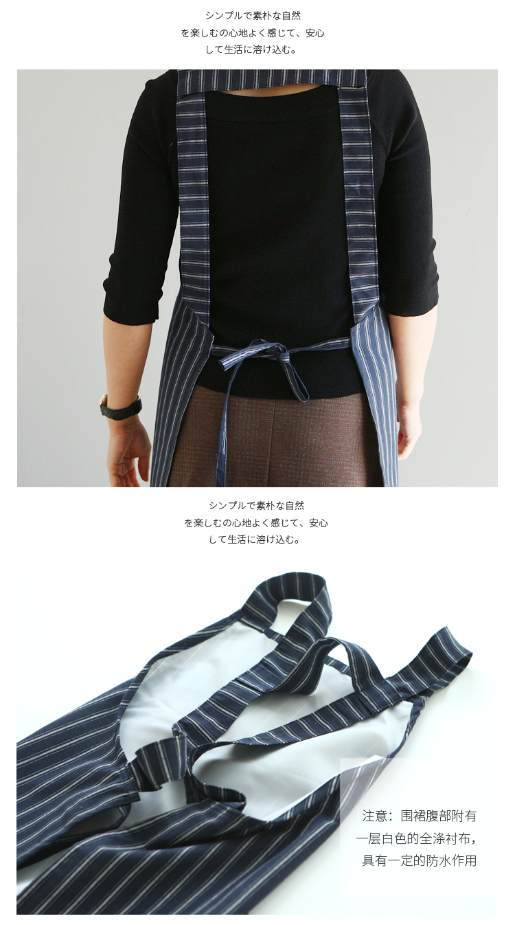 8623简约麻棉条纹双层防水厨房背带围裙男女工作服反穿衣罩衣围腰