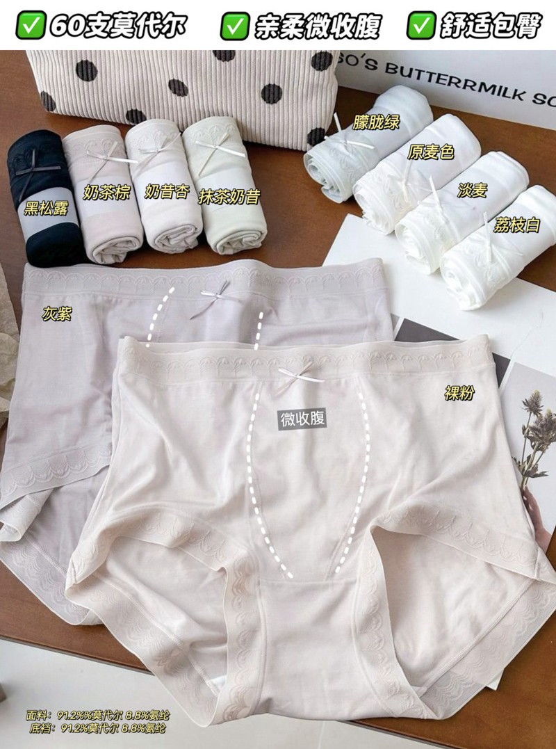 60S莫代尔高腰轻收腹内裤女软糯高弹打底短裤透气简约包臀夏薄款