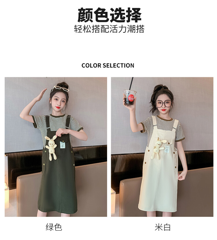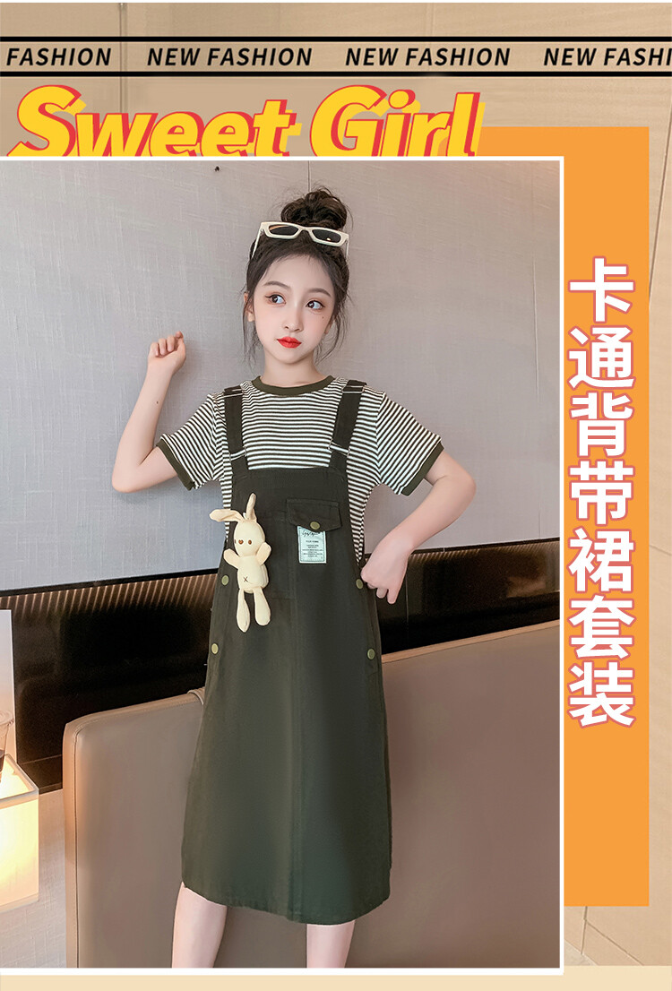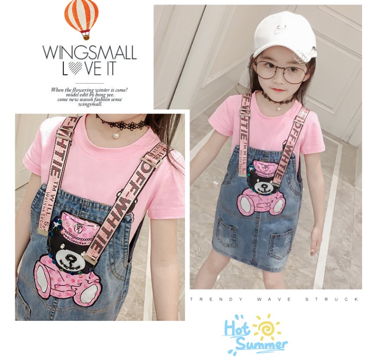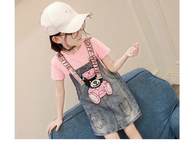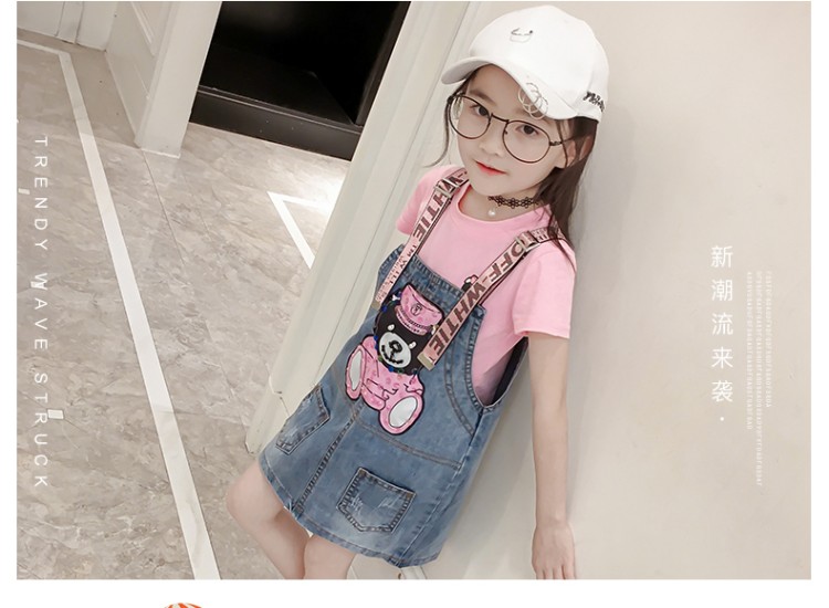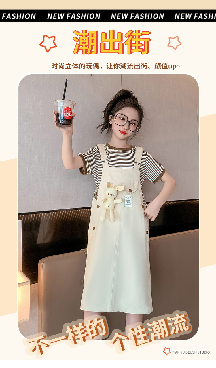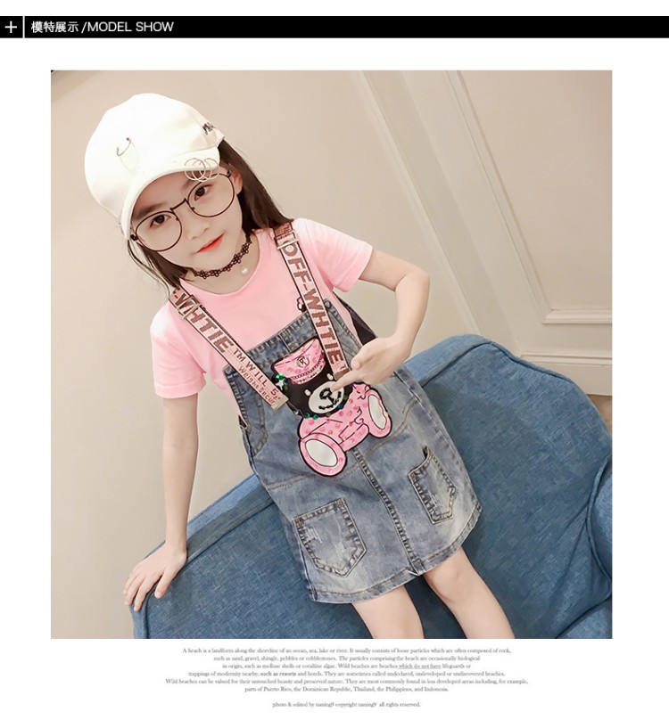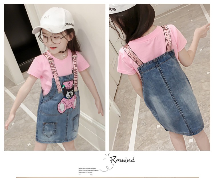 夏装女童牛仔背带裙套装洋气儿童公主裙子中大童装夏季时髦连衣裙