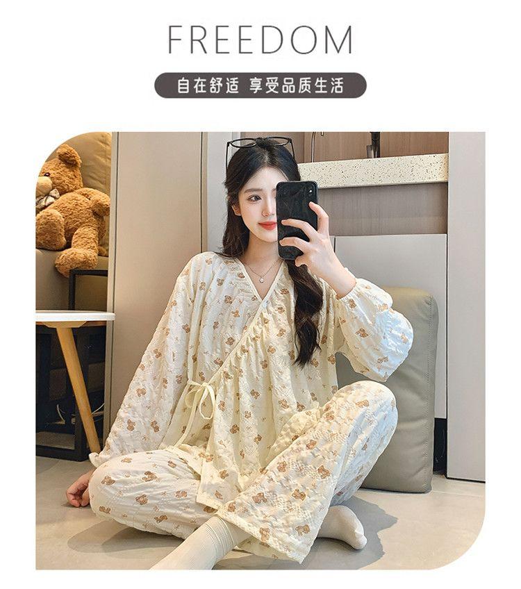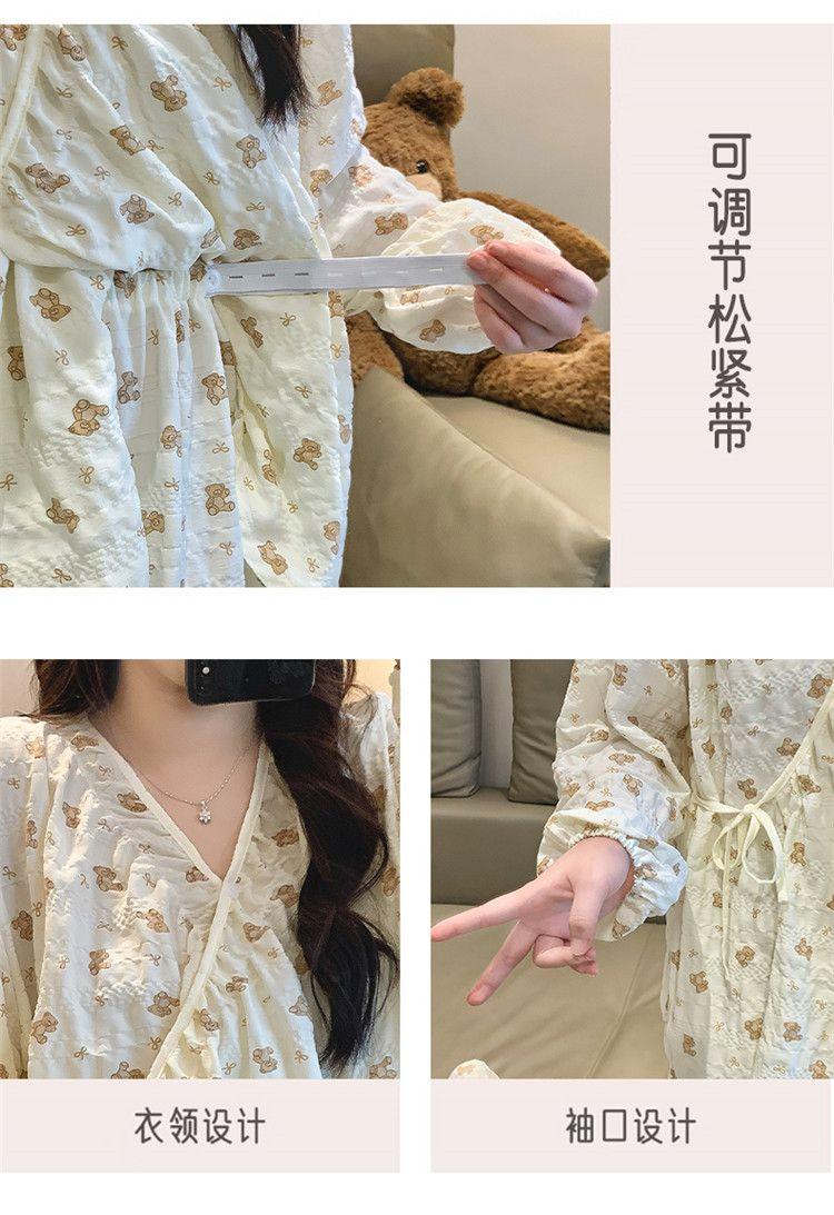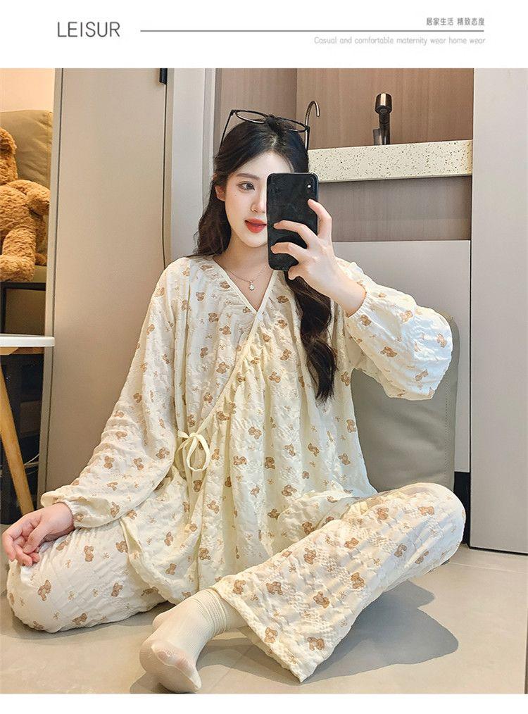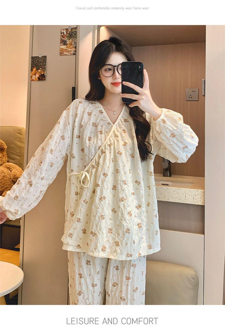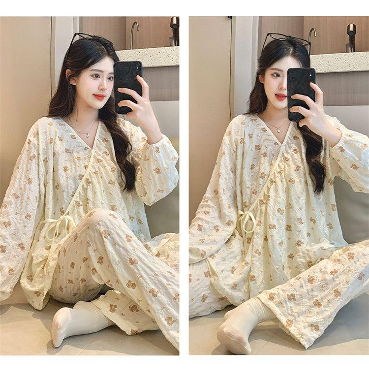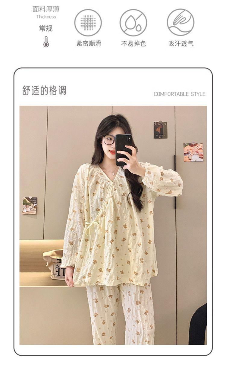 皱皱棉月子服春夏季产后大码薄款孕妇哺乳期睡衣待产和服套装