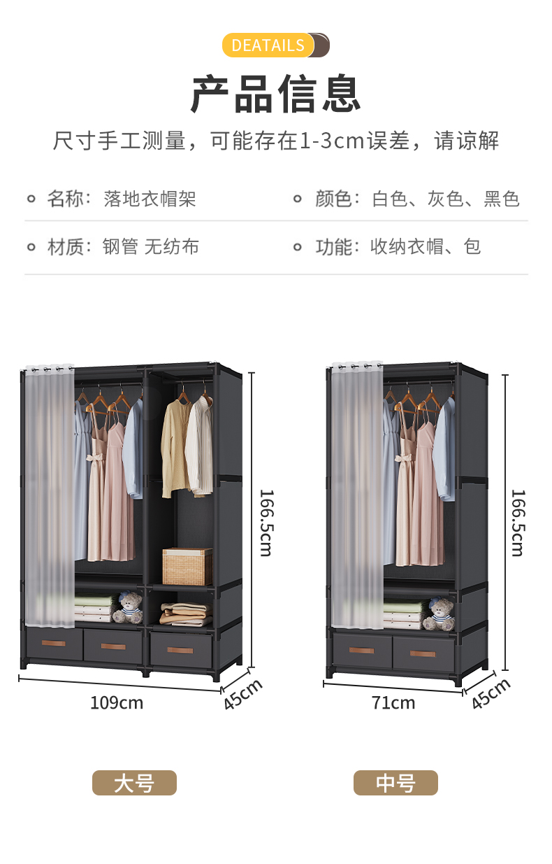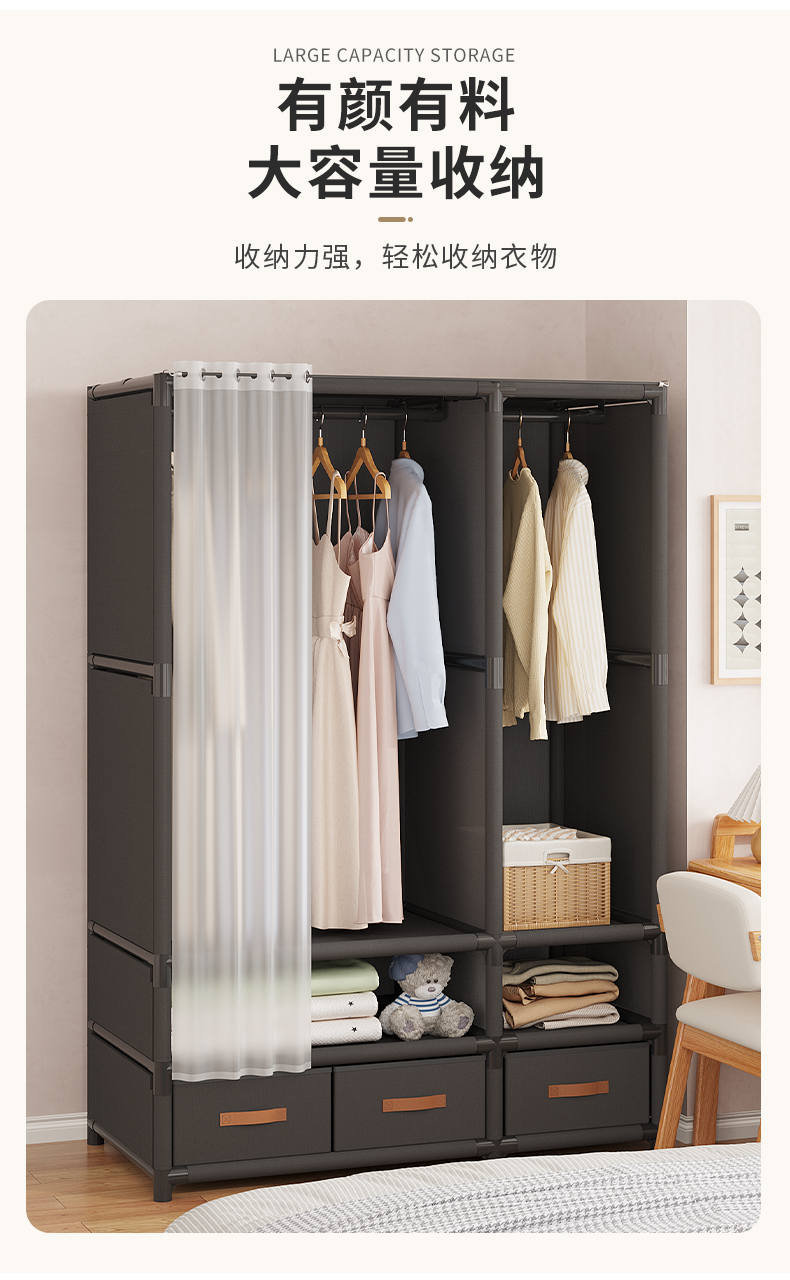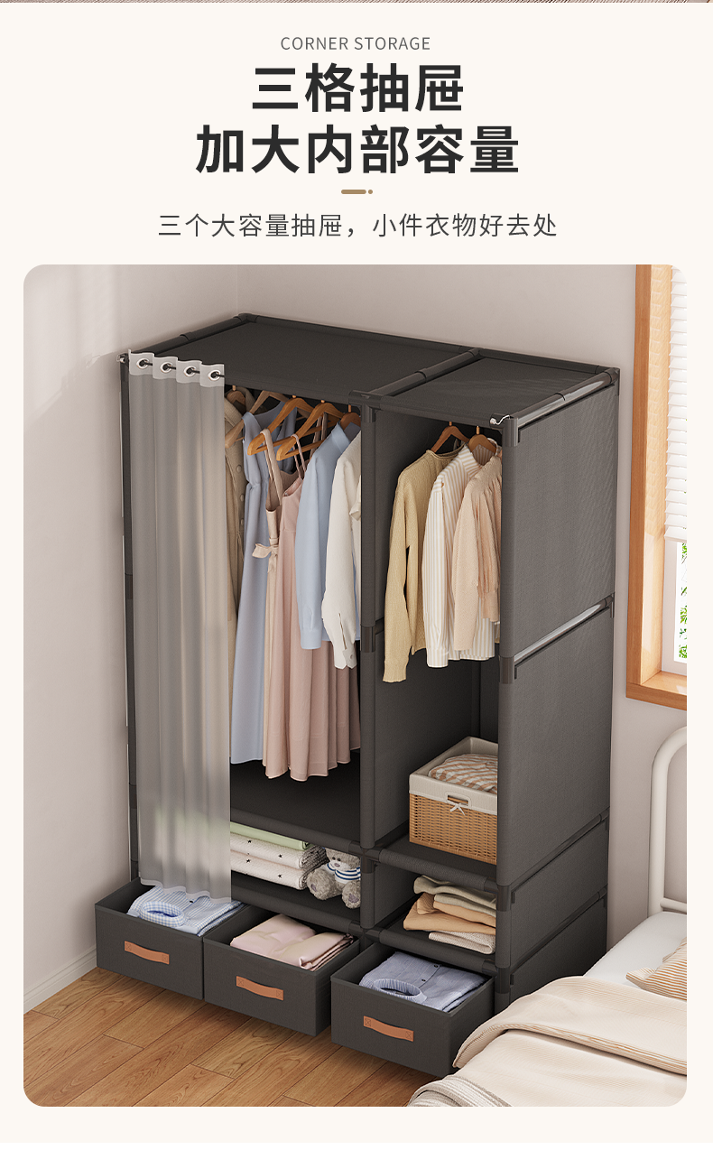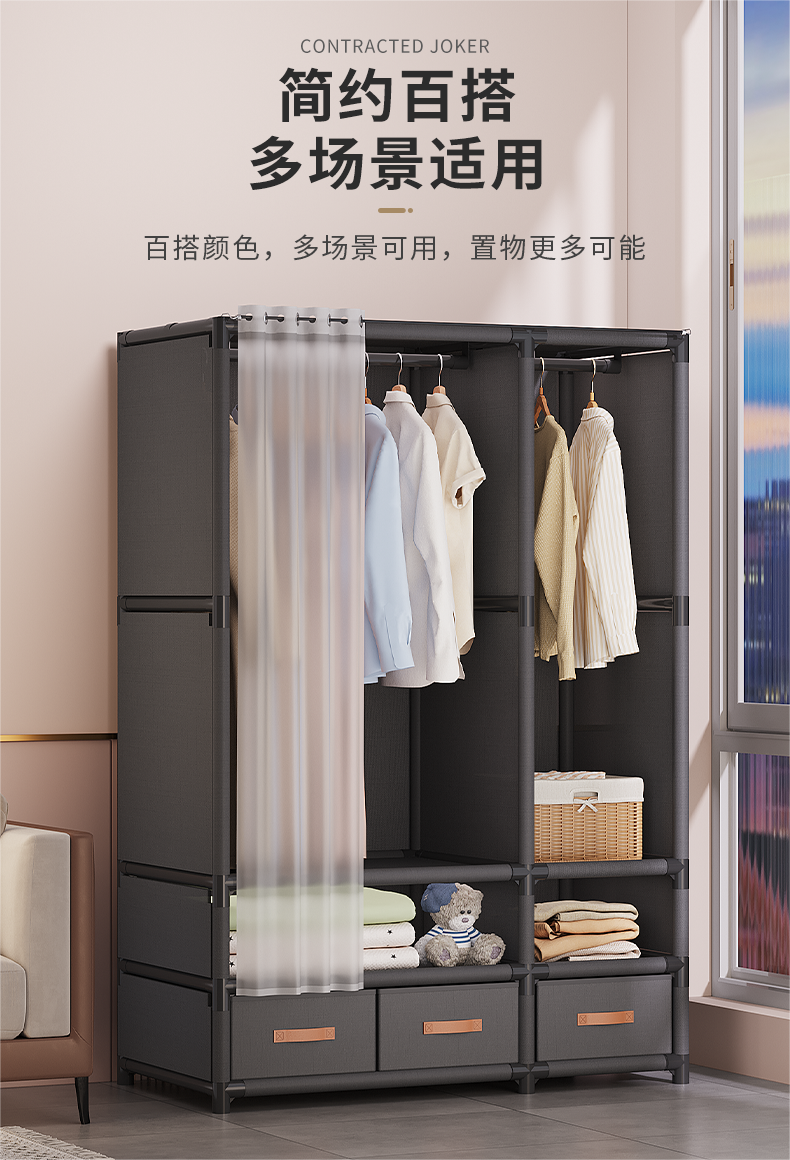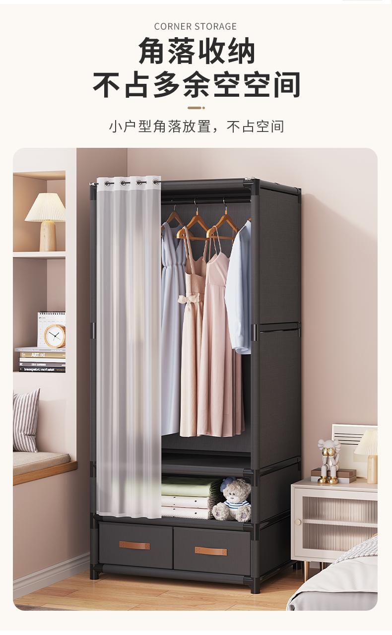 衣柜家用卧室出租房屋简易布衣柜结实耐用防尘收纳储物衣橱整理架