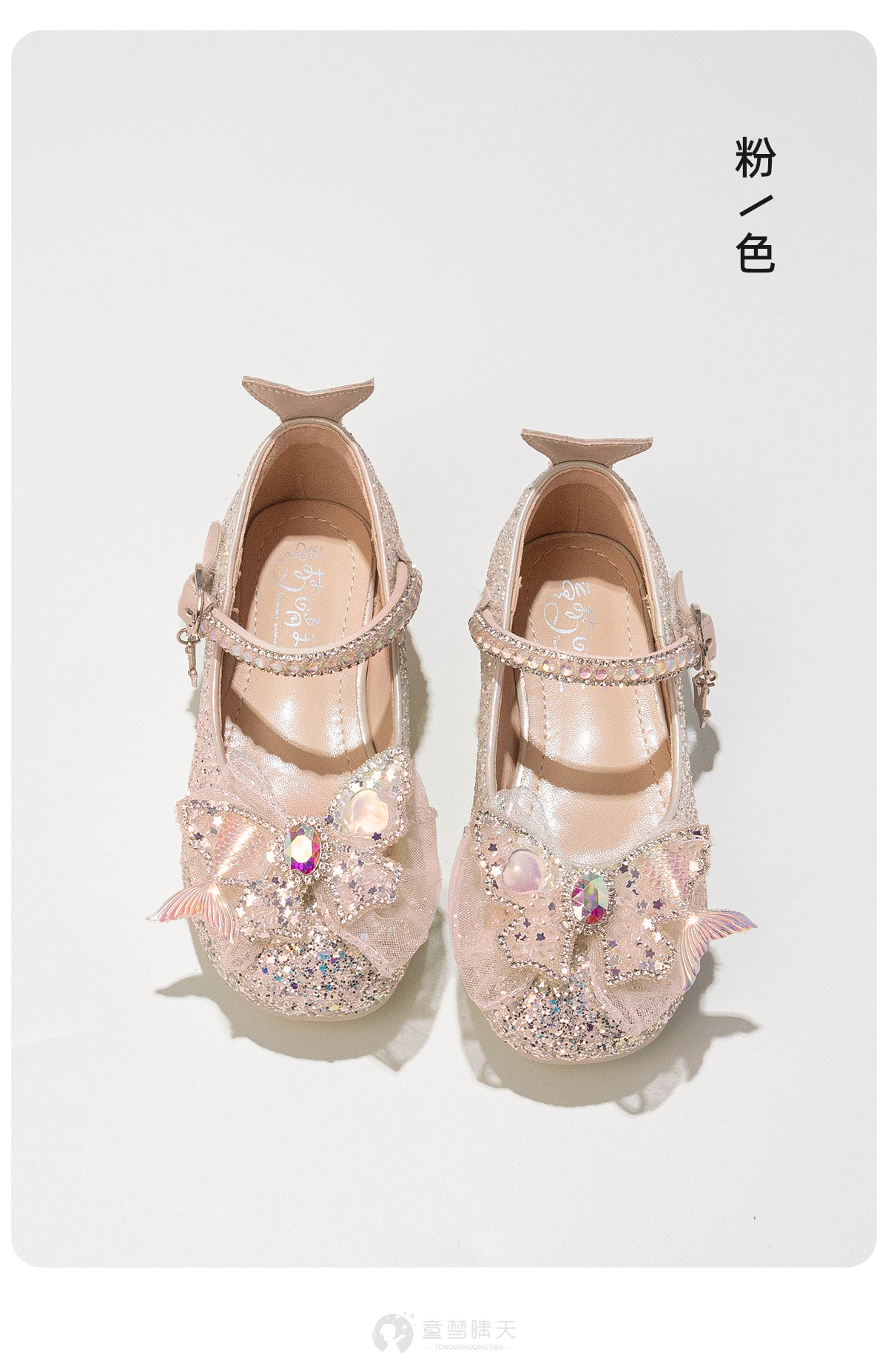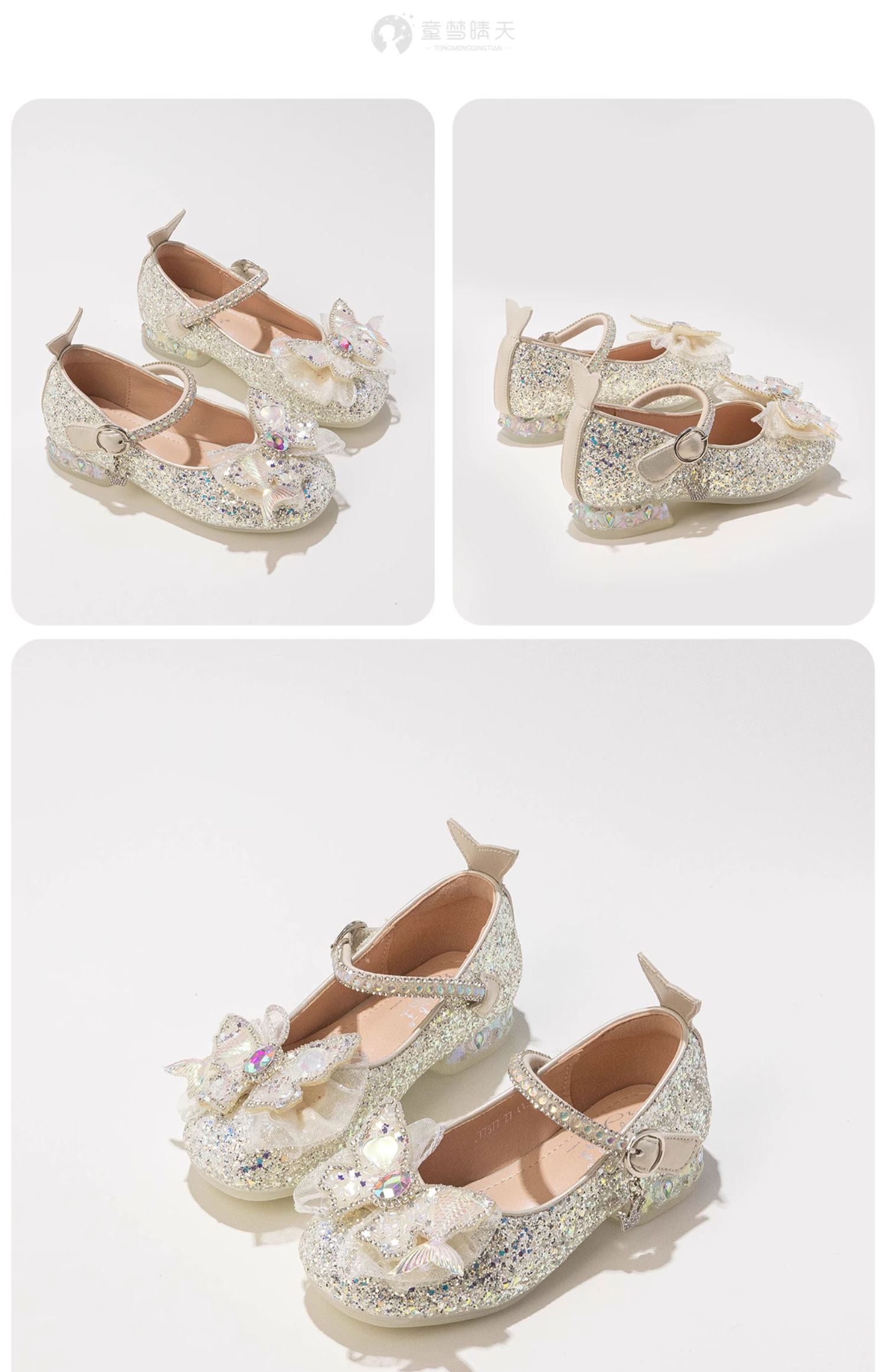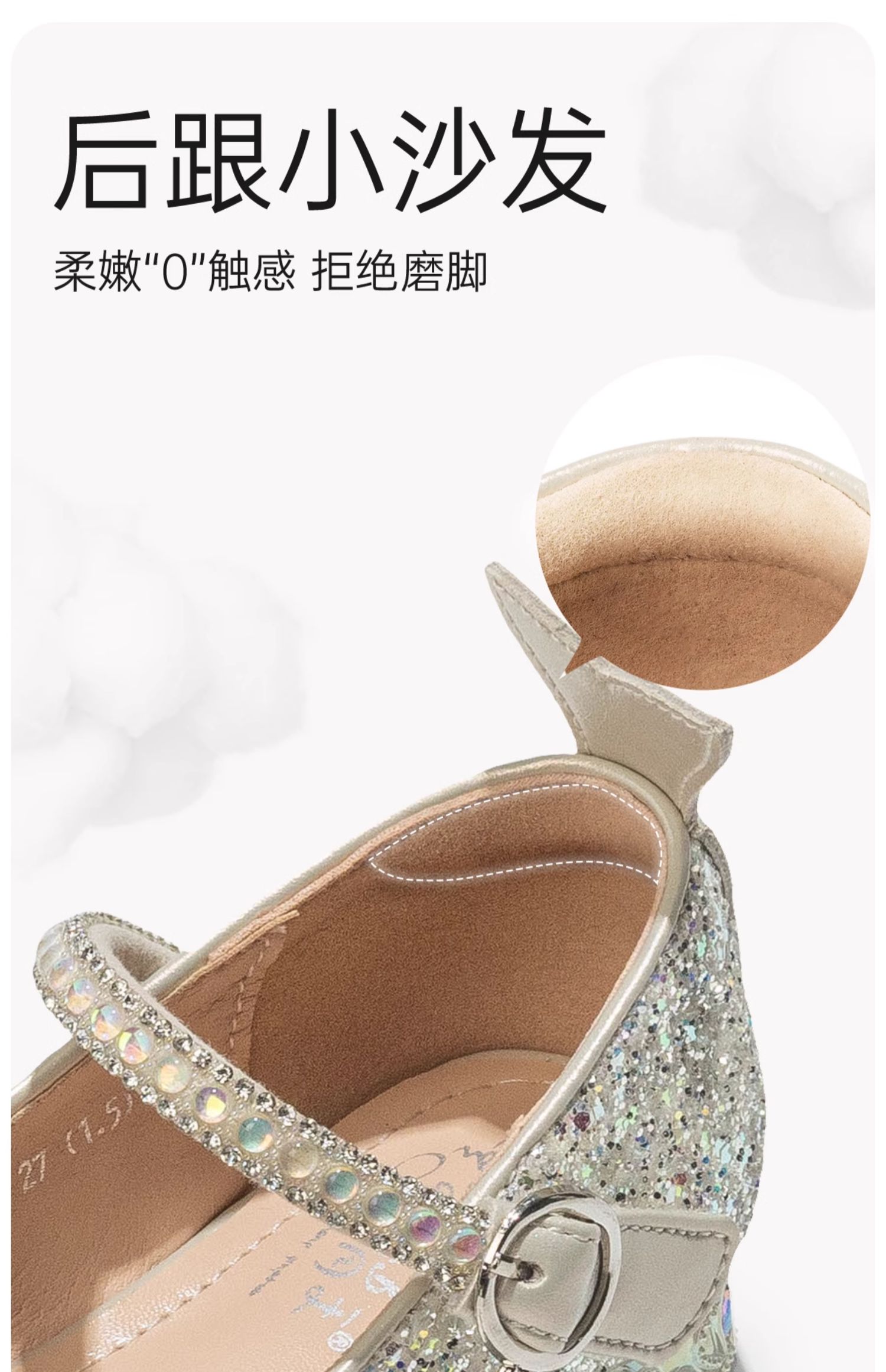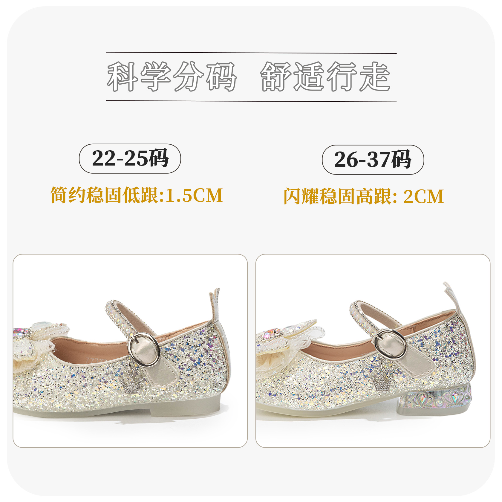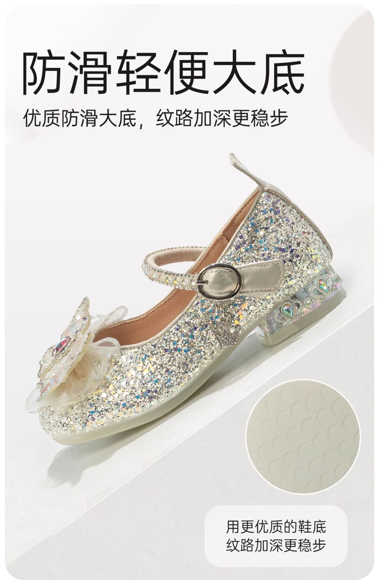 女童公主鞋2025新款春秋软底真皮水晶鞋儿童高跟鞋配礼服女孩单鞋