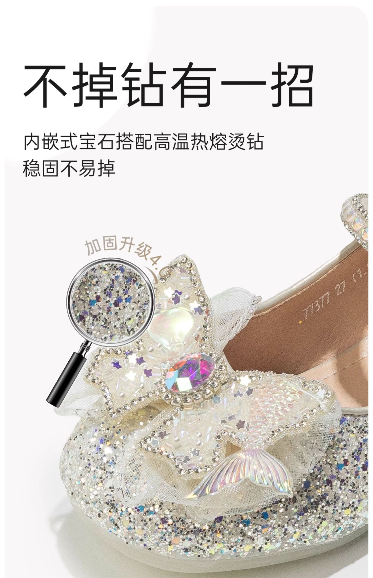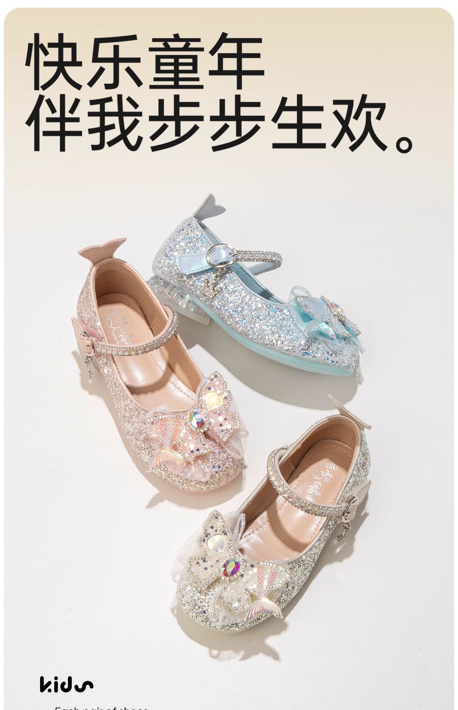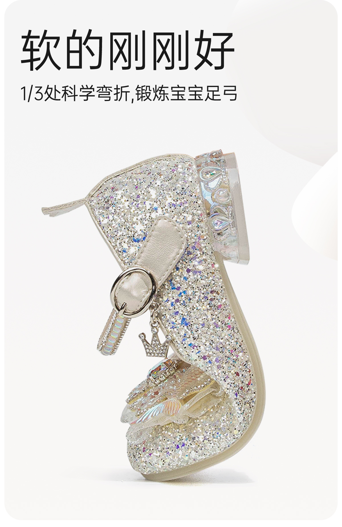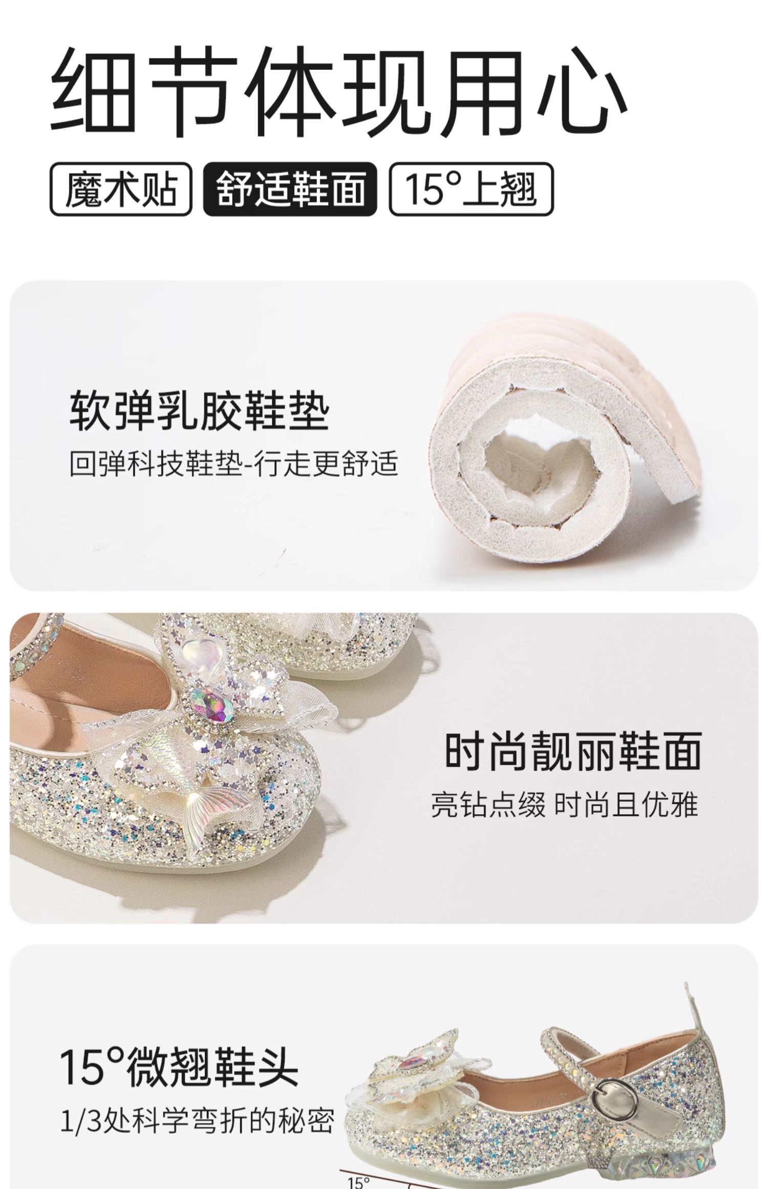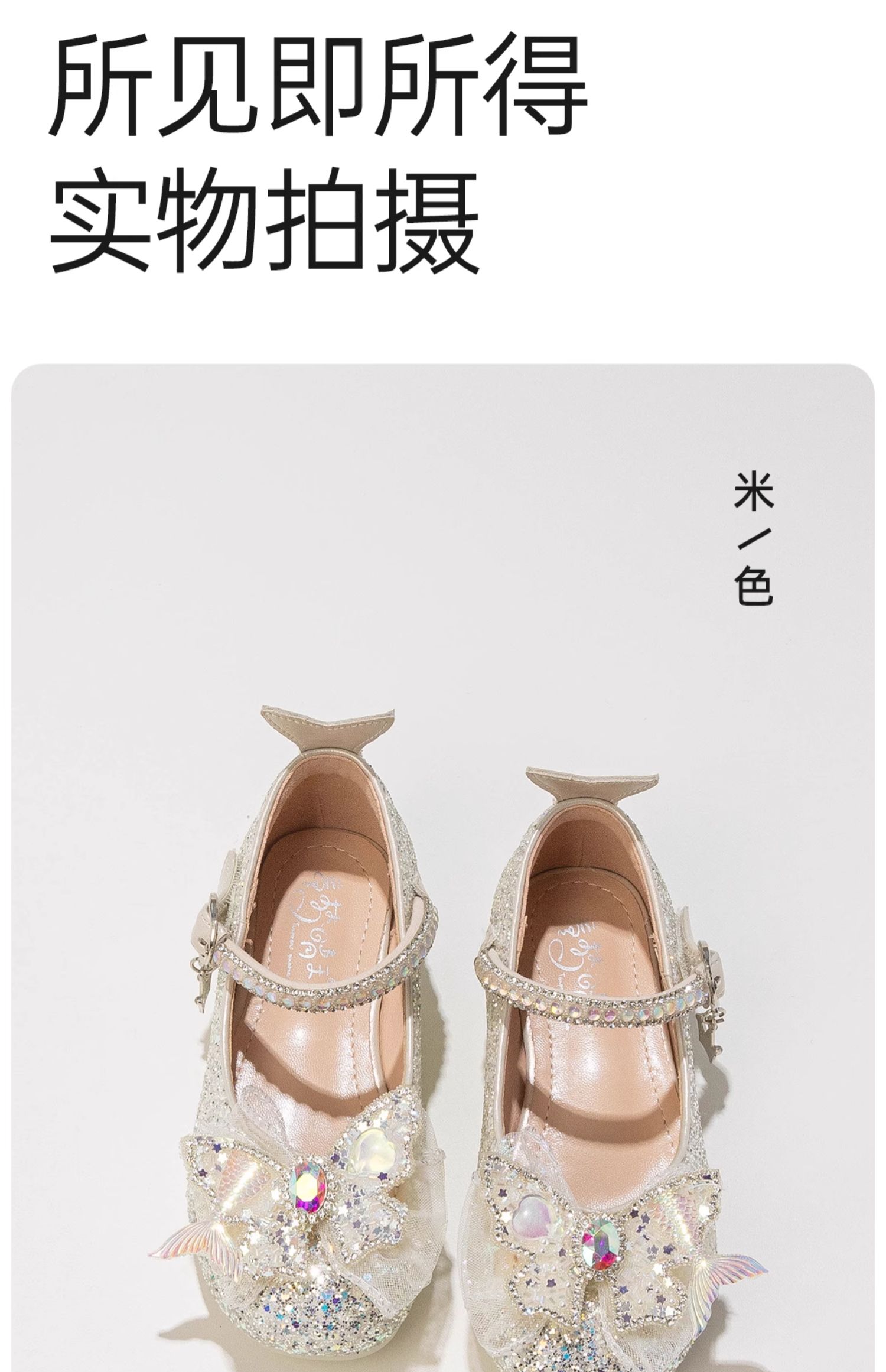 女童公主鞋2025新款春秋软底真皮水晶鞋儿童高跟鞋配礼服女孩单鞋