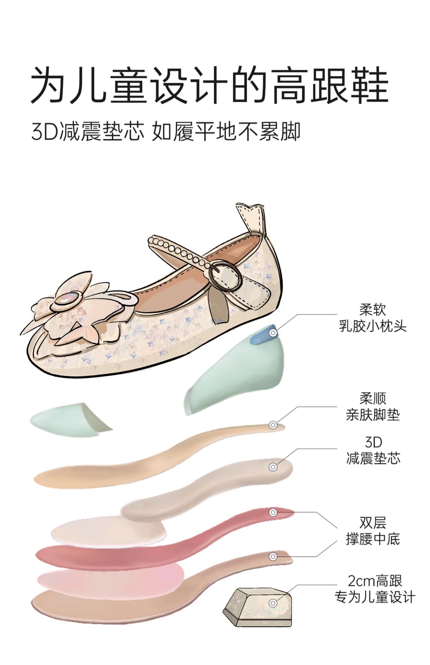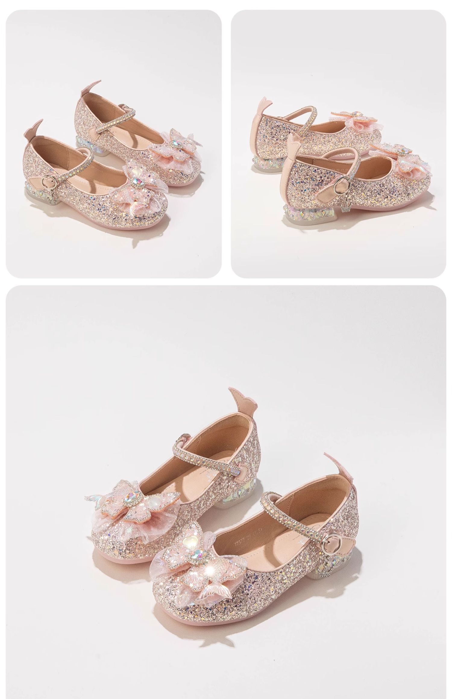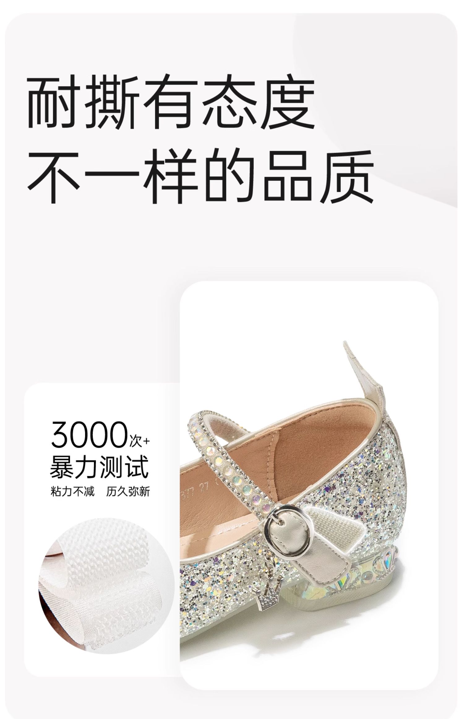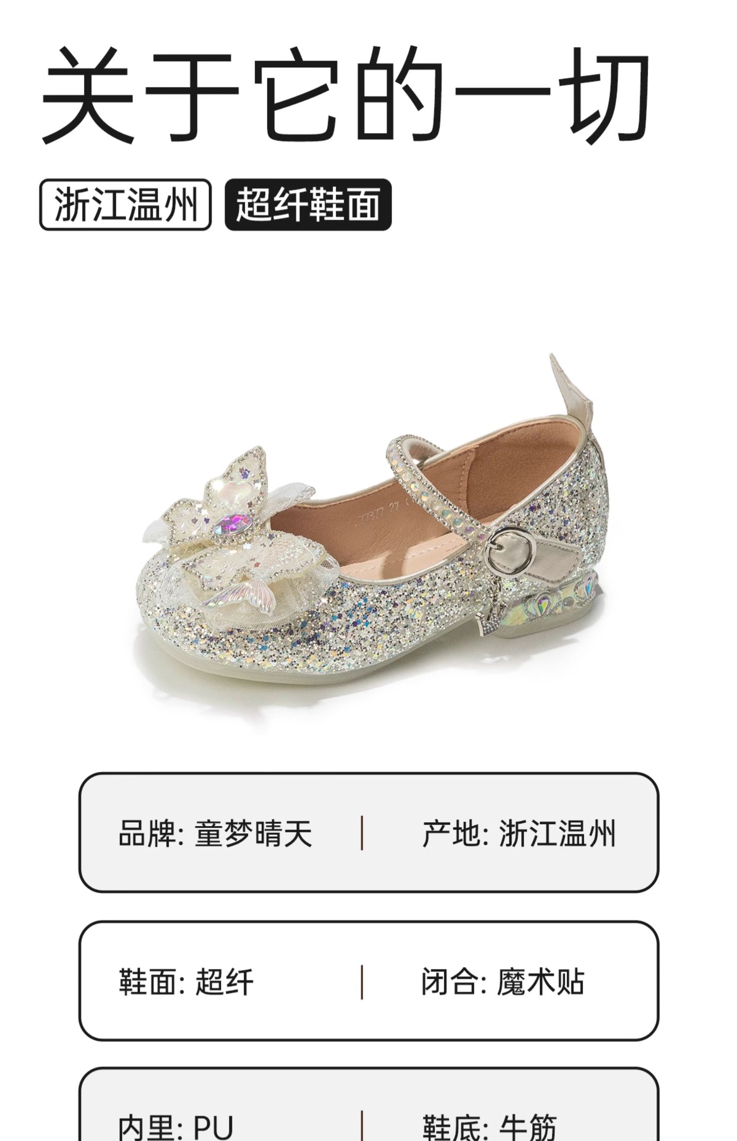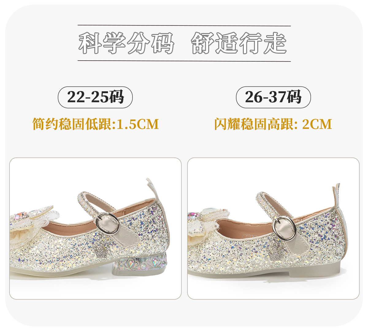 女童公主鞋2025新款春秋软底真皮水晶鞋儿童高跟鞋配礼服女孩单鞋