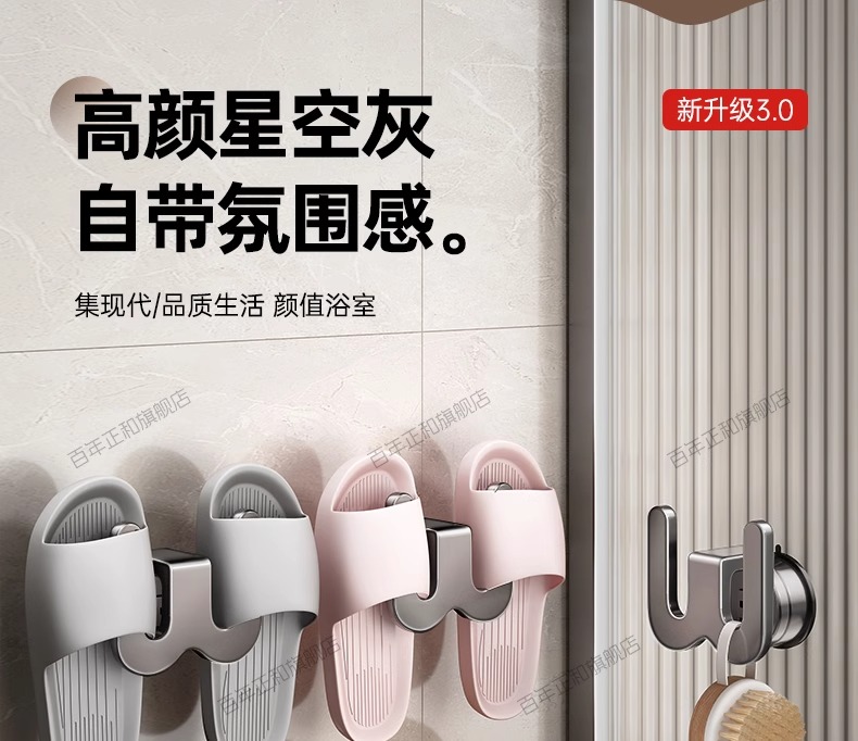 吸盘浴室拖鞋架免打孔卫生间壁挂架子厕所置物架门后沥水各种神器