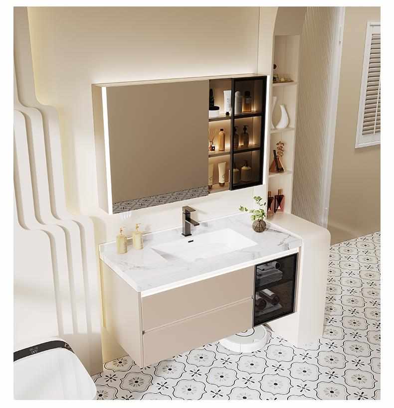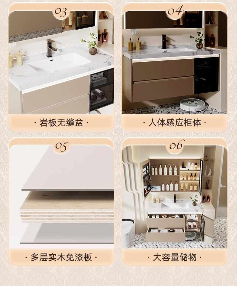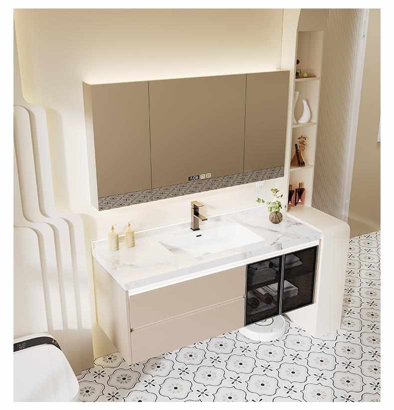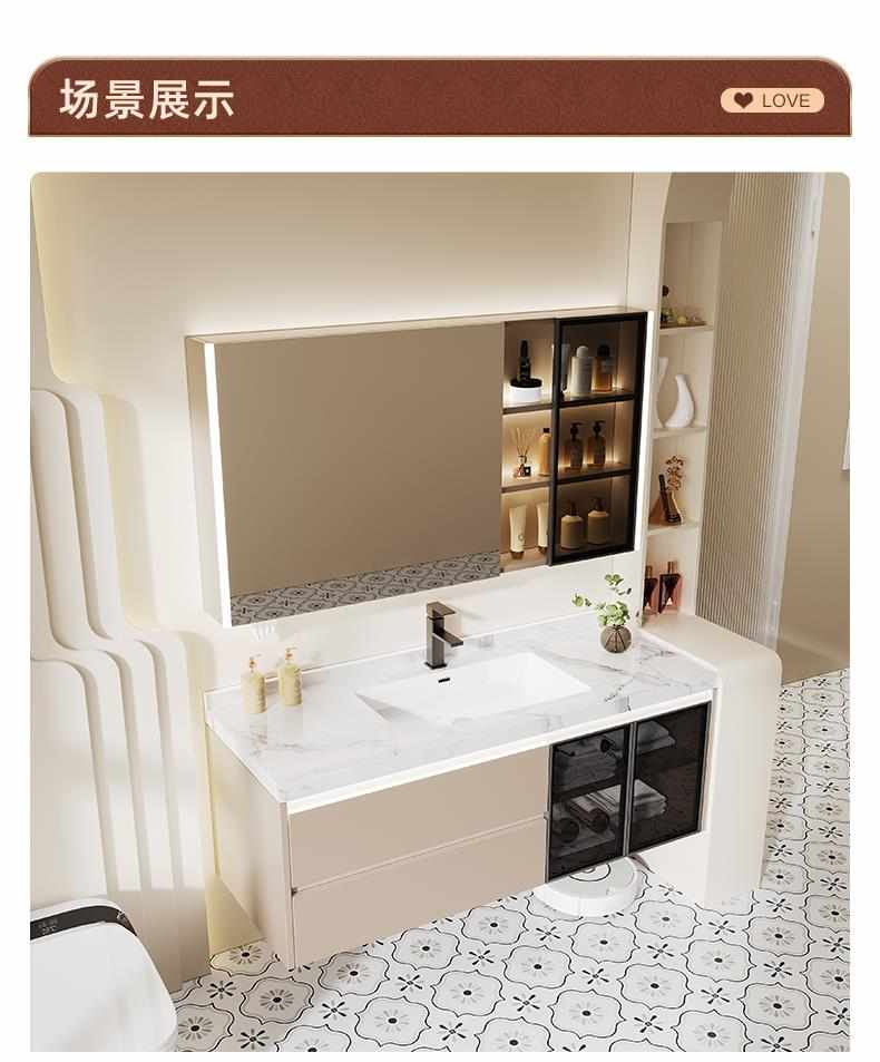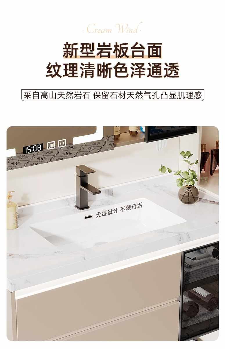 法式浴室柜岩板陶瓷无缝一体盆洗手台t卫生间洗脸手盆柜组合洗漱