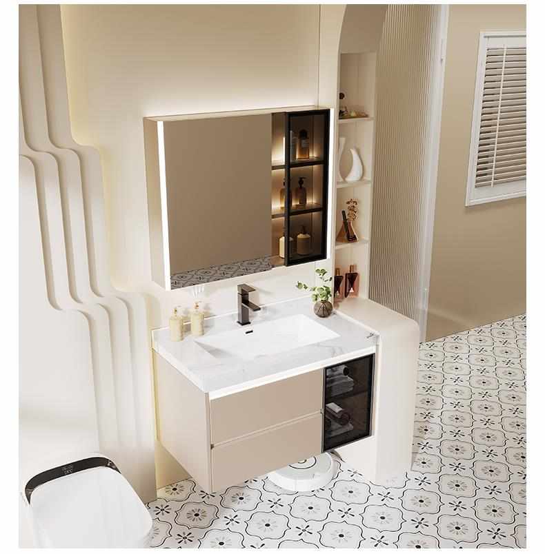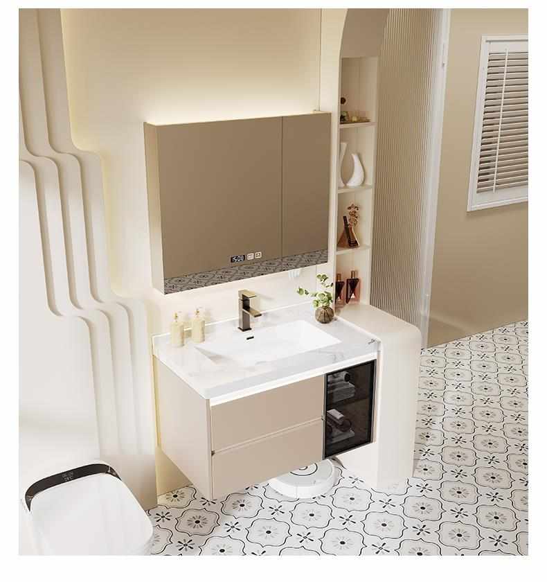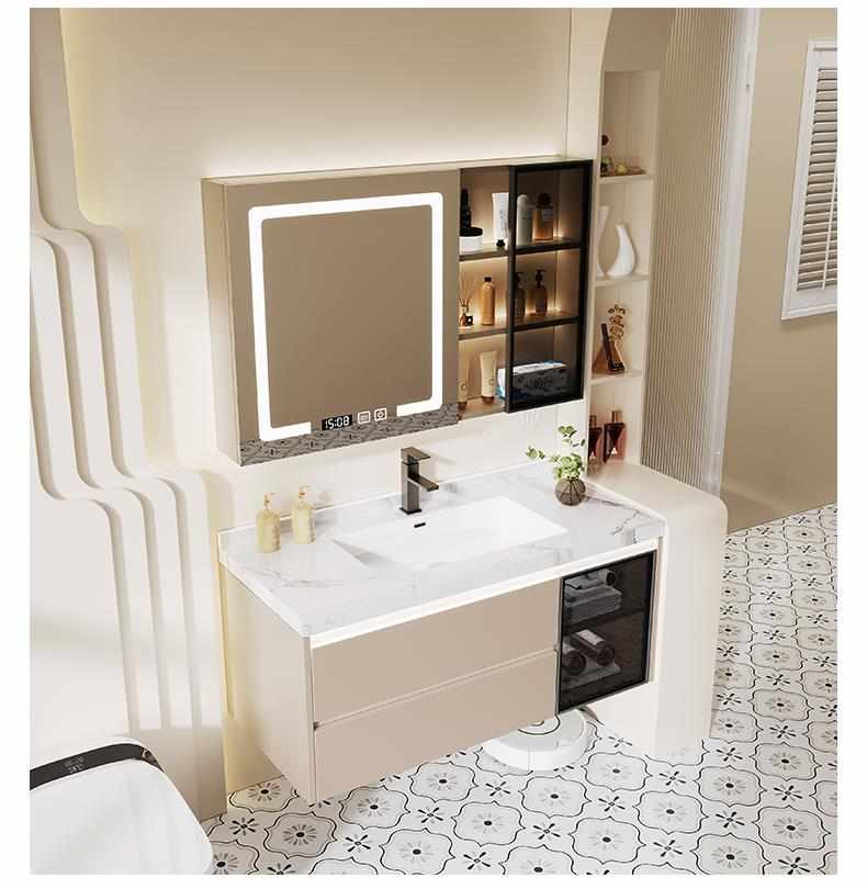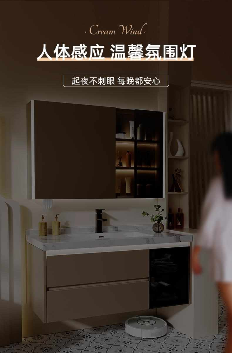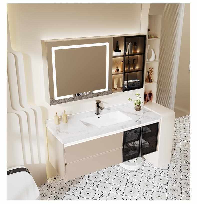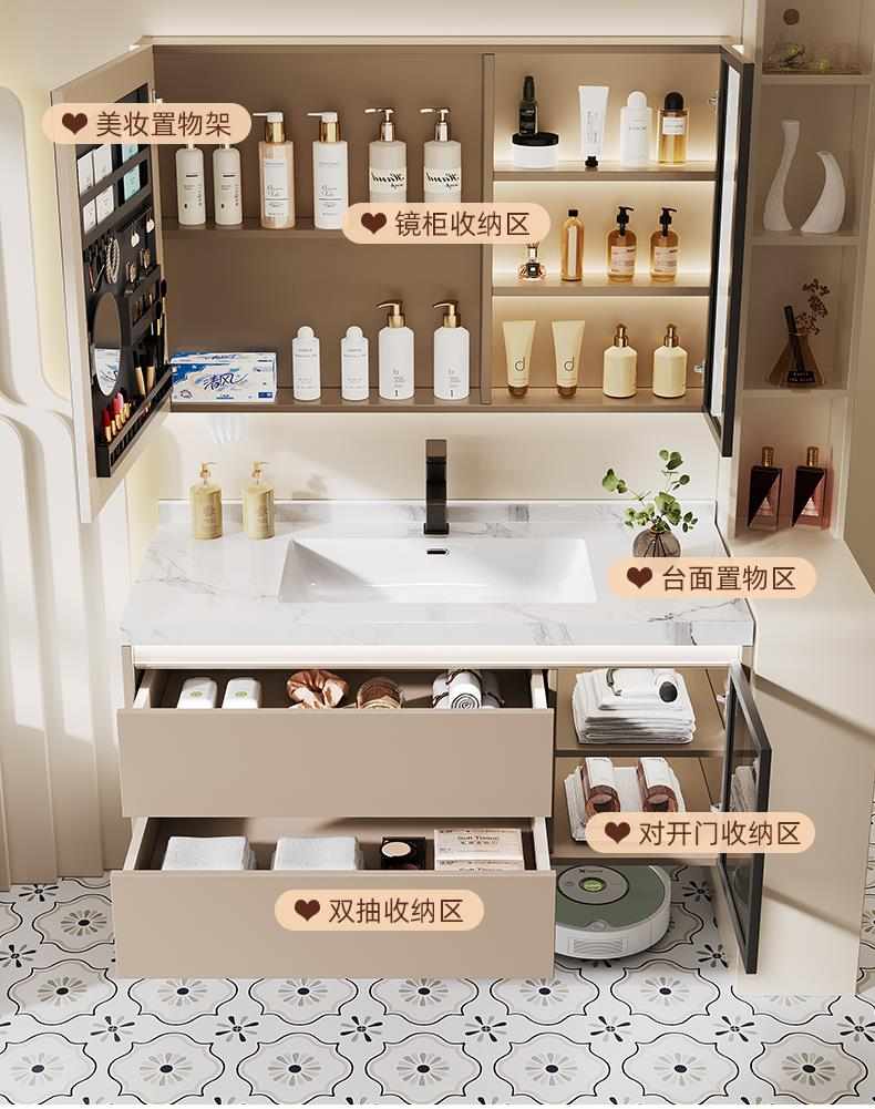 法式浴室柜岩板陶瓷无缝一体盆洗手台t卫生间洗脸手盆柜组合洗漱