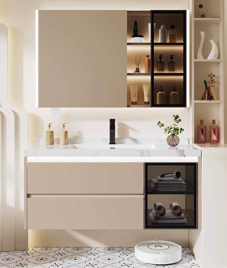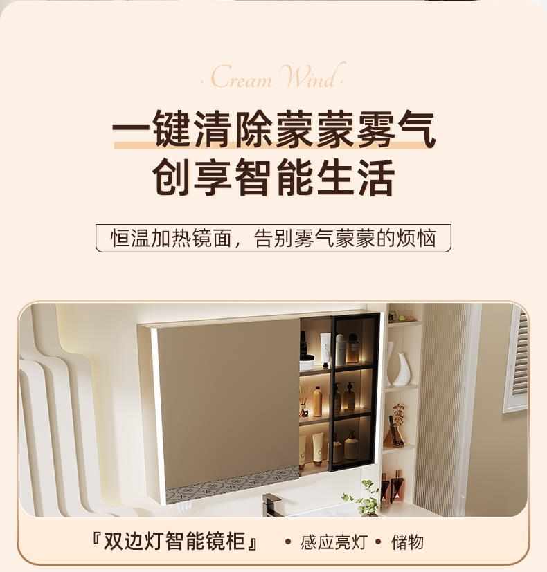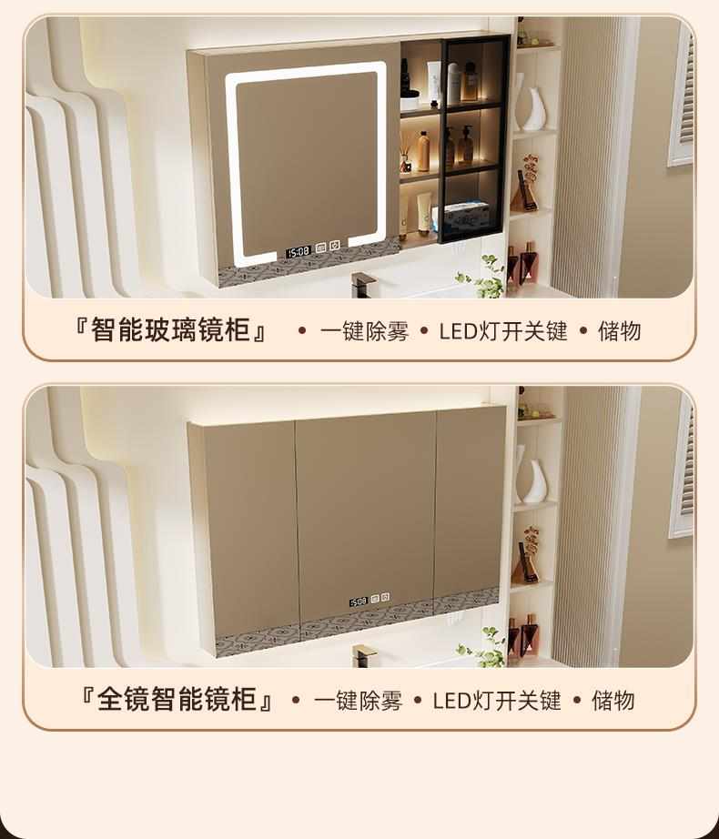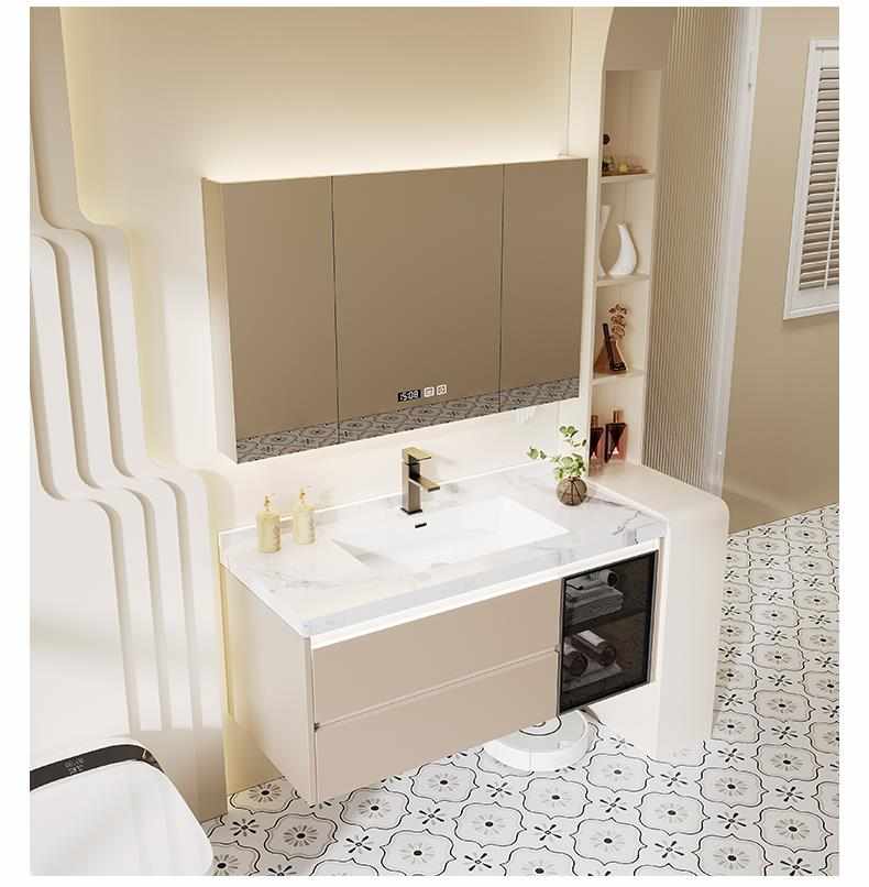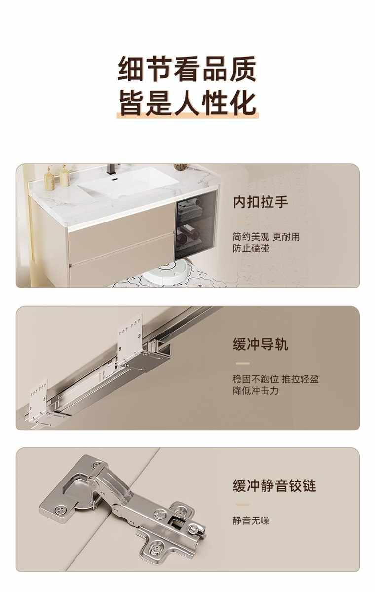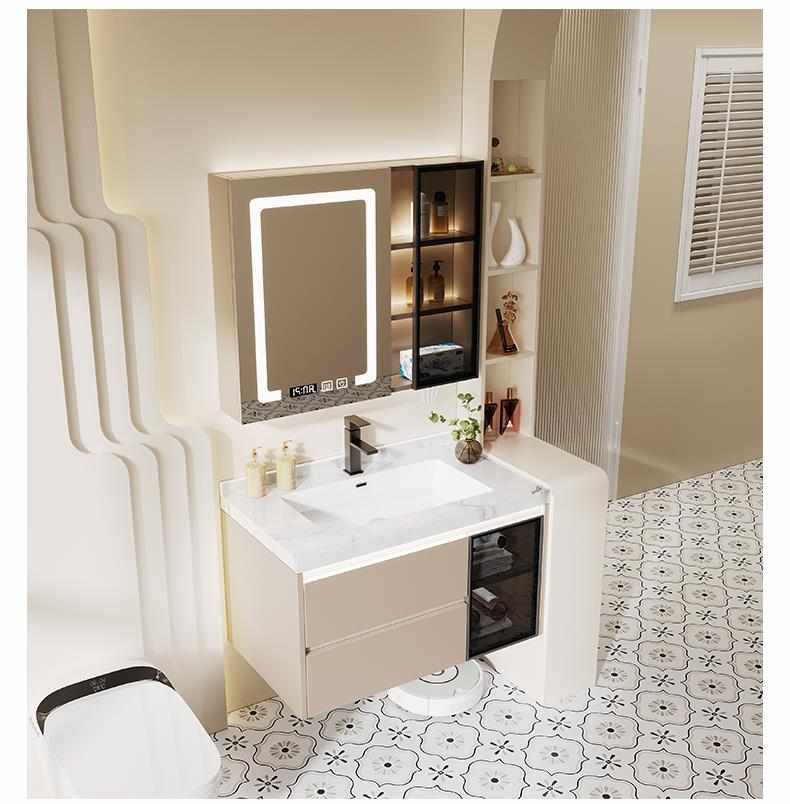 法式浴室柜岩板陶瓷无缝一体盆洗手台t卫生间洗脸手盆柜组合洗漱