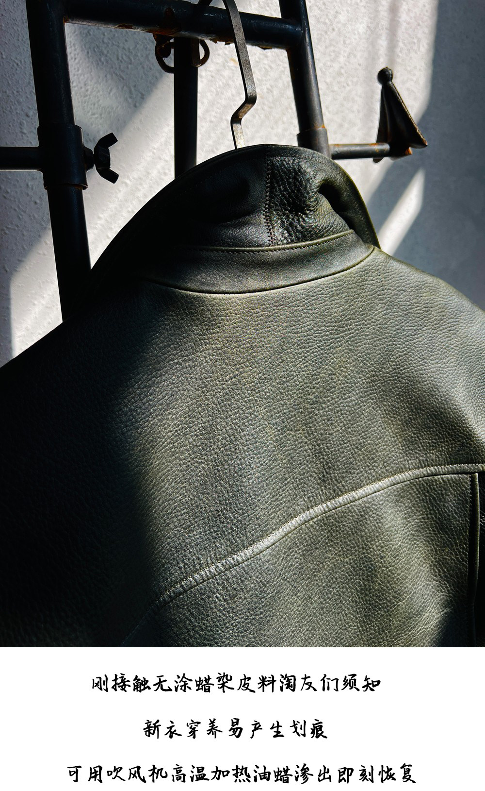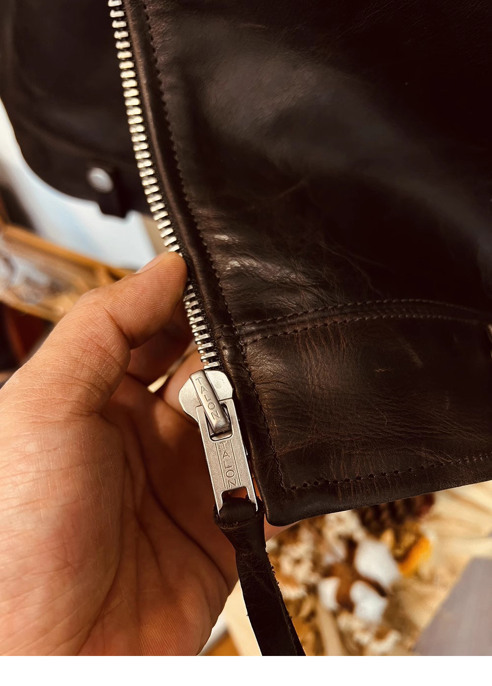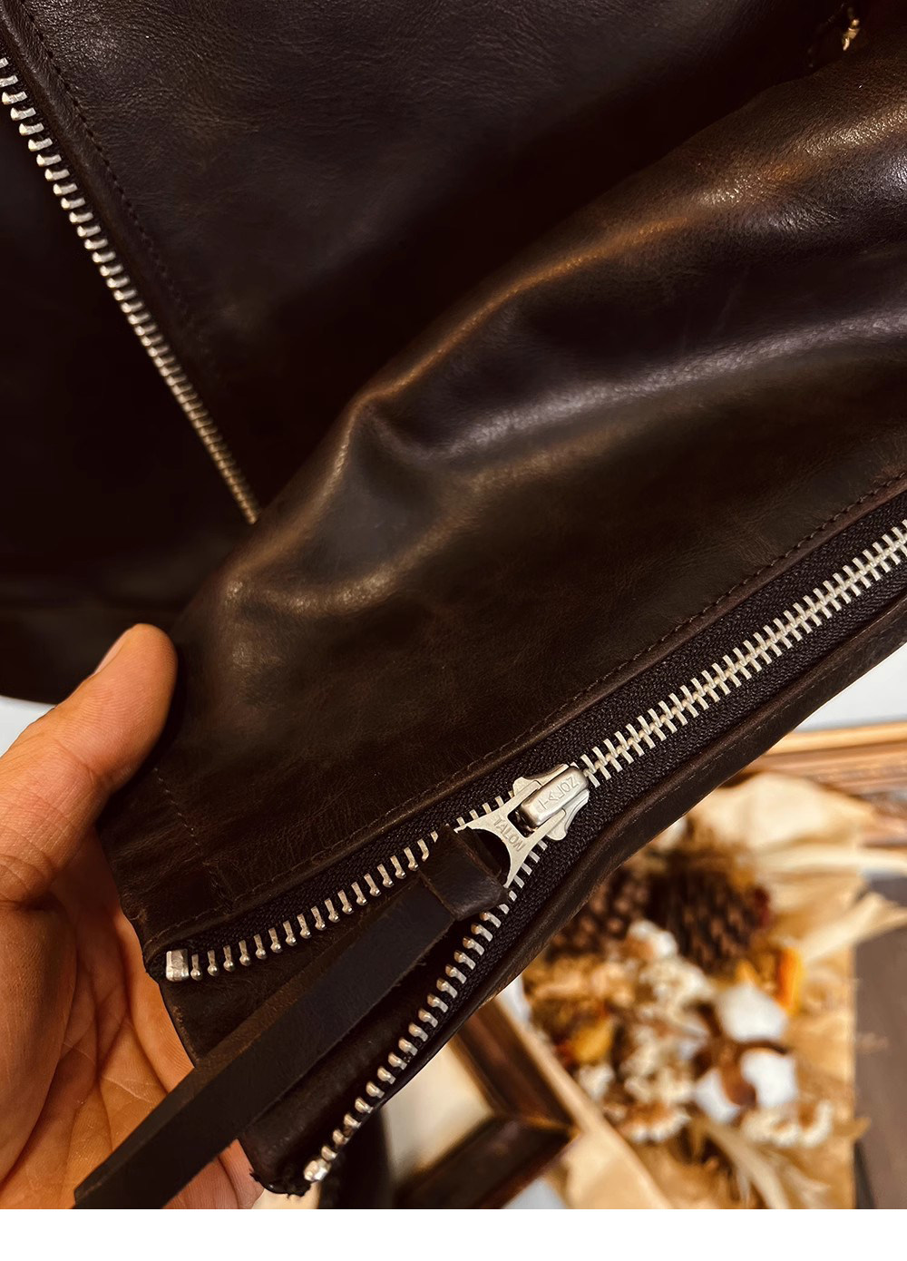 口碑之王!头层牛皮翻领斜拉机车夹克修身男士真皮皮衣