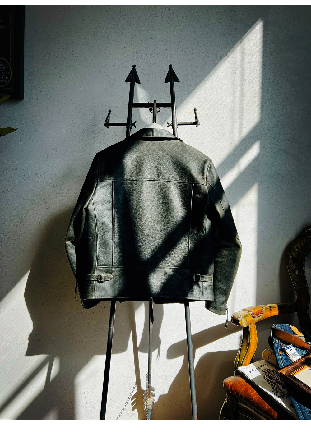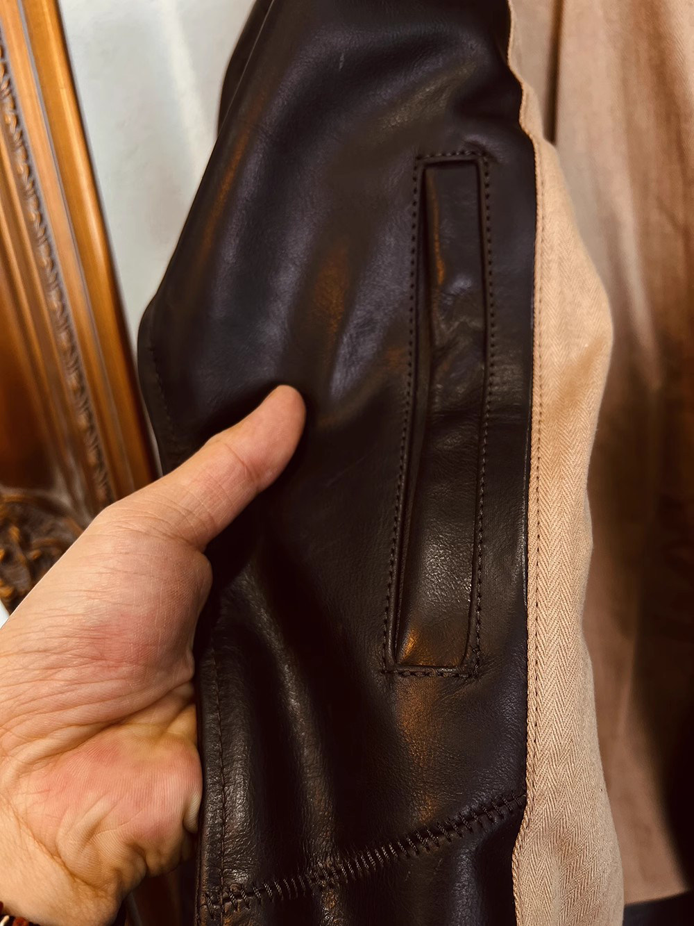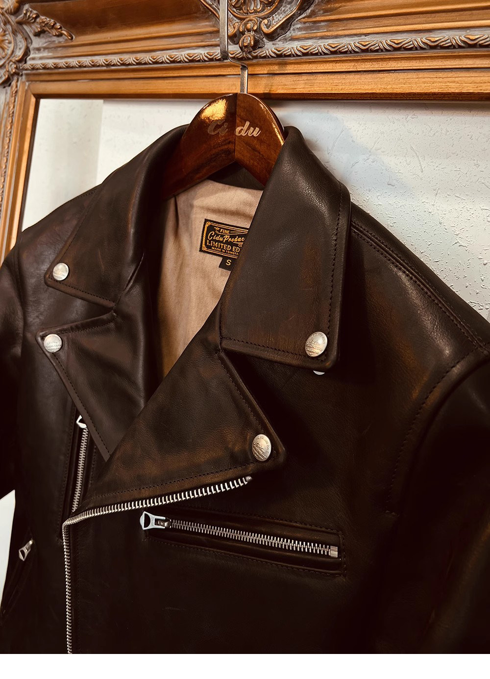 口碑之王!头层牛皮翻领斜拉机车夹克修身男士真皮皮衣