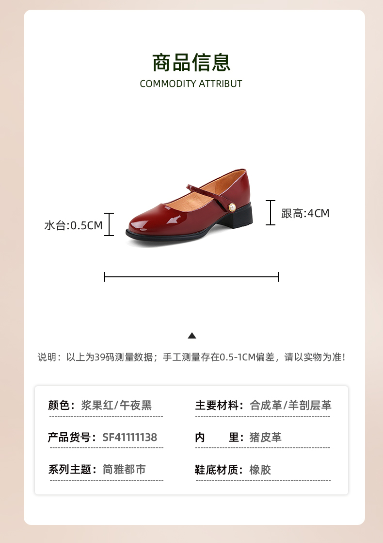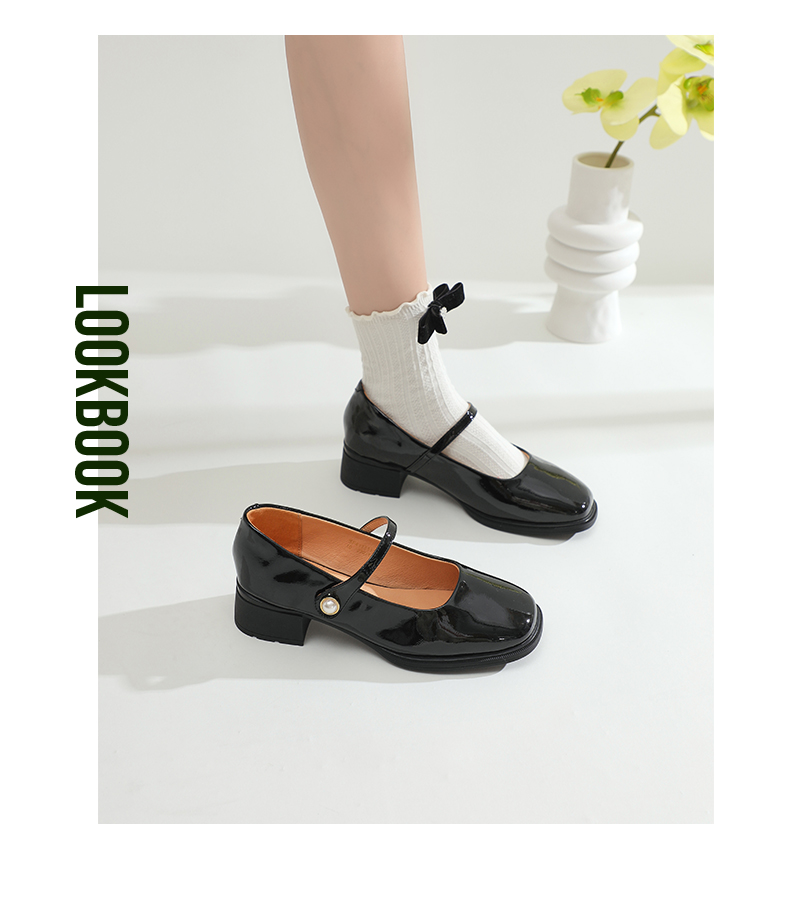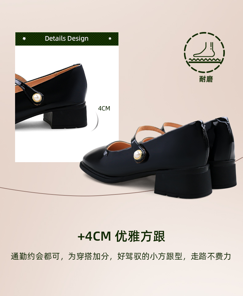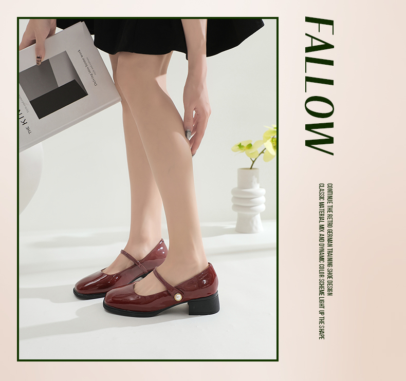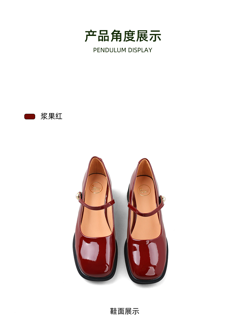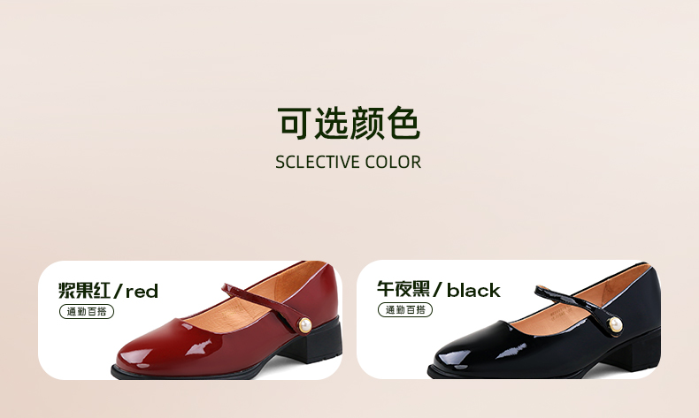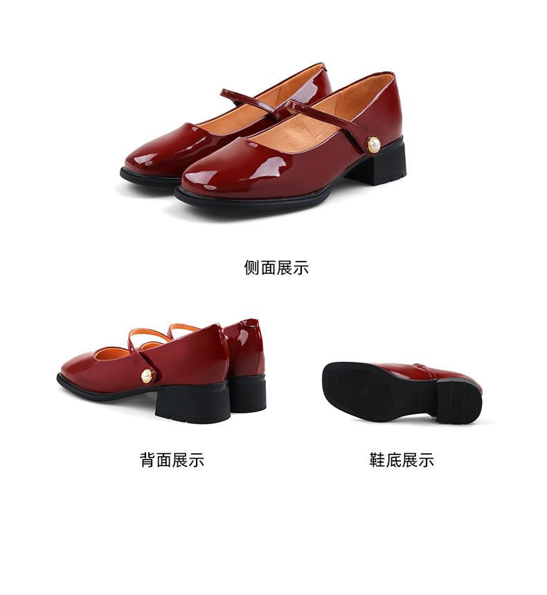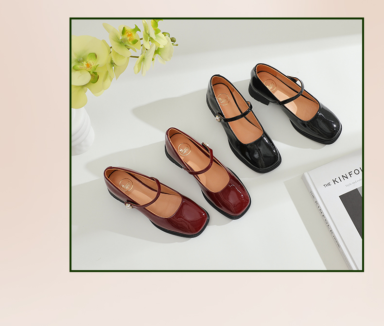 Safiya/索菲娅2024晚晚风复古一字带方头玛丽珍鞋粗跟浅口单鞋女
