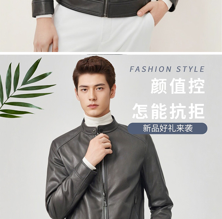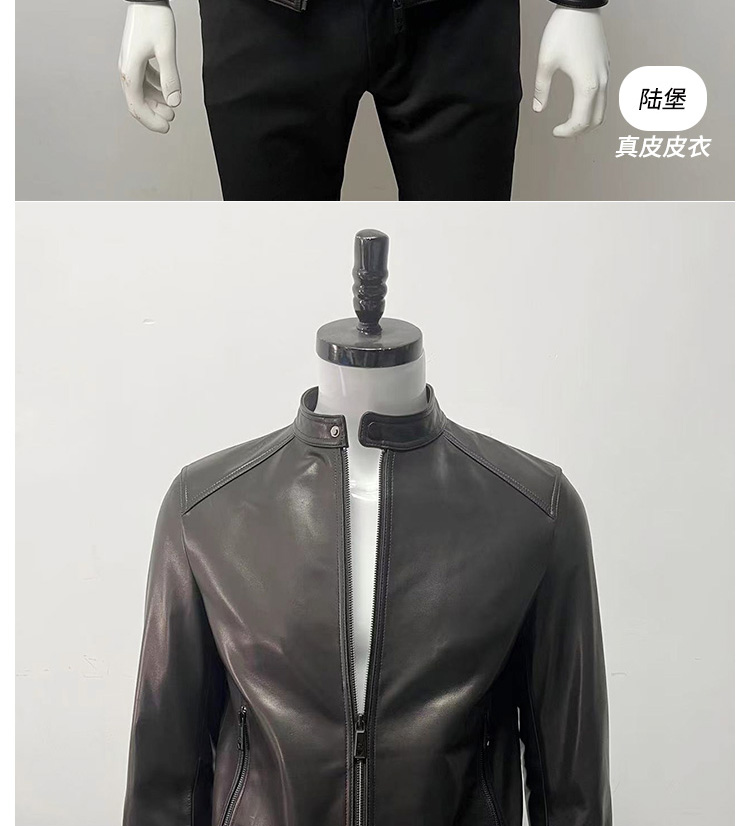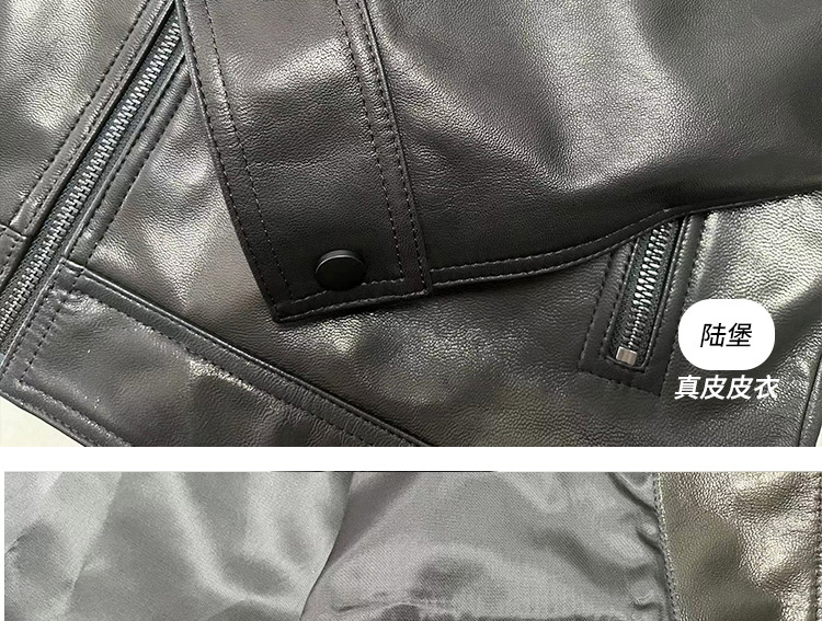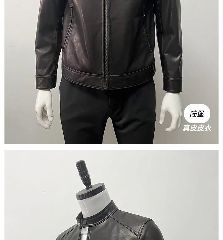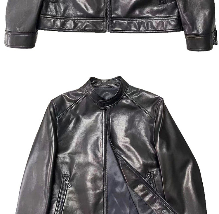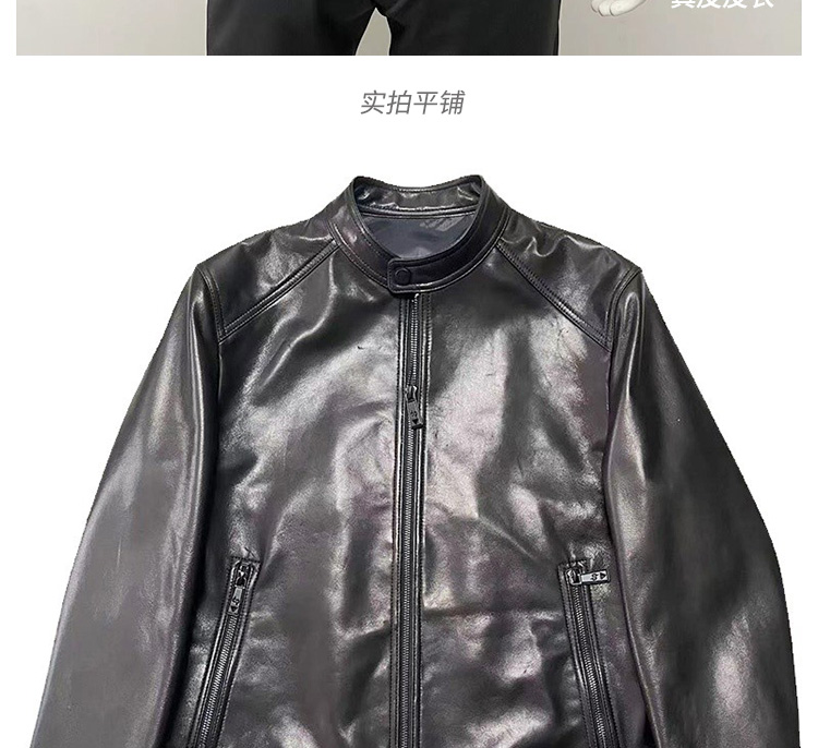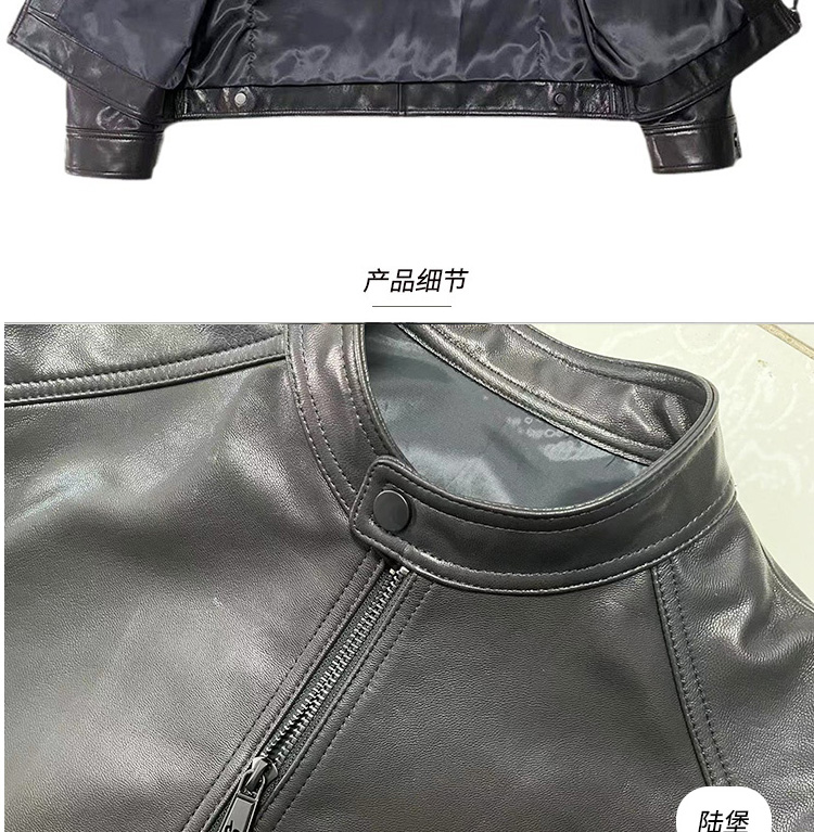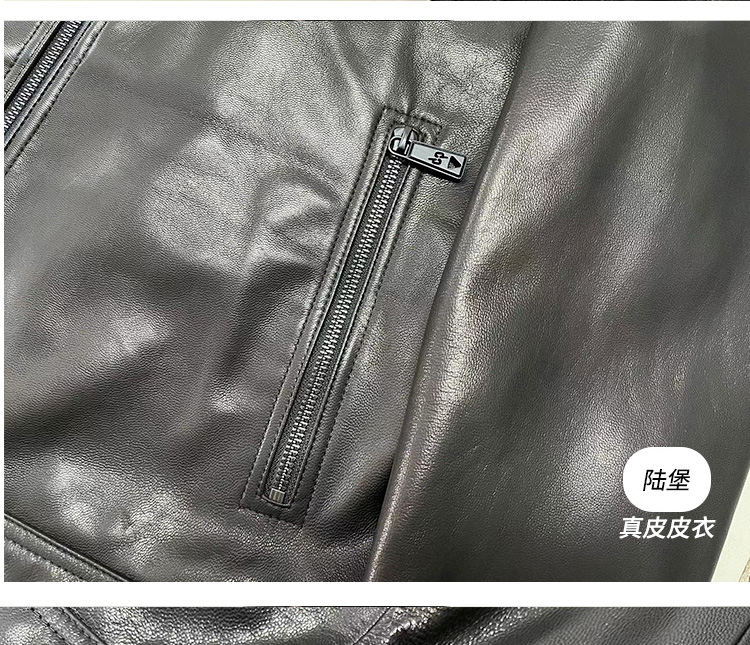 2024新品高端山羊皮真皮皮衣男时尚帅气机车短款立领皮夹克外套男