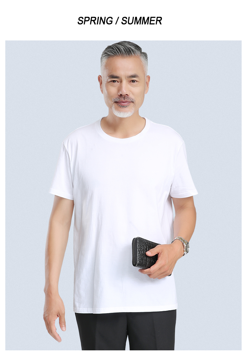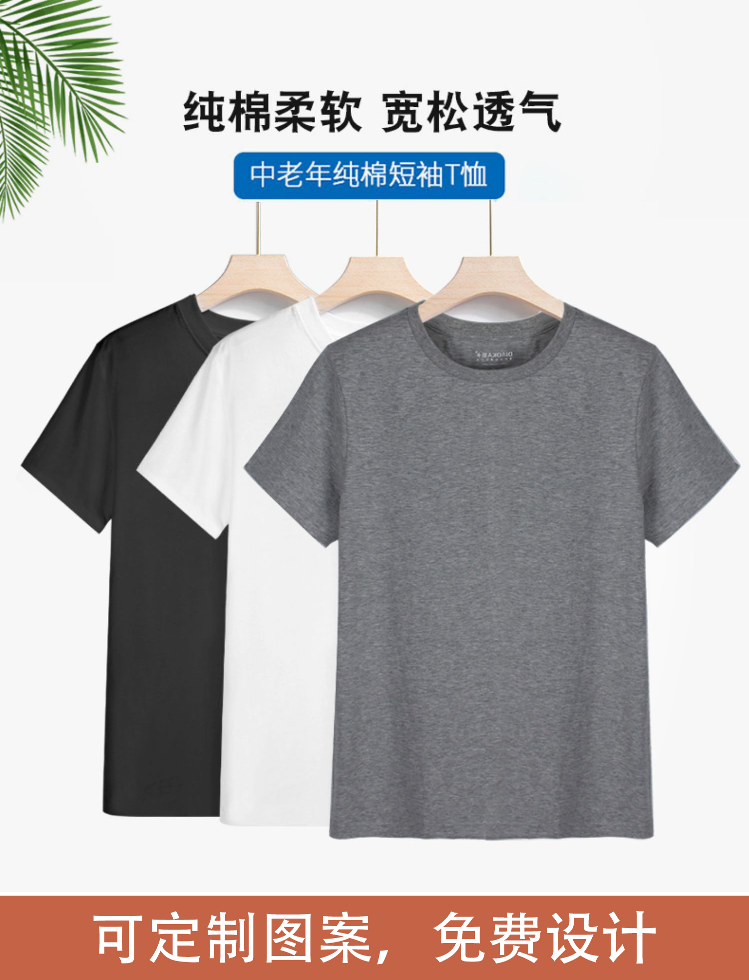 夏季全棉爸爸短袖t恤男士上衣薄款宽松中老年人打底衫纯棉老头衫