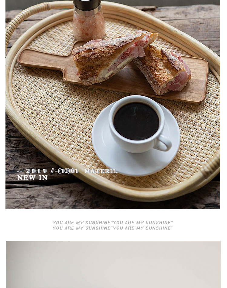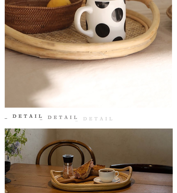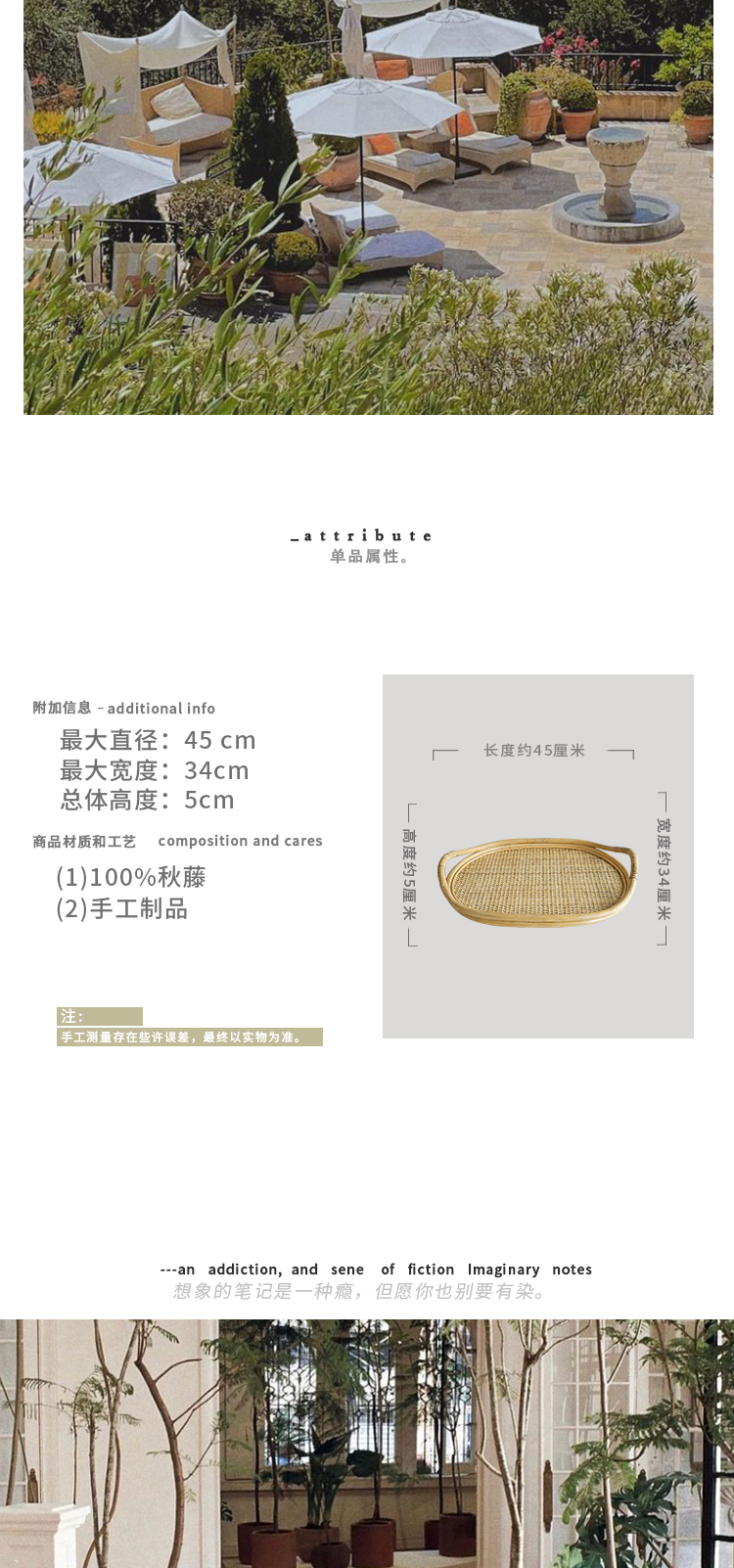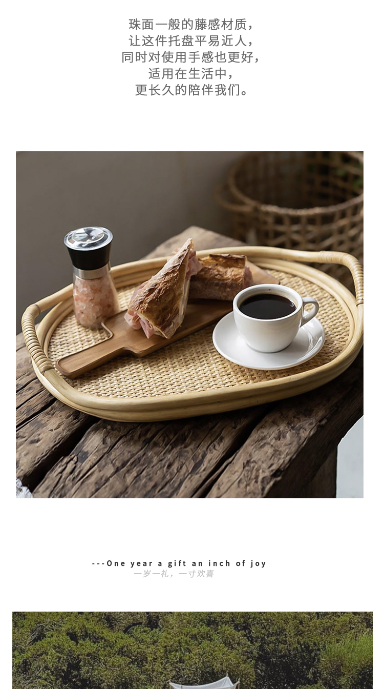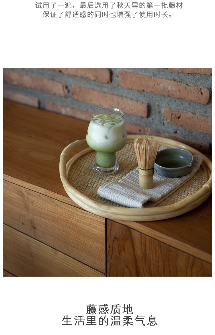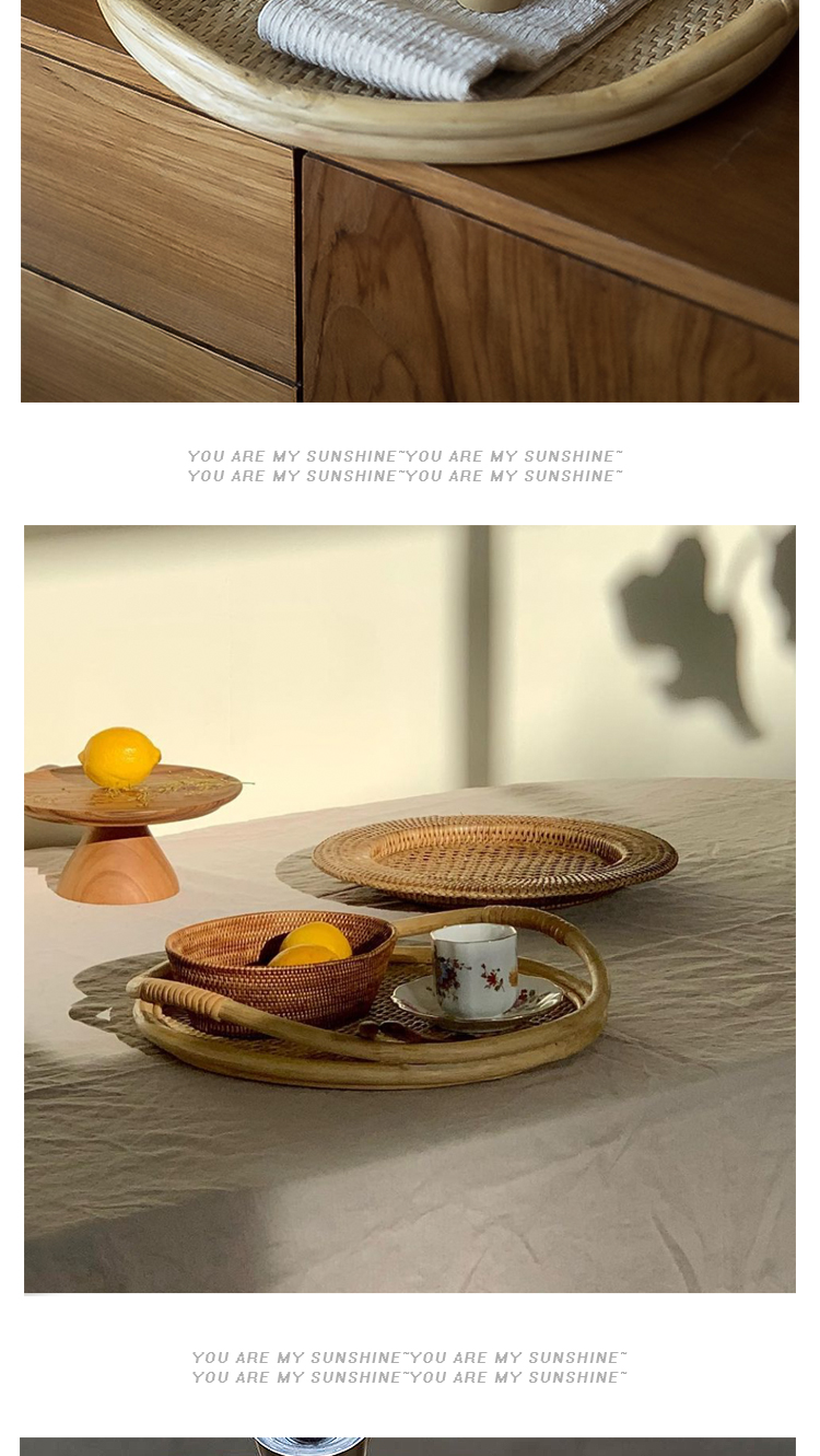 久伴日式藤编竹编托盘水果盘茶盘餐盘客厅餐厅民宿家用复古高级圆